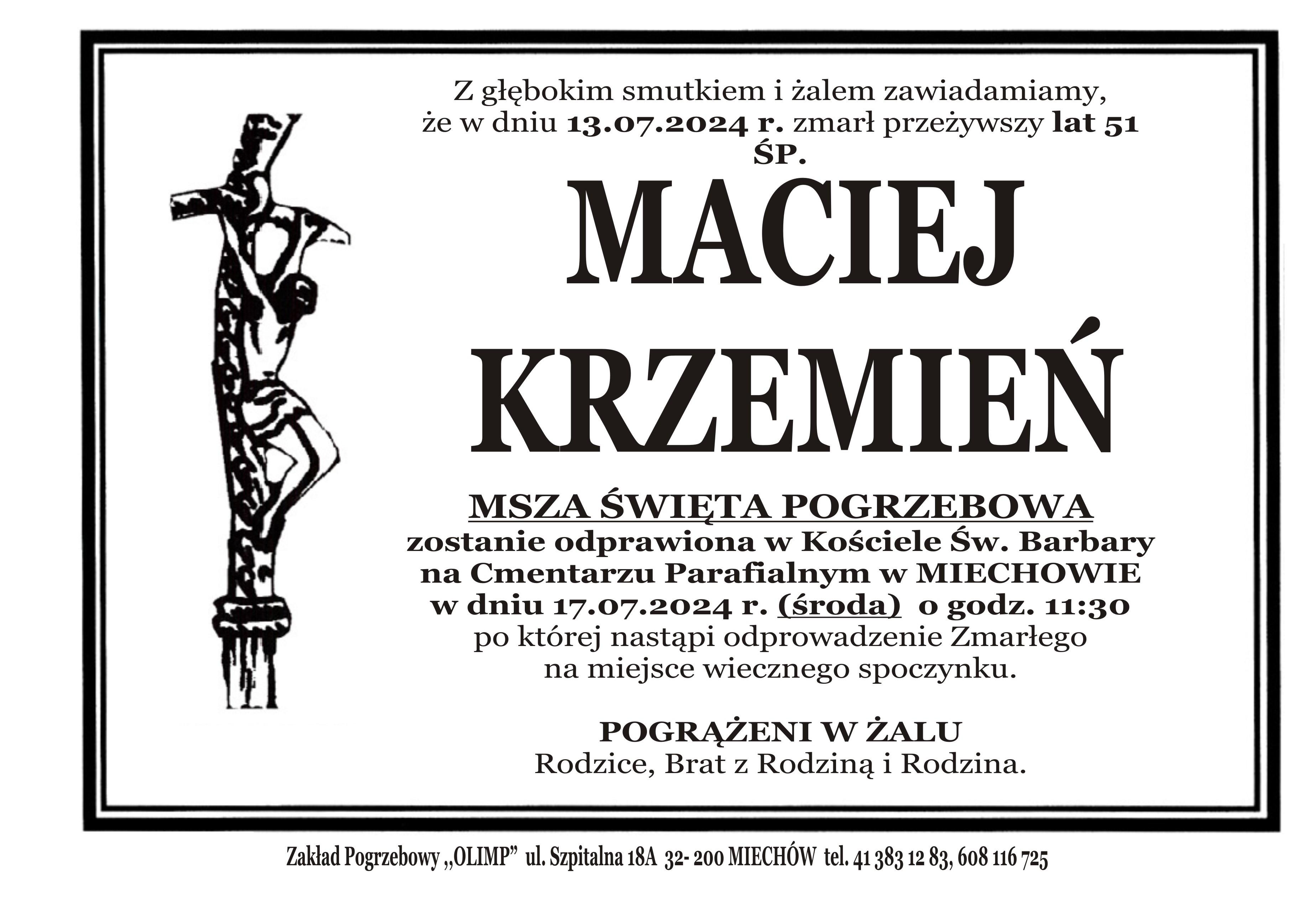 Informacja o śmierci śp. asp. sztab. w st. spocz. Macieja Krzemienia