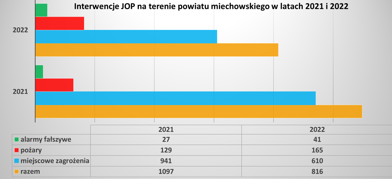 Interwencje jednostek ochrony przeciwpożarowej na terenie powiatu miechowskiego w latach 2021 i 2022
