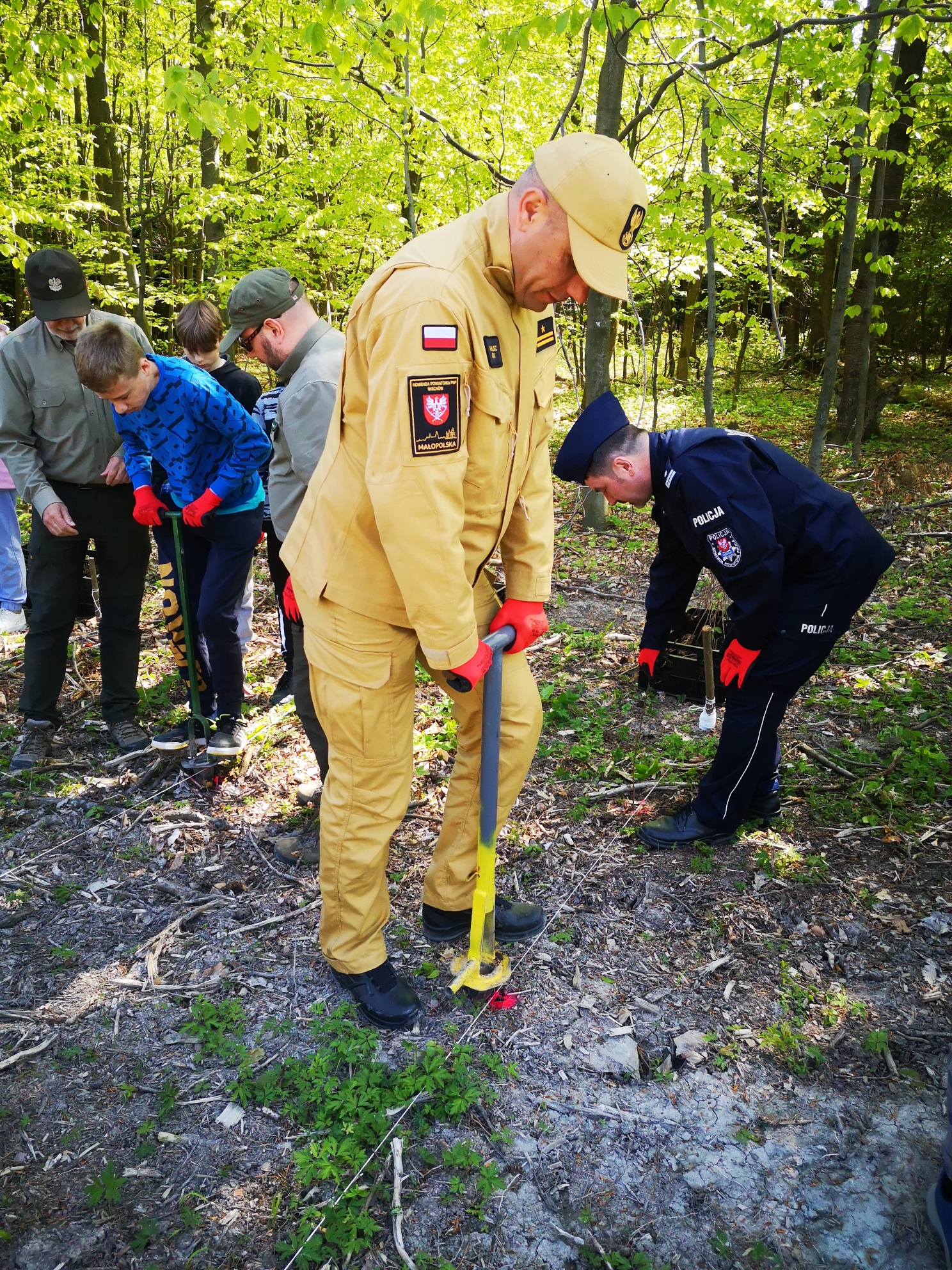 W tym podniosłym wydarzeniu oprócz przedstawicieli Nadleśnictwa Miechów udział wzięli funkcjonariusze z Komendy Powiatowej PSP w Miechowie z z-cą Komendatna Powiatowego PSP mł. bryg. Mariuszem Idzikiem na czele.
