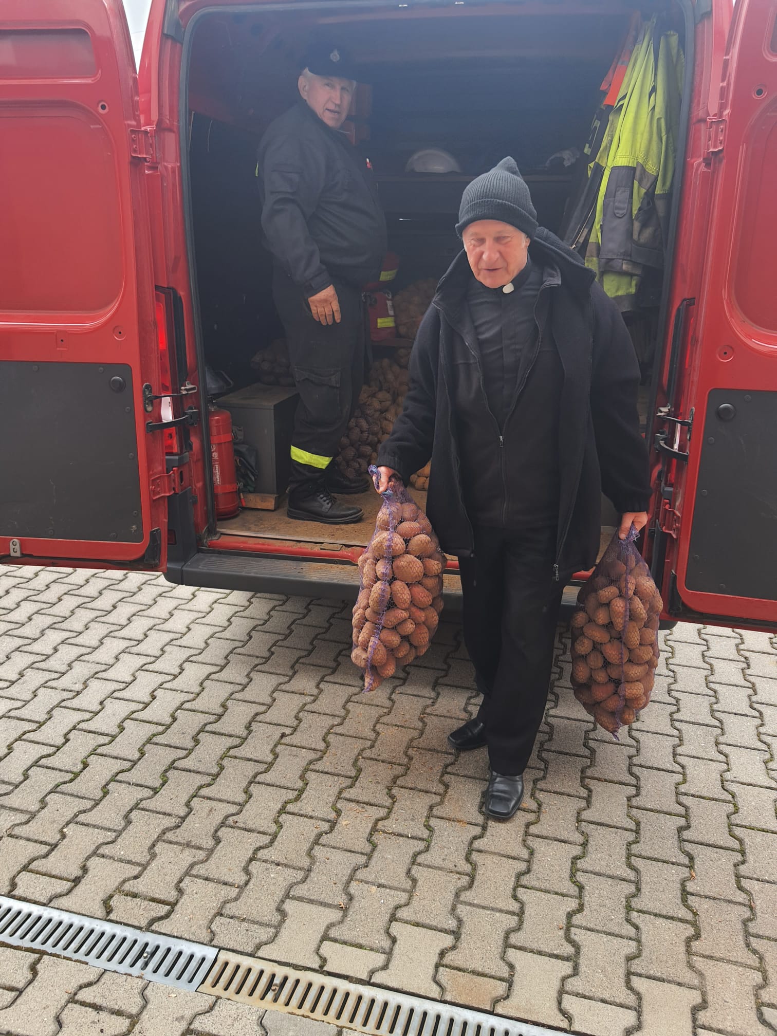 W dniu 9.03.2022 do Centrum św. Maksymiliana w Harmężach trafiły dary dla dzieci walczących ukraińskich strażaków. Specjalna delegacja Komendy Powiatowej PSP w Miechowie oraz Ochotniczych Straży Pożarnych w Miechowie dotarła do klasztoru wraz z 1,5 t świeżej żywności w postaci płodów rolnych tj. ziemniaków, marchwi oraz innych warzyw. Dary została przekazana przez mieszkańców Gminy Miechów oraz Charsznica. Kapelan małopolskich strażaków ks. bryg. Władysław Kulig osobiście odebrał od nas żywność, która trafi do ww. Centrum. To dzięki Państwa wsparciu i hojności możemy pomagać potrzebującym. W imieniu ks. bryg. Władysława Kuliga serdeczne Bóg Zapłać za dobroć.