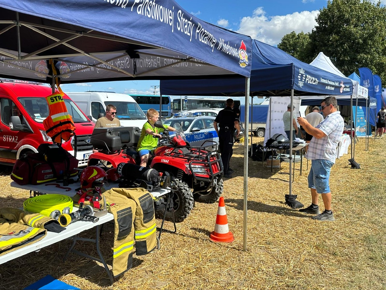 Dużym zainteresowaniem cieszyły się atrakcje przygotowane z myślą o najmłodszych uczestnikach – dzieci mogły z bliska obejrzeć wóz strażacki oraz pojazd typu Quad.