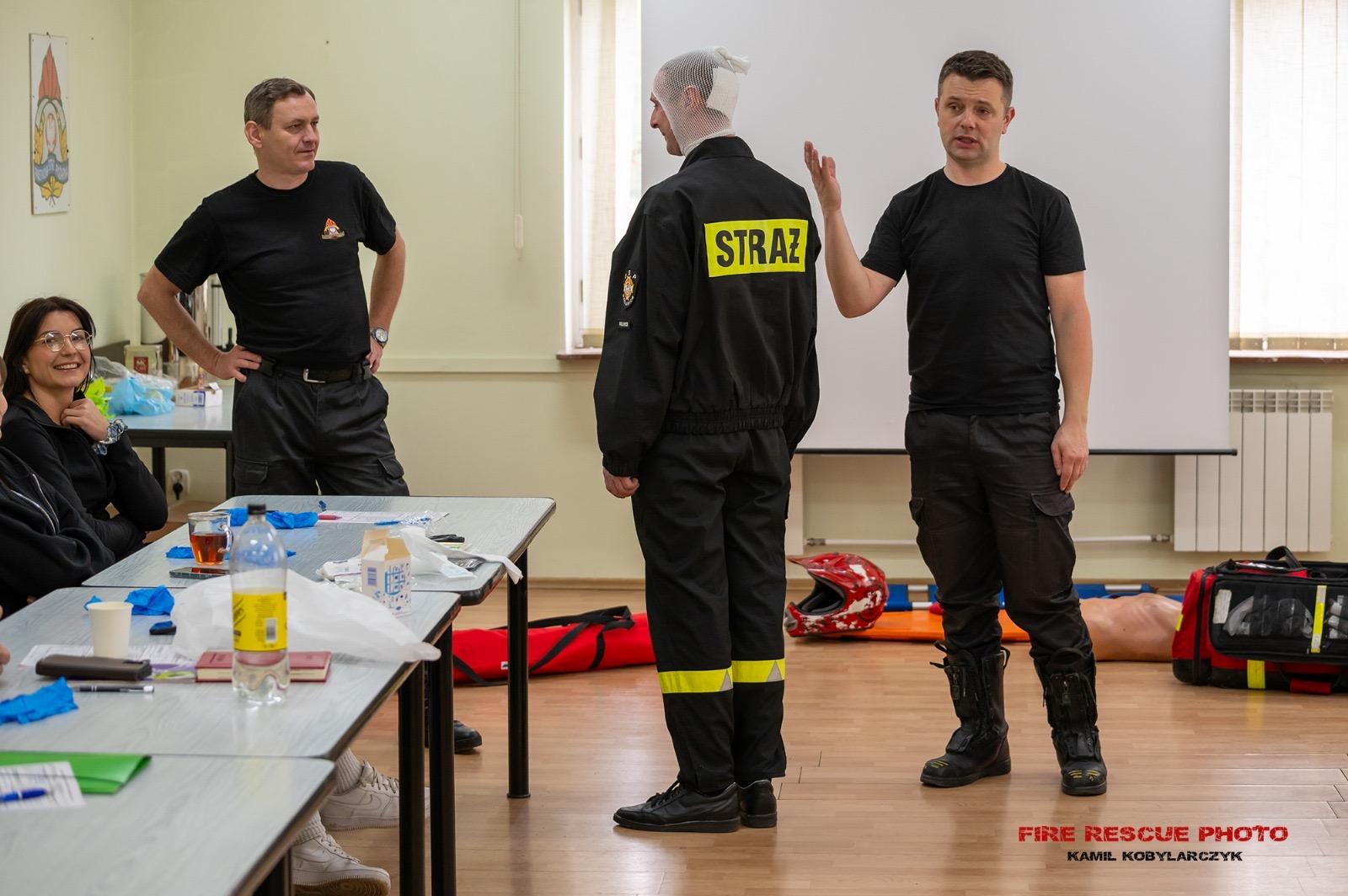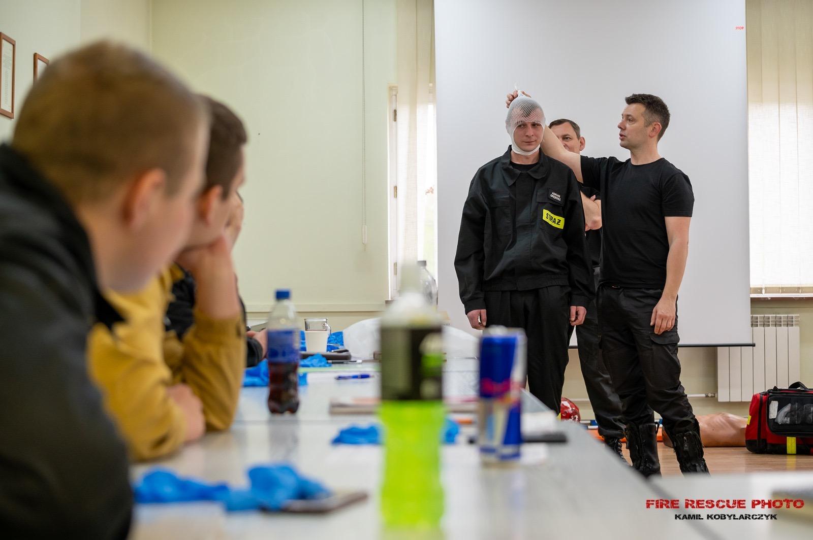 - W ramach szkolenia doskonaliliśmy m.in. zasady resuscytacji i defibrylacji. Tematyka zajęć obejmowała także urazy chemiczne, termiczne, elektryczne i mechaniczne oraz różnego typu obrażenia, począwszy od złamań krwotoków, poprzez obrażenia klatki piersiowej, brzucha, kręgosłupa oraz na zagrożeniach środowiskowych kończąc. Ćwiczyliśmy ewakuację ze strefy zagrożenia i psychologiczne aspekty wsparcia poszkodowanych. W sumie szkolenie obejmowało 66 godzin – wymienia kierownik kursu mł. kpt. Wojciech Włodarski.