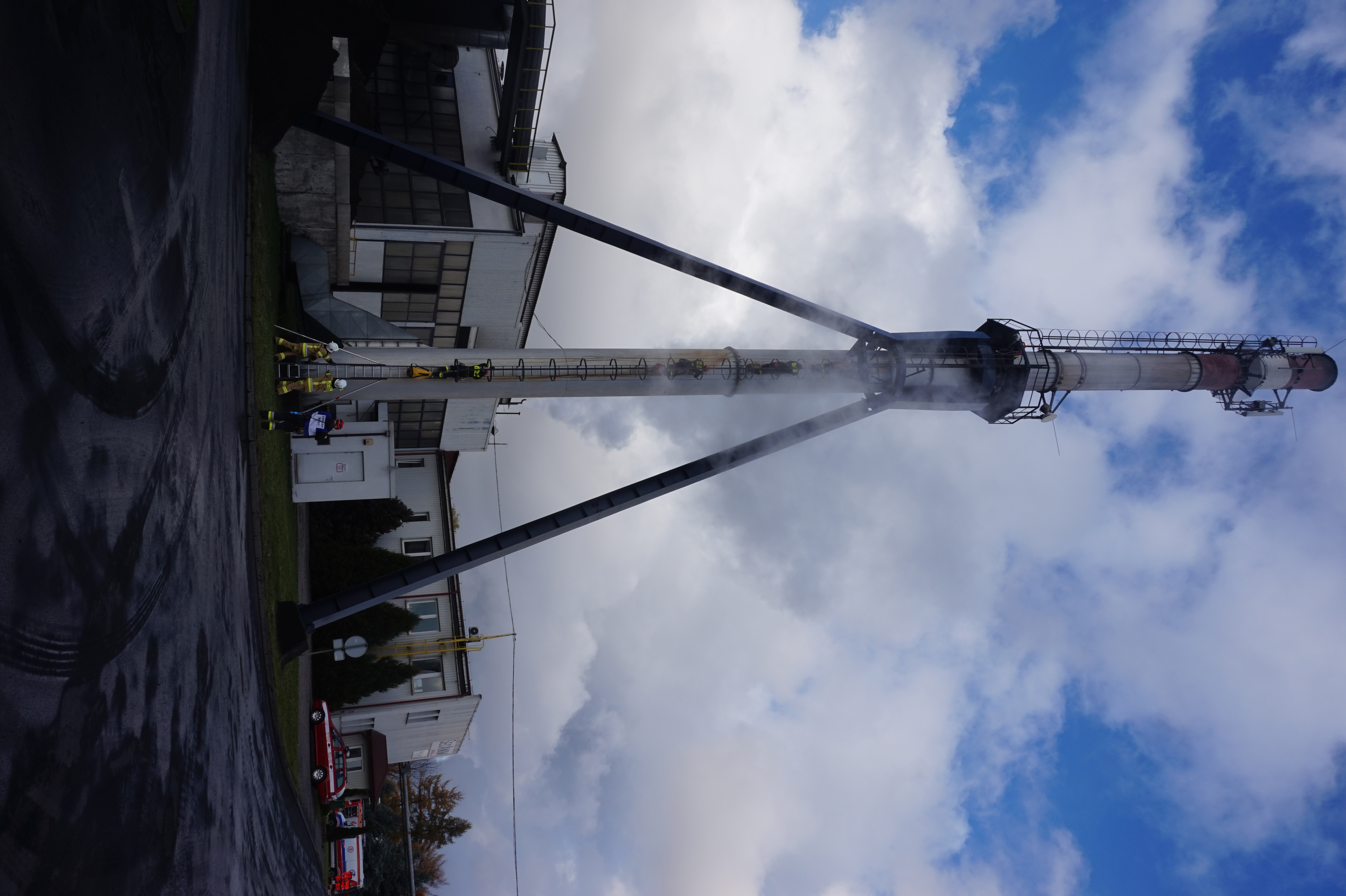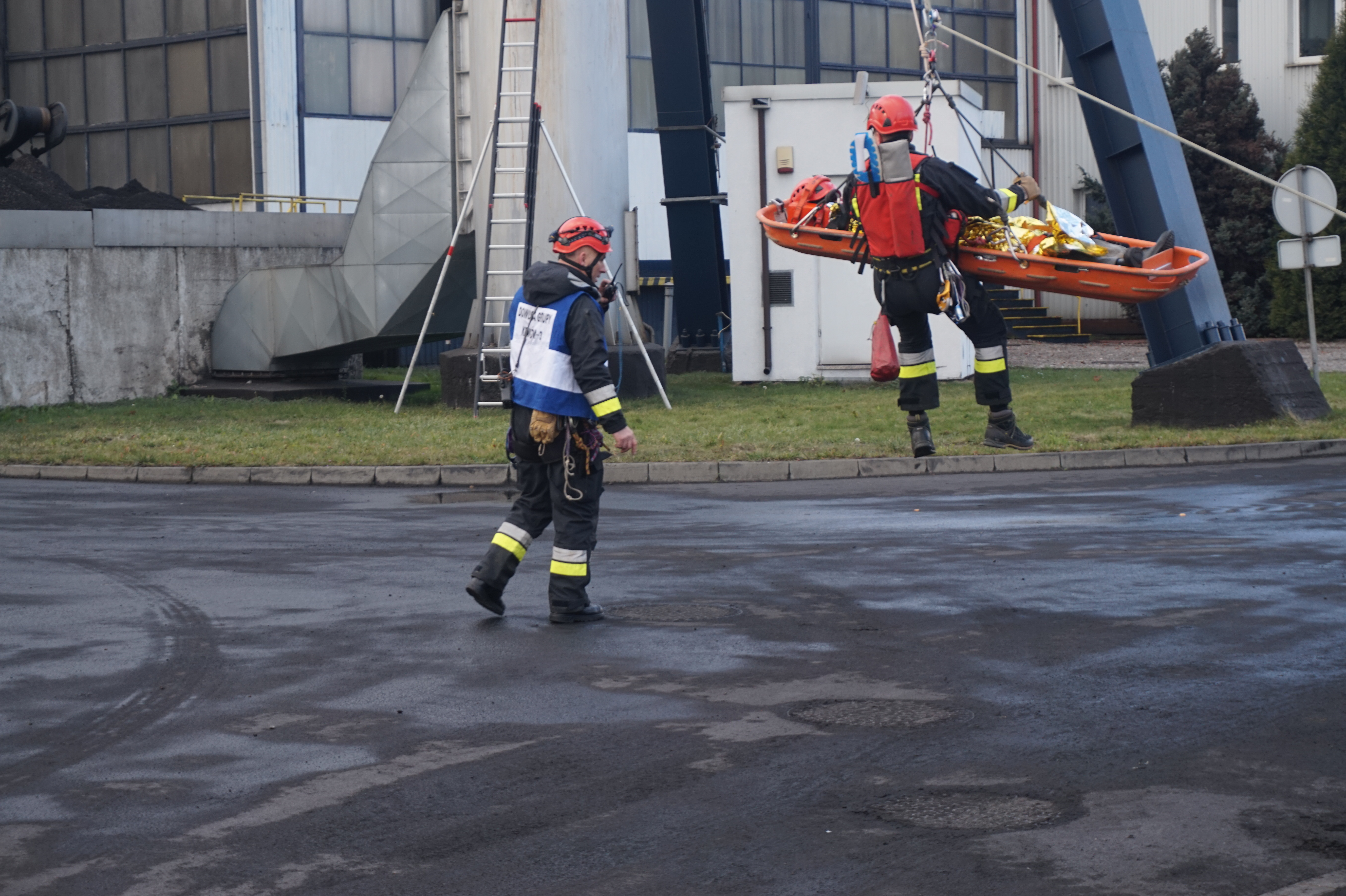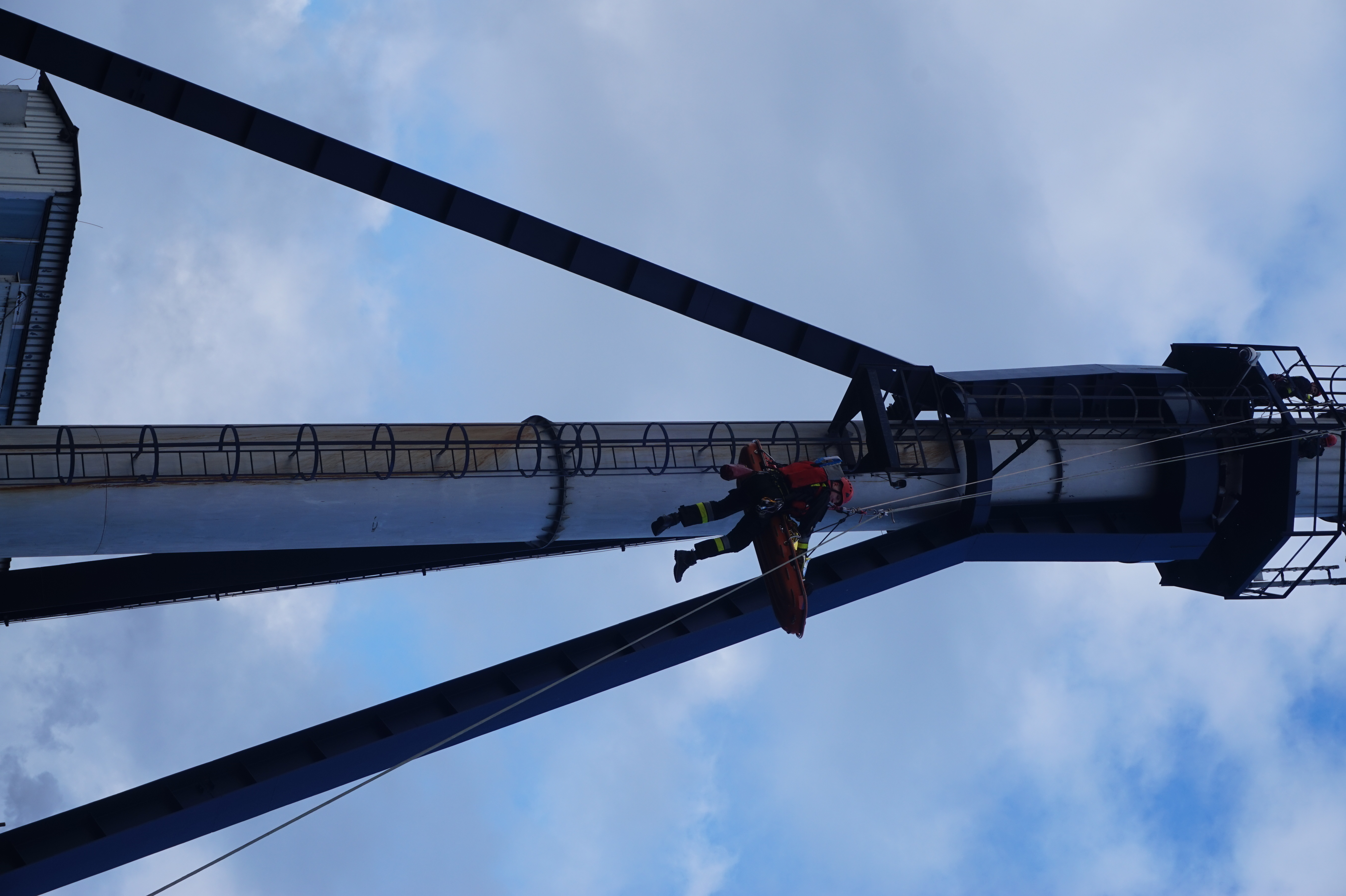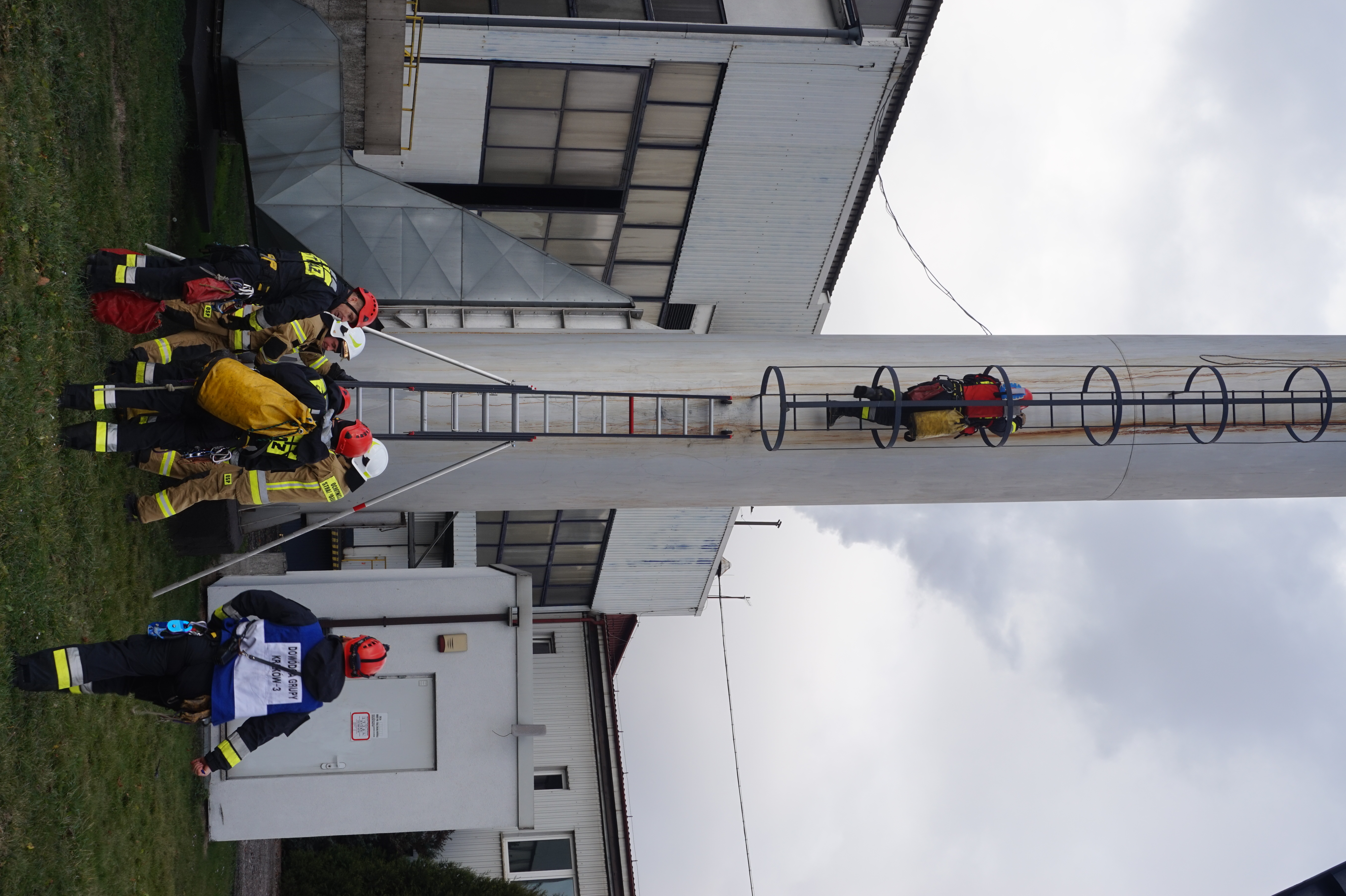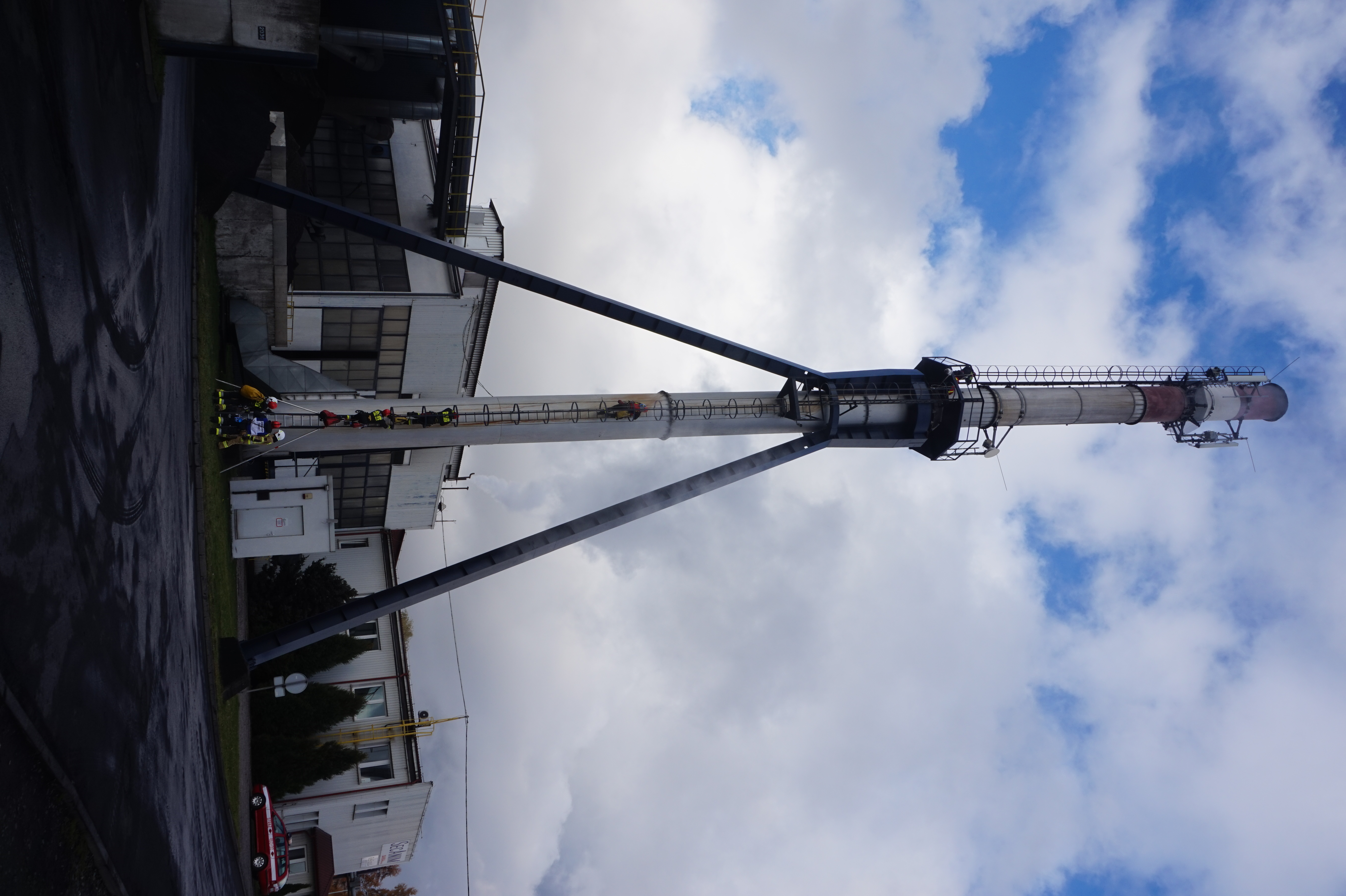- ewakuacja poszkodowanego z platformy komina przy wykorzystaniu technik linowych,