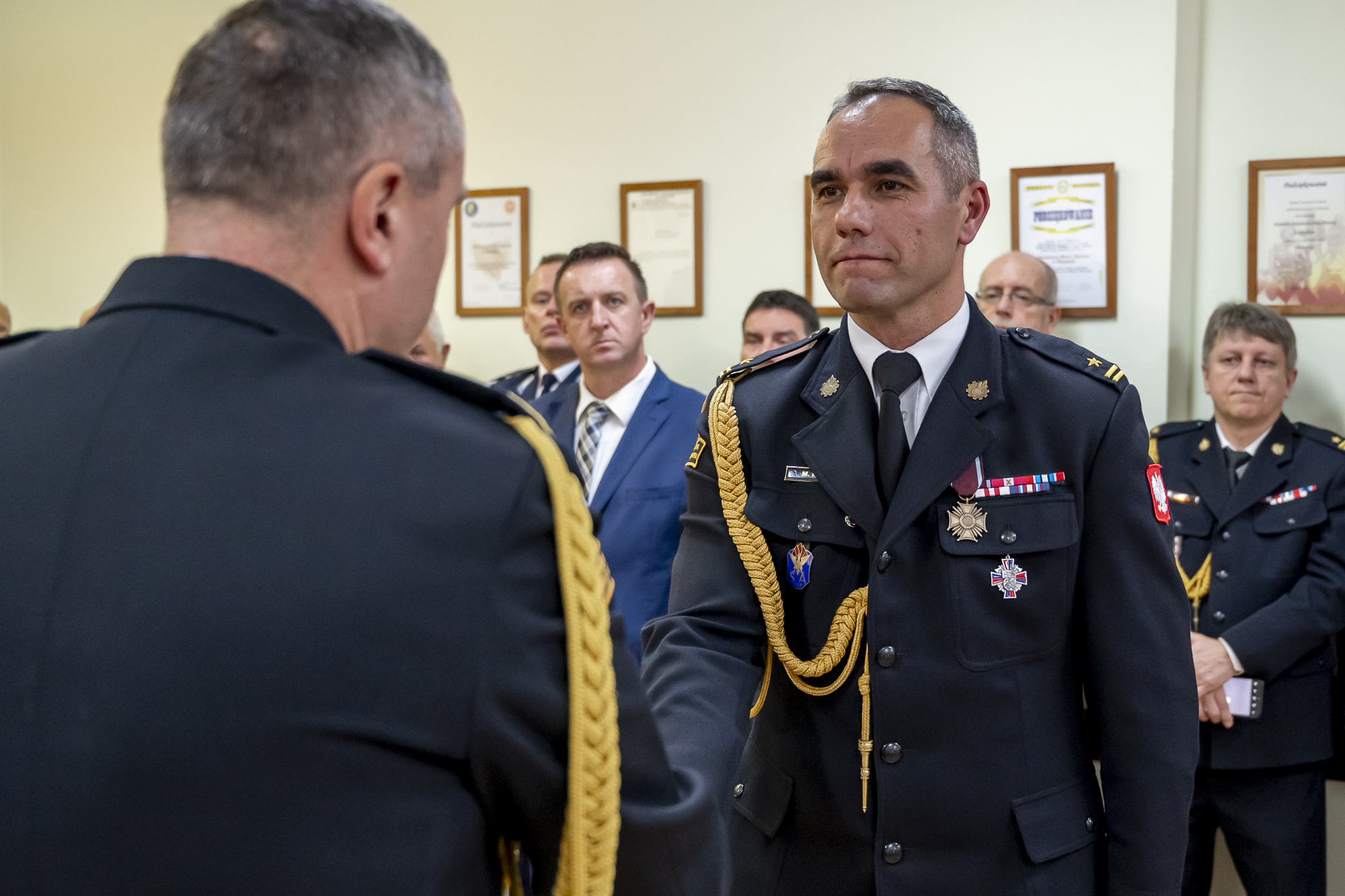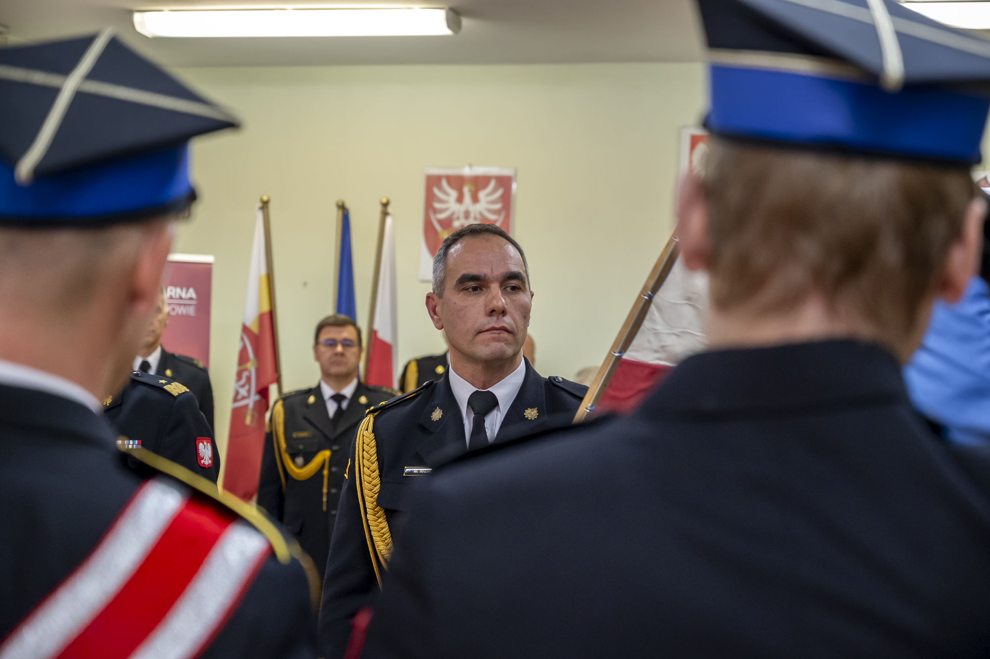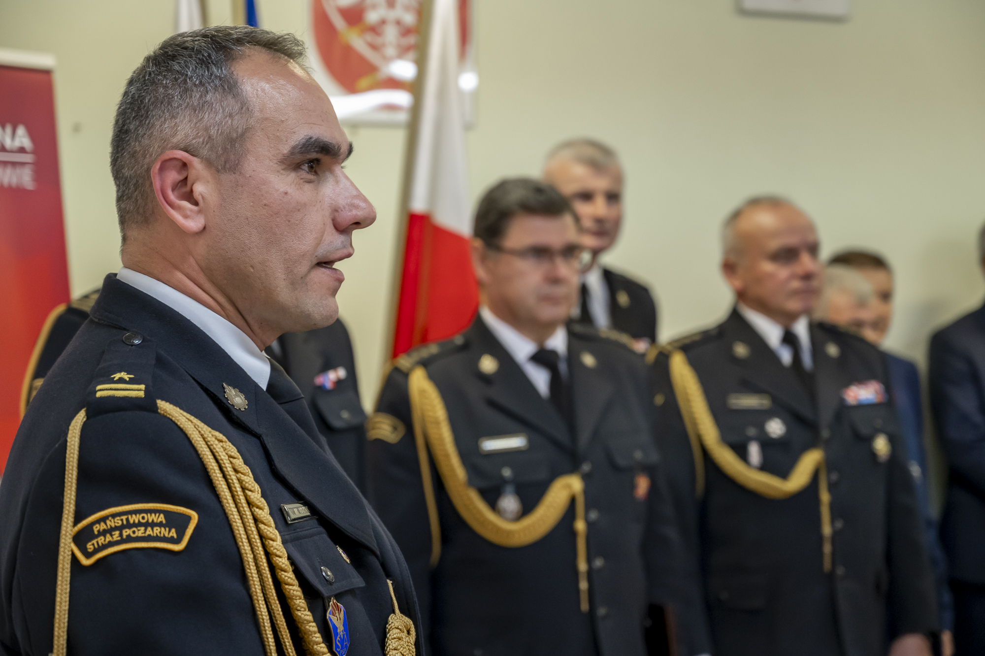 W uroczystej zbiórce poświęconej przywitaniu nowego Komendanta Powiatowego PSP w Miechowie oprócz funkcjonariuszy i pracowników komendy uczestniczyli przedstawiciele władz samorządowych z powiatu miechowskiego ze starostą miechowskim Panem Jackiem Kobyłką na czele, duchowieństwo, przedstawiciele współpracujących służb mundurowych oraz instytucji.