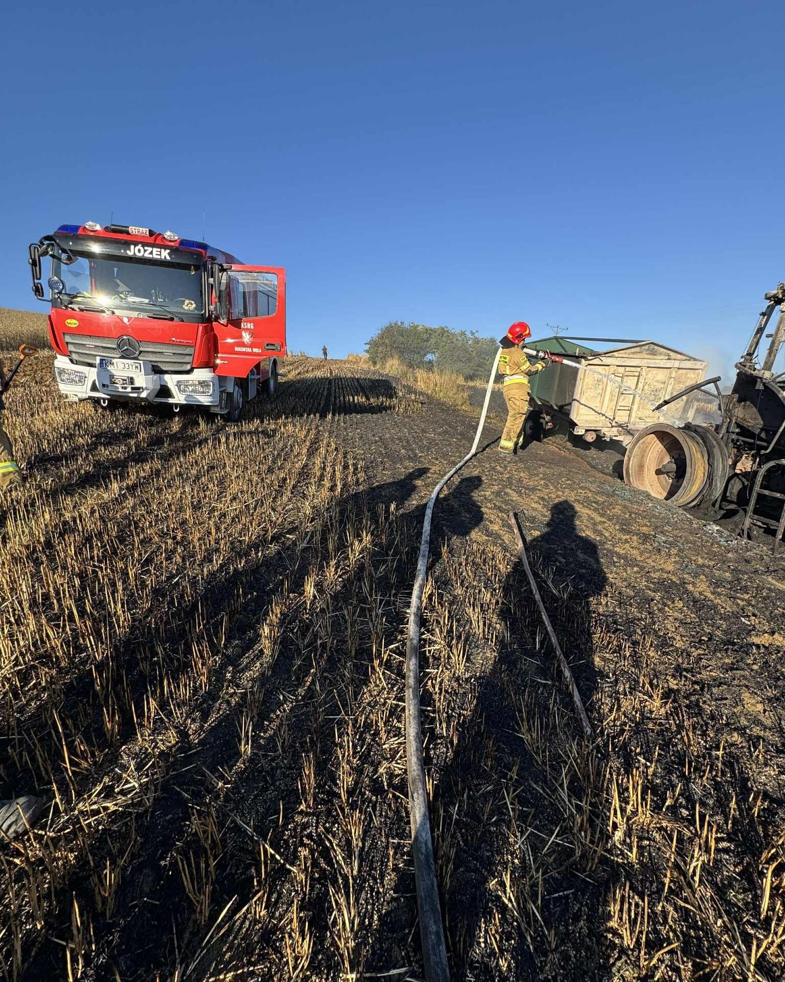 Pożar ciągnika rolniczego z przyczepą oraz zboża w miejscowości Kalina Wielka