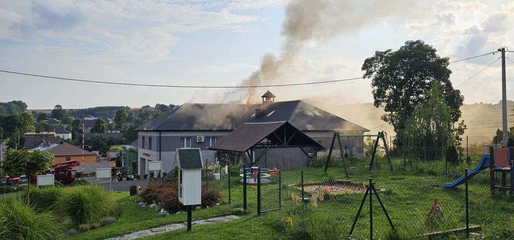 W dniu 19.08.2023 roku o godzinie 17:25 Dyżurny Stanowiska Kierowania Komendanta Powiatowego odebrał zgłoszenie o pożarze Remizy OSP Trzebienice. Na miejsce zadysponował trzy zastępy z JRG Miechów, dwa zastępy OSP Trzebienice , po jednym zastępie OSP Przybysławice, OSP Maków oraz OSP Szreniawa. Po przybyciu na miejsce zdarzenia i przeprowadzeniu rozpoznania stwierdzono, iż pożarem objęte jest poddasze budynku Remizy OSP w Trzebienicach, dym wydobywa spod dachu na zewnątrz.