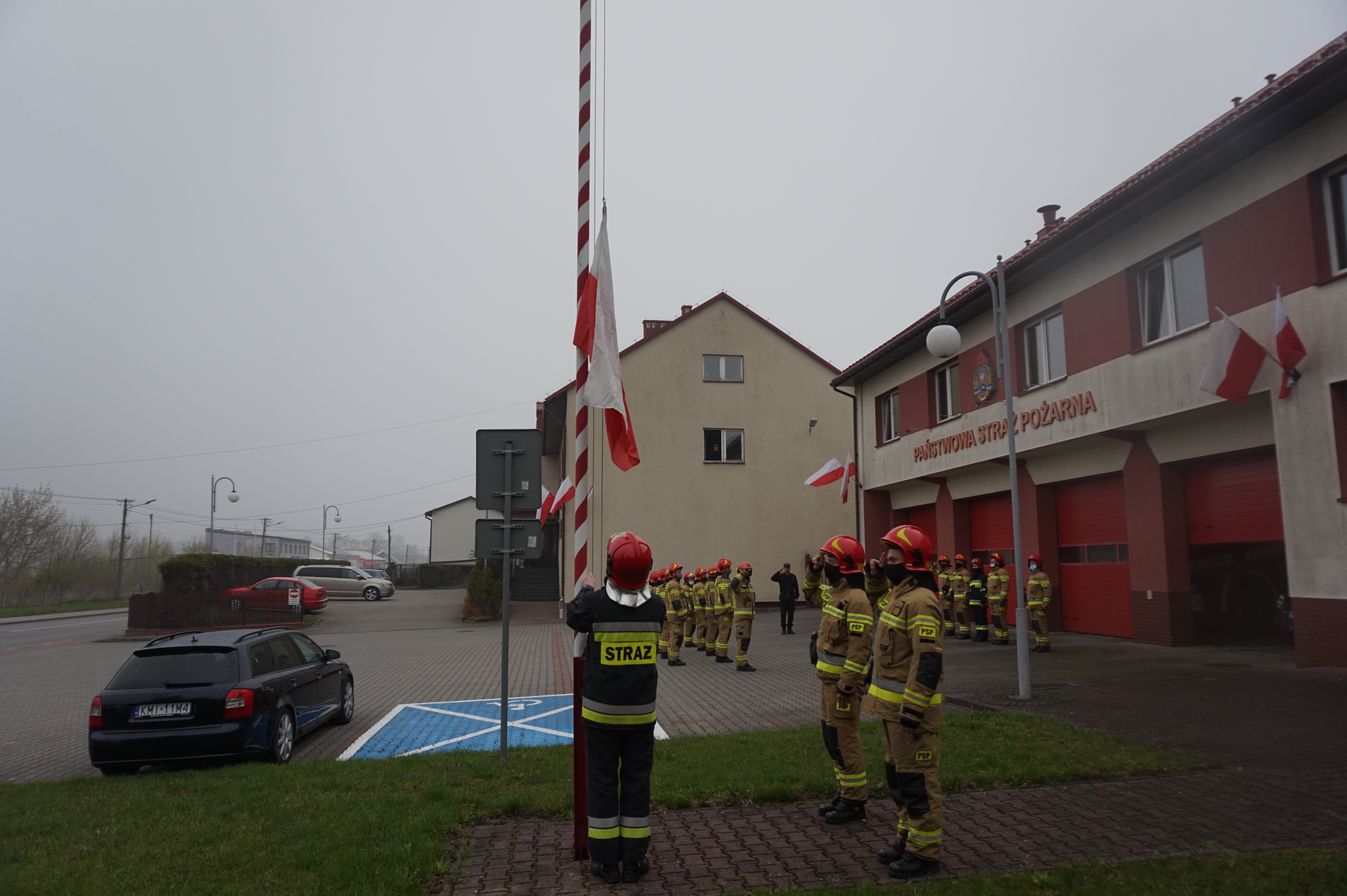 W dniu 2 maja 2021 r. podczas zmiany służby w Jednostce Ratowniczo – Gaśniczej PSP w Miechowie z okazji Dnia Flagi Rzeczypospolitej Polskiej uroczyście podniesiono flagę.