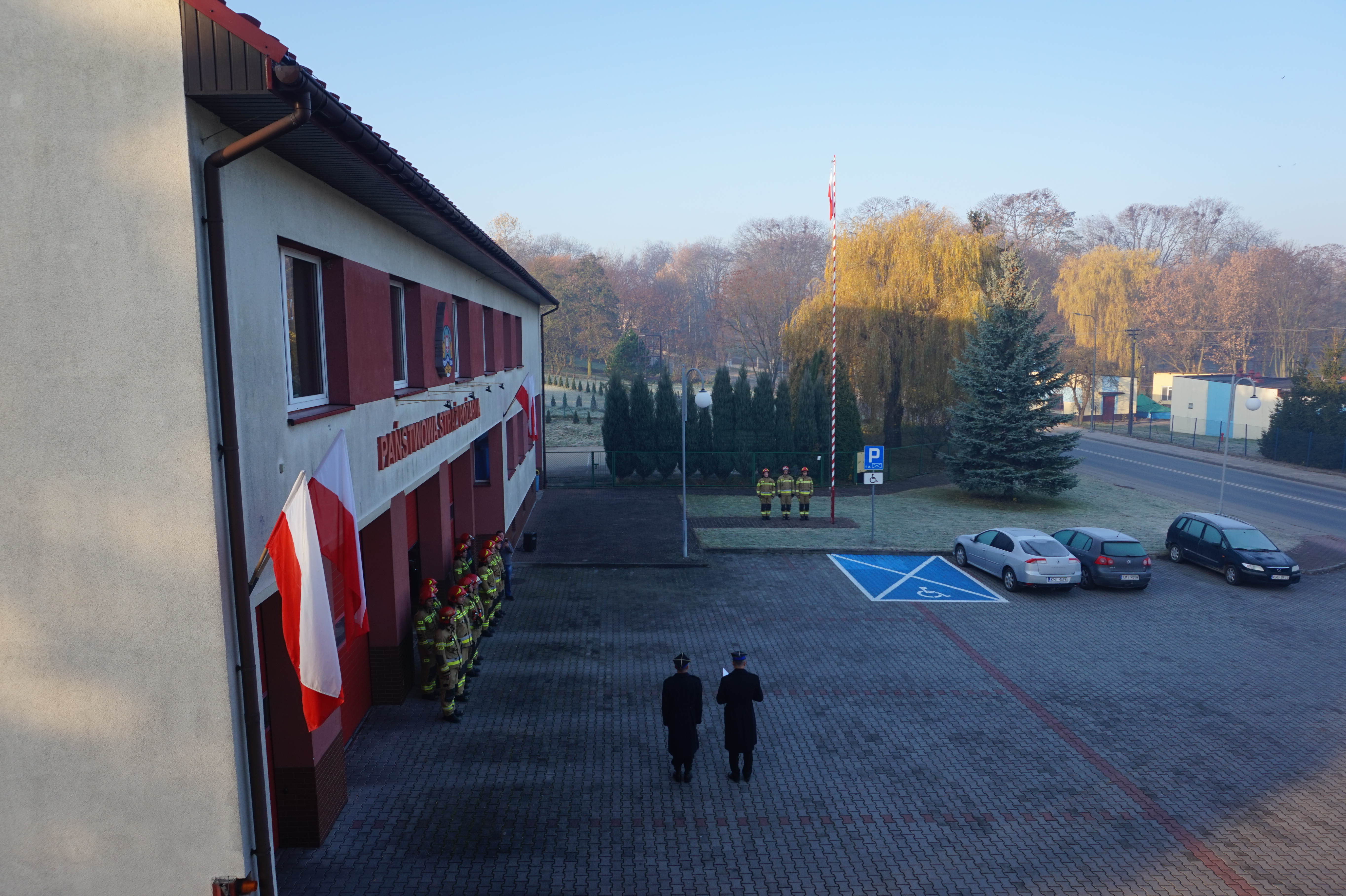 W dniu 11 listopada 2021 r. z okazji Narodowego Święta Niepodległości została przeprowadzona uroczysta zmiana służby w Jednostce Ratowniczo - Gaśniczej PSP w Miechowie z udziałem z-cy Komendanta Powiatowego PSP. Upamiętniając 103-cią rocznicę odzyskania niepodległości strażacy dokonali uroczystego podniesienia flagi państwowej z odśpiewaniem hymnu państwowego.