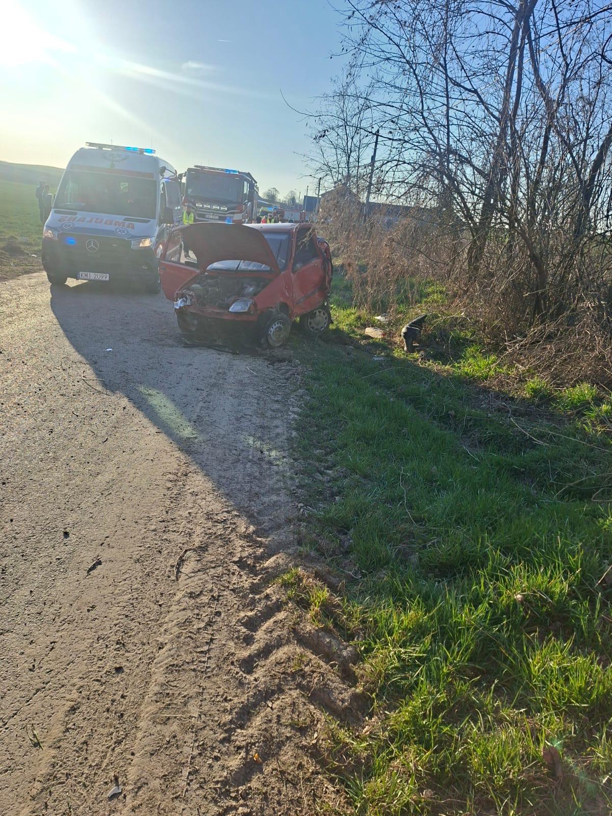 W dniu 18 marca 2026 roku około godziny 15:20 w miejscowości Słupów doszło do wypadku drogowego z udziałem samochodu osobowego marki Fiat Seicento, którym podróżowało trzech mężczyzn.