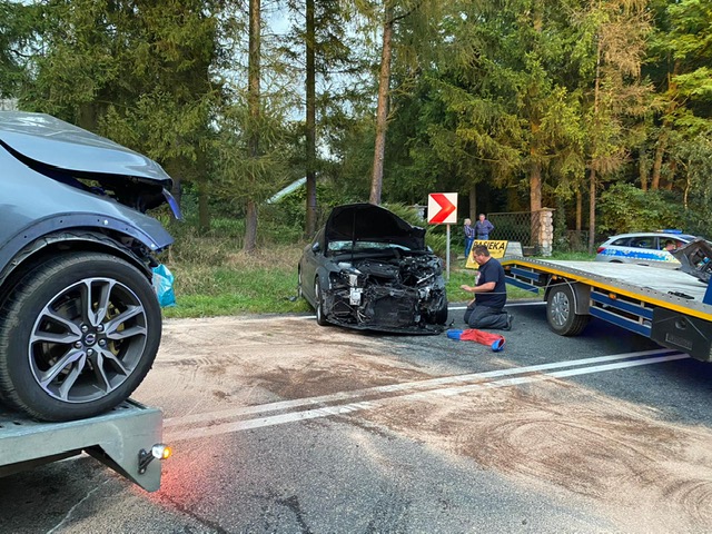 Dyżurny Stanowiska Kierowania Komendanta Powiatowego PSP w Miechowie, przyjął zgłoszenie o wypadku drogowym w miejscowości Falniów. Do zdarzenia zadysponował dwa zastępy z JRG Miechów oraz dwa zastępy OSP Falniów. Na miejscu ustalono, iż doszło do zderzenia czołowego dwóch samochodów osobowych. W wyniku zderzenia jeden pojazd znajdował się na jezdni, drugi poza drogą w rowie. Ruch na drodze na czas działań był zablokowany. W zdarzeniu poszkodowana została jedna osoba, którą po przebadaniu Zespół Ratownictwa Medycznego zabrał do szpitala.
