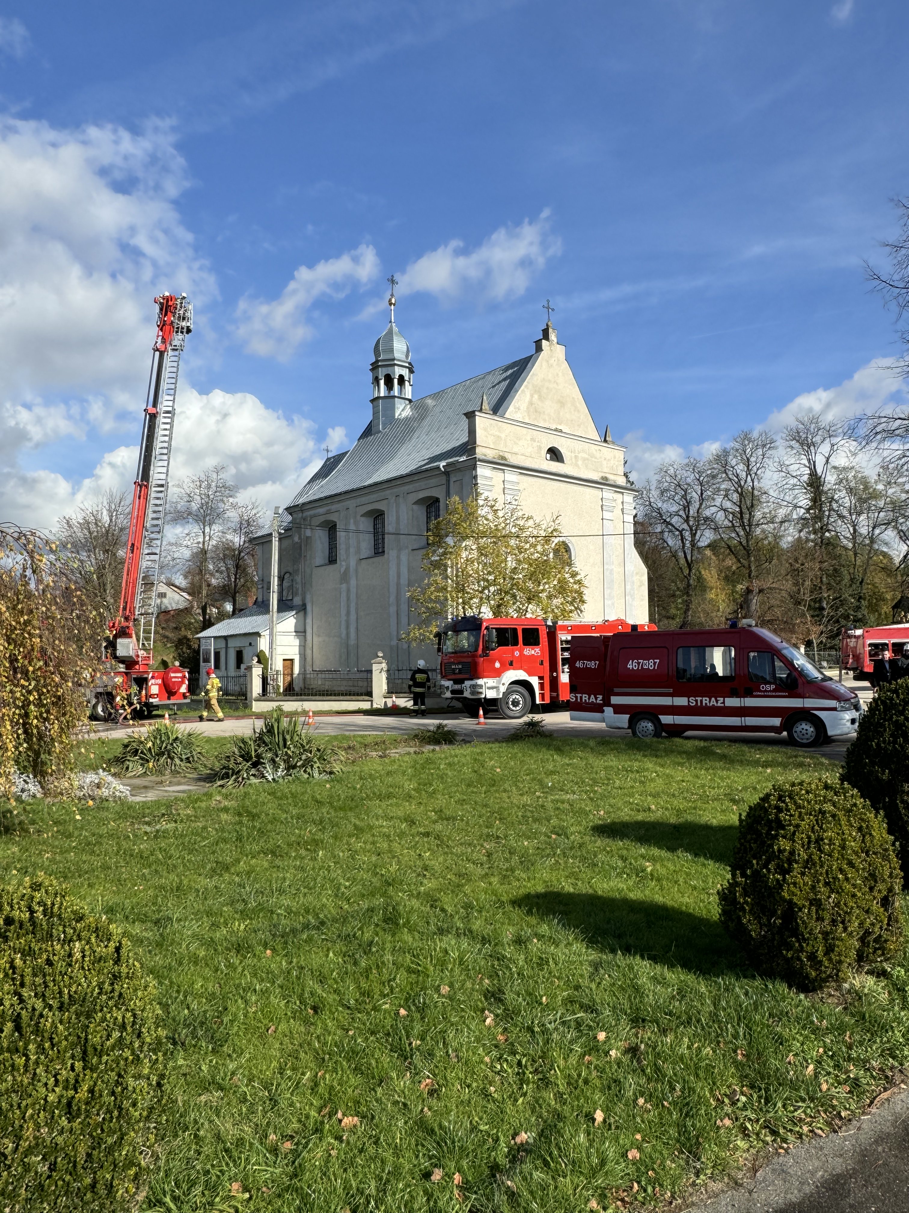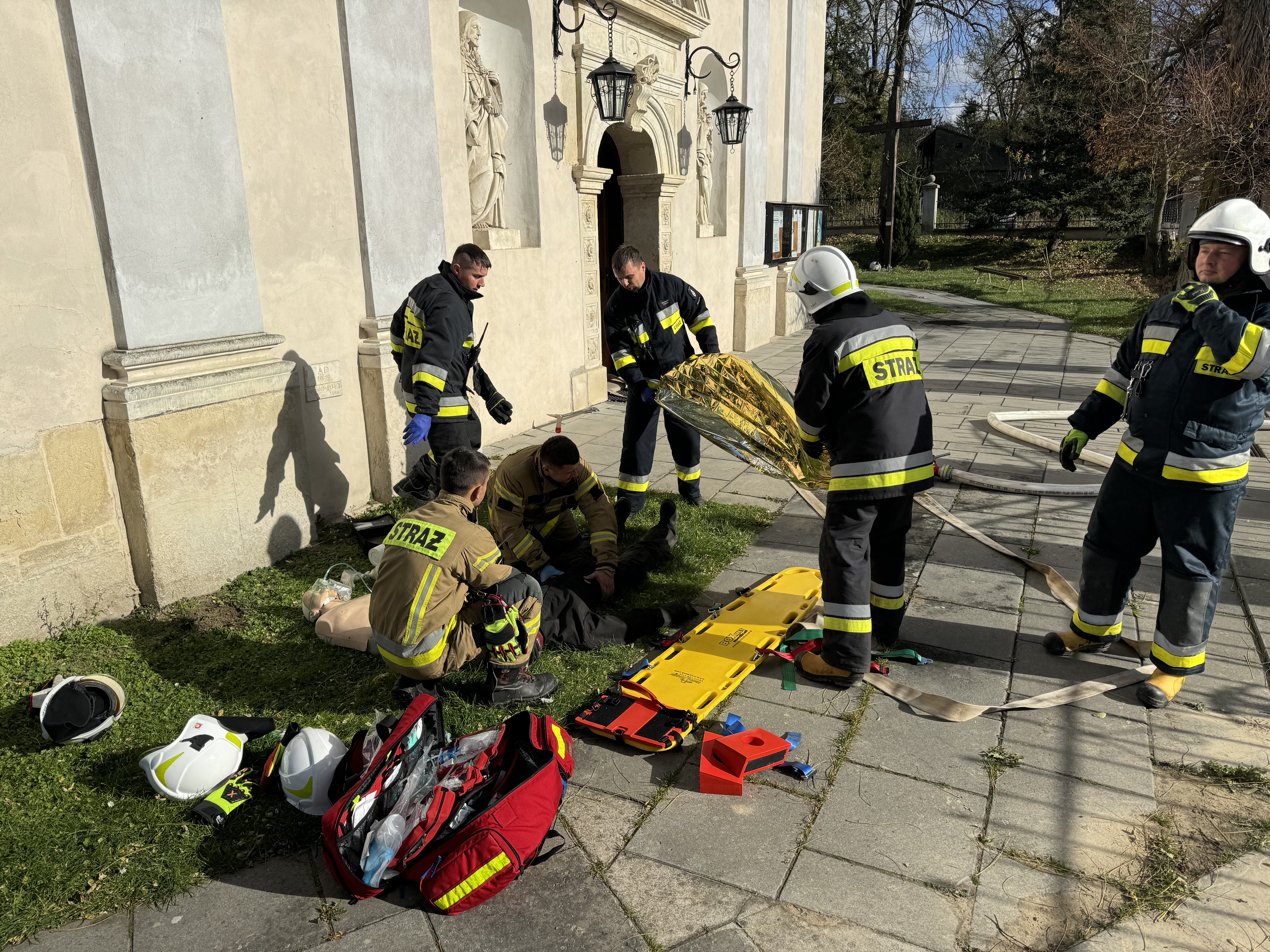 Działania strażaków obejmowały ewakuację poszkodowanych z obiektu sakralnego,