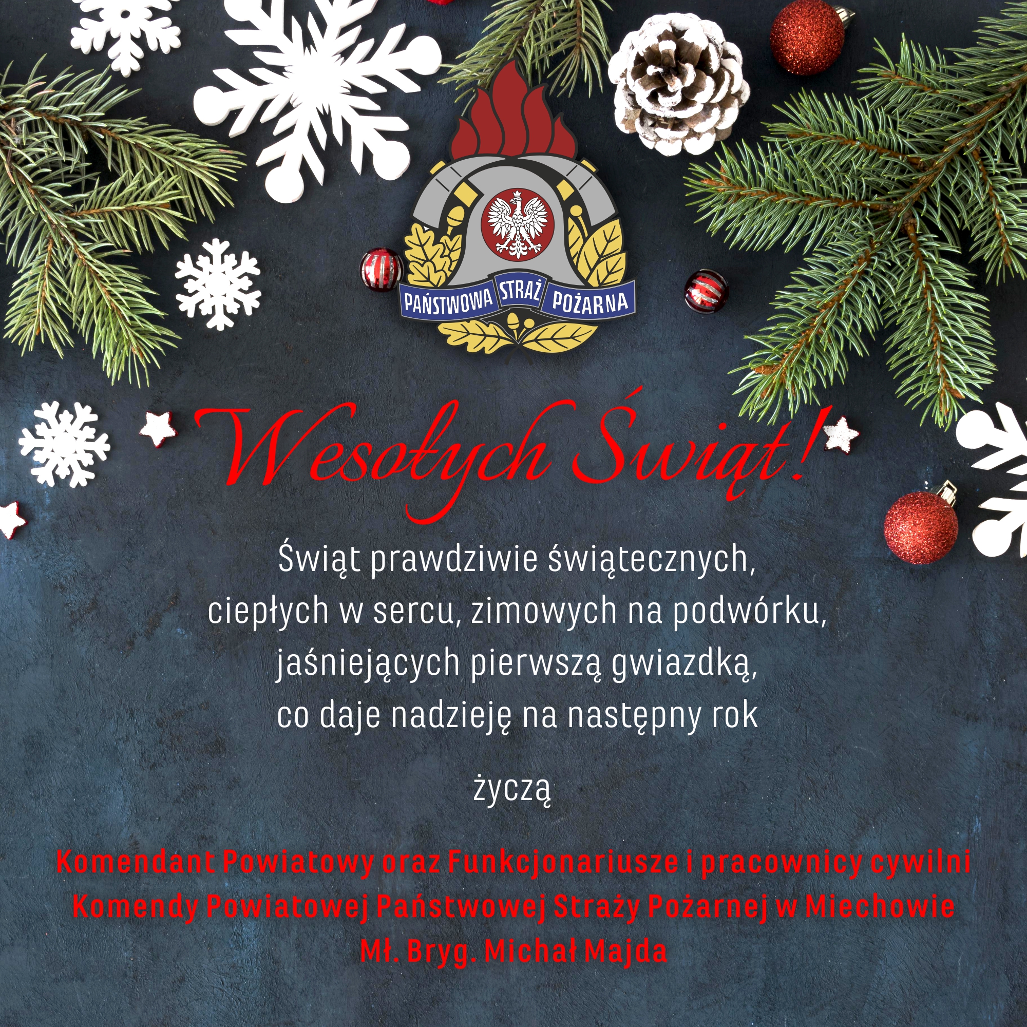 Życzenia świąteczne Komendanta Powiatowego PSP