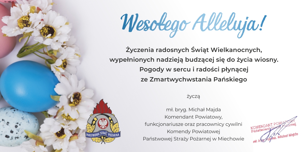 Życzenia Wielkanocne Komendanta Powiatowego PSP w Miechowie 07.04.2023 Zdjęcia (1) Pokaż zdjęcie 1 z galerii.