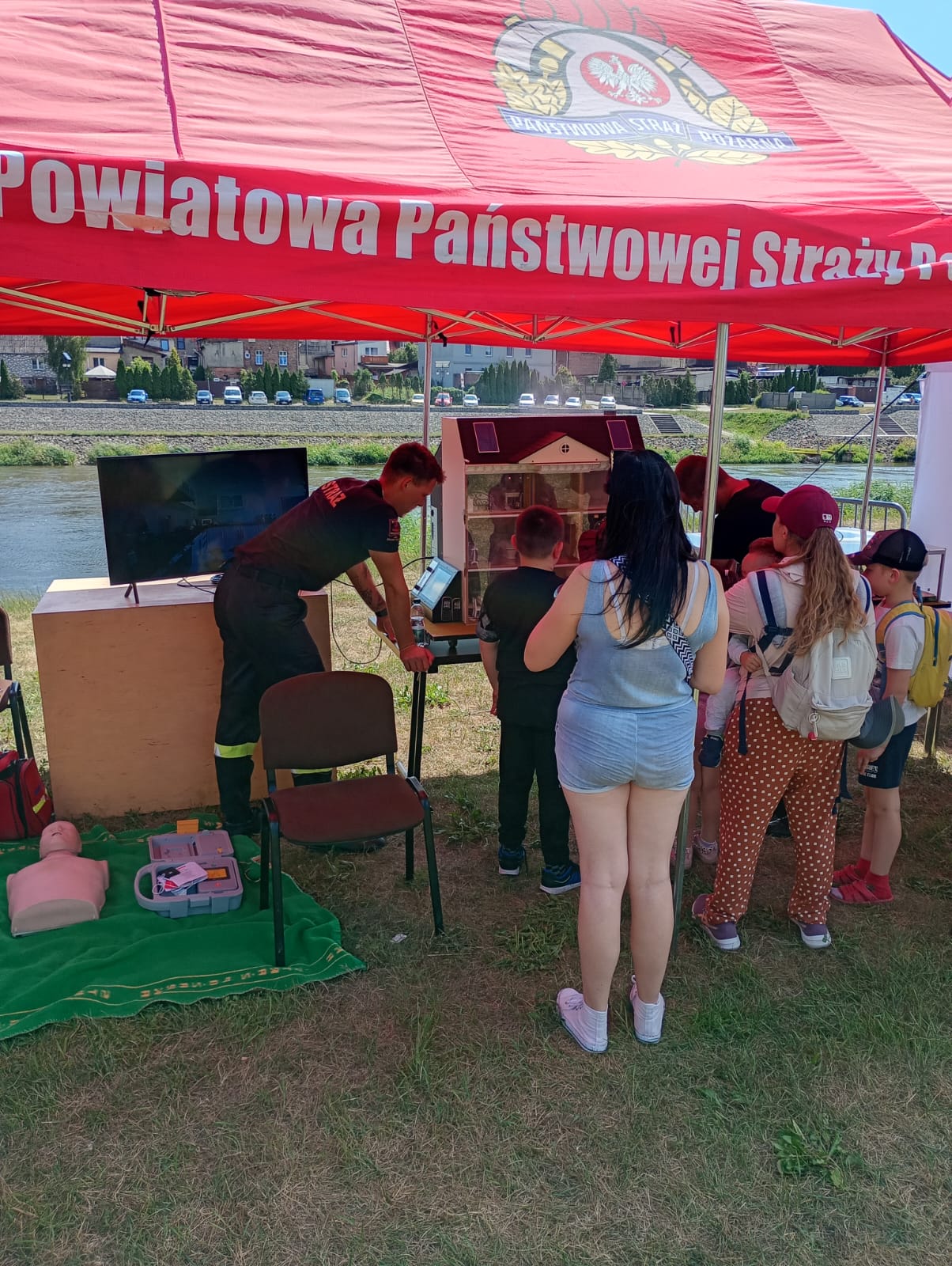 Funkcjonariusze PSP i OSP chętnie odpowiadali na pytania odwiedzających oraz prowadzili pogadanki na temat bezpieczeństwa nad wodą i w domu. Dla osób najbardziej angażujących się przygotowano drobne upominki oraz jedną czujkę dymu.