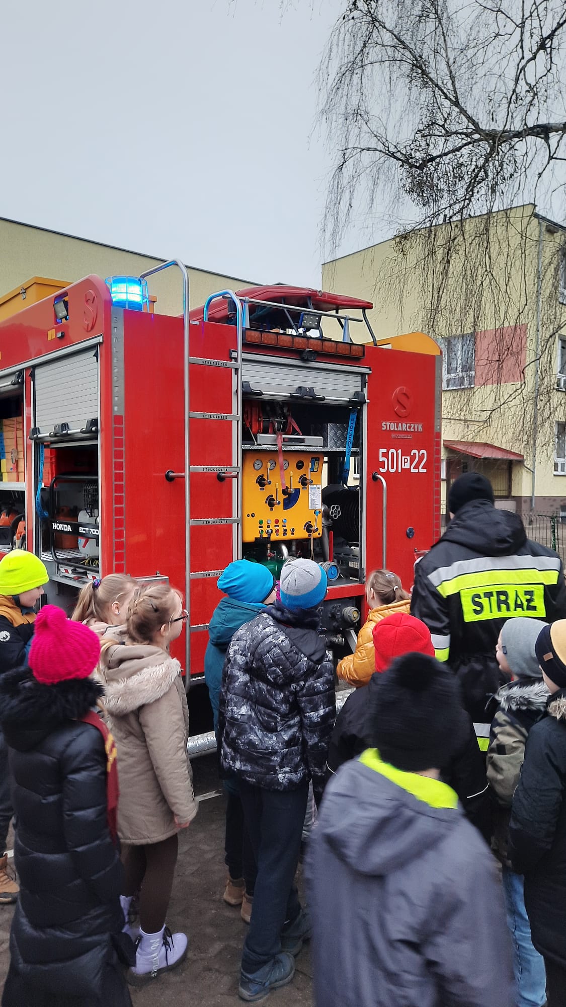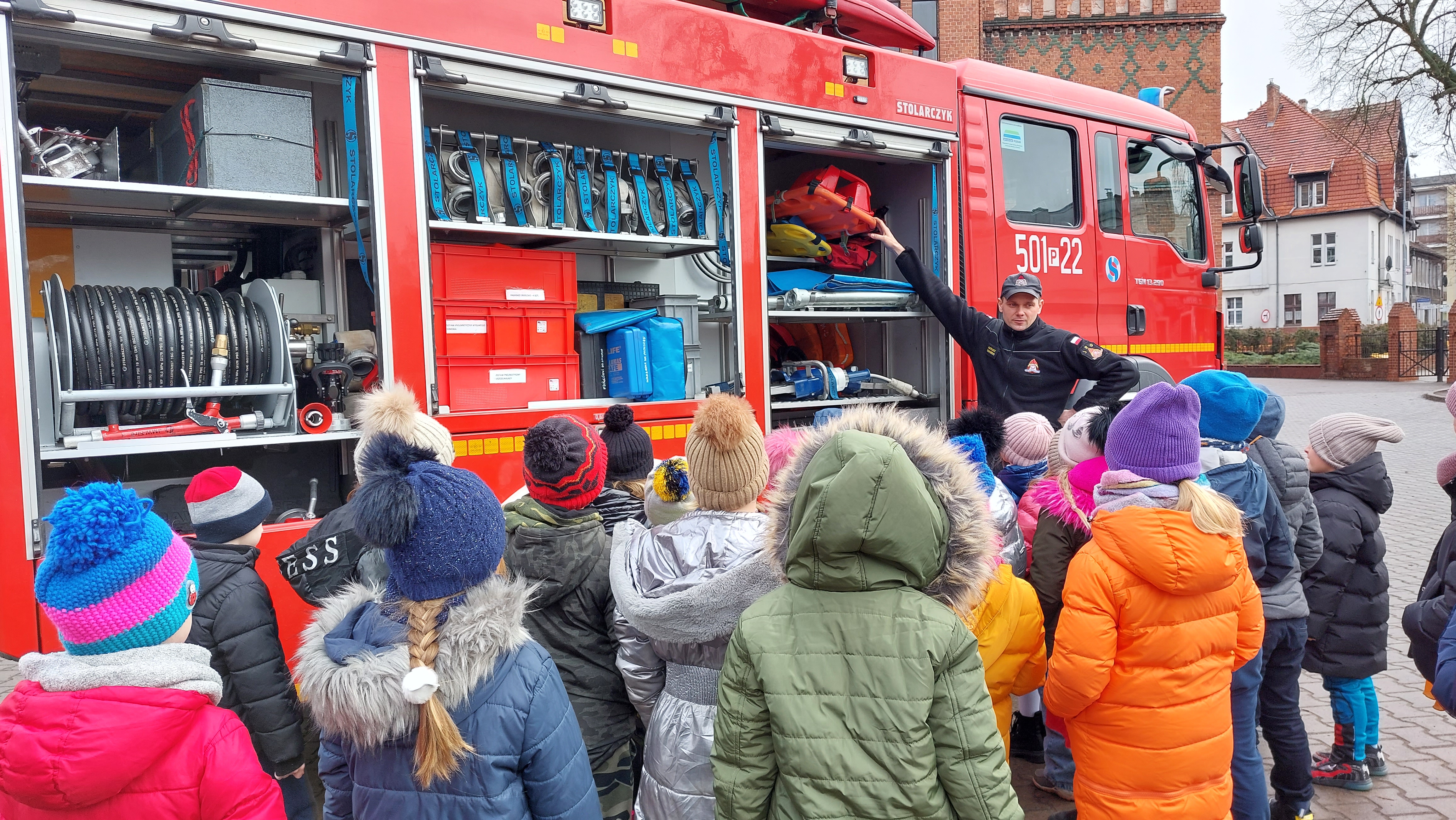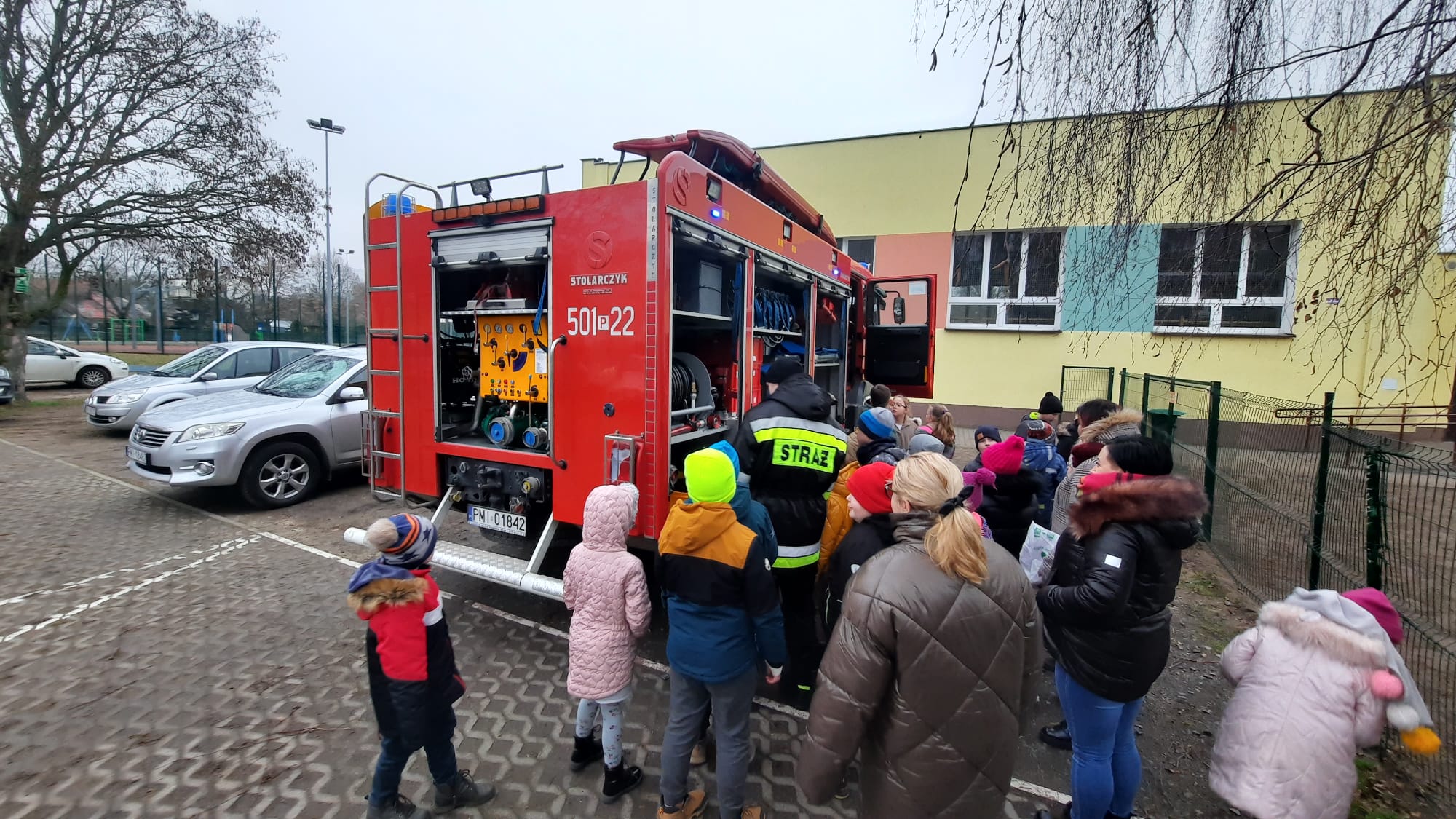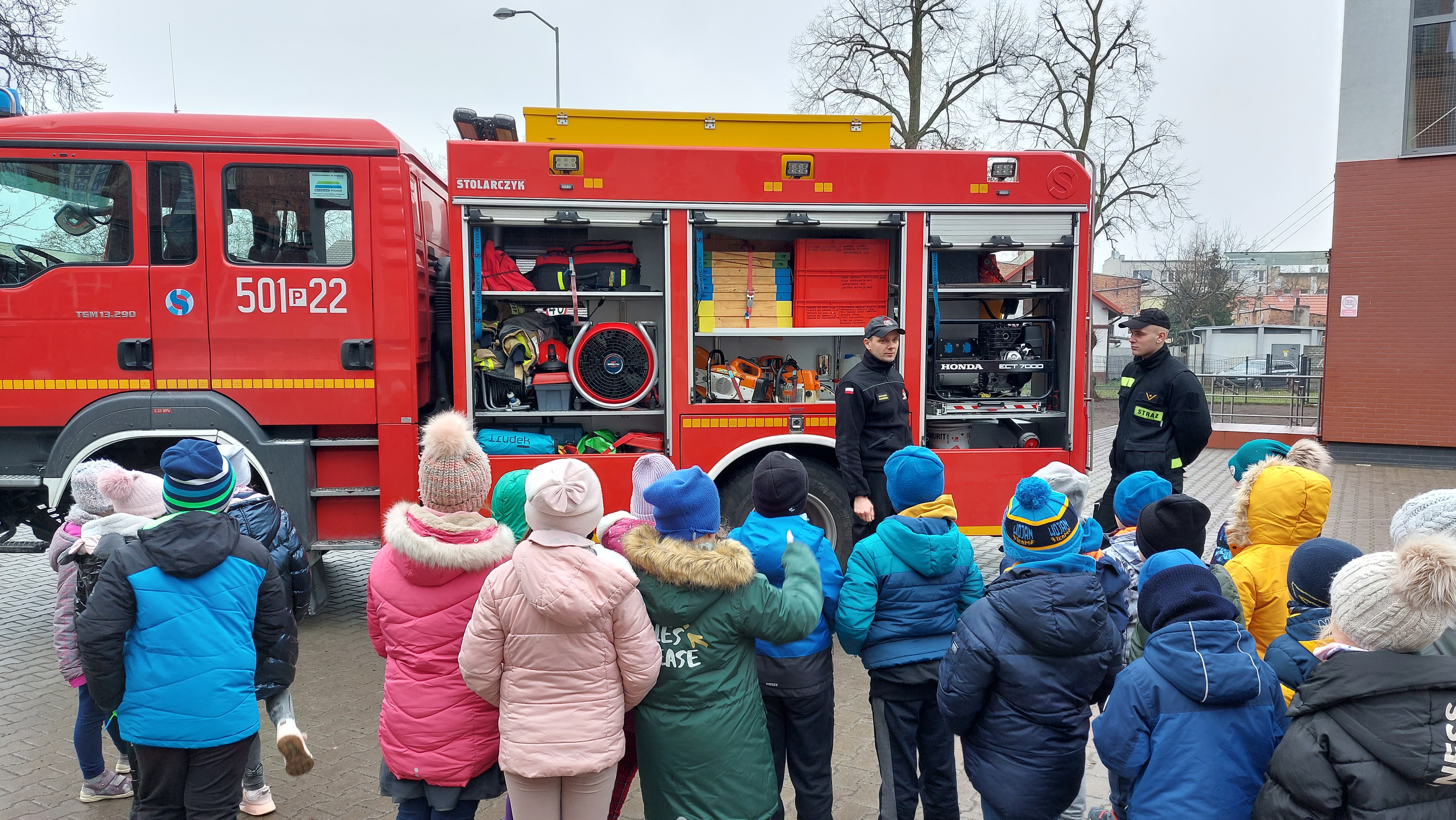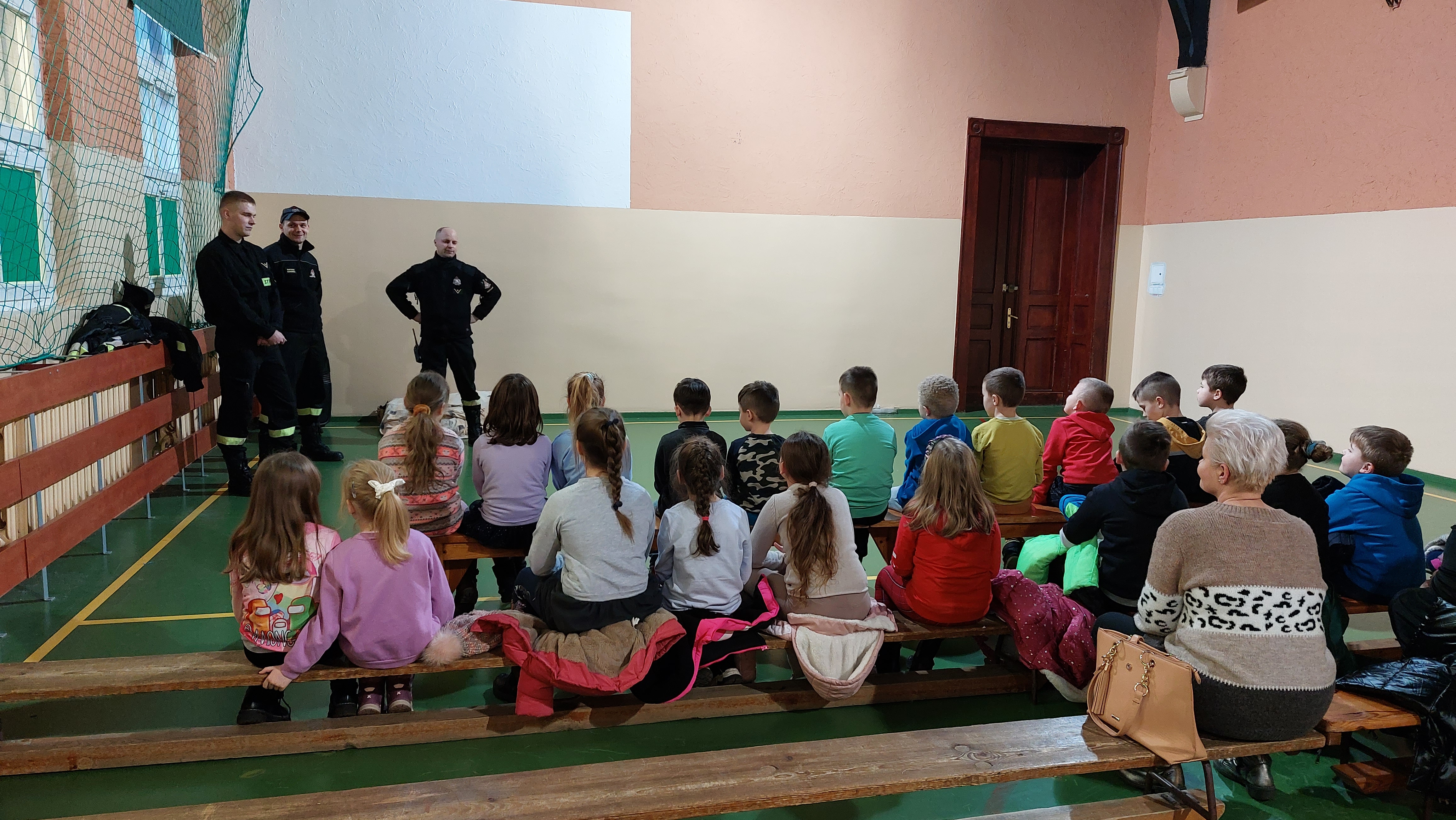 Strażacy rozmawiali jak bezpiecznie spędzić ferie oraz zostały poruszone tematy związane z zamarzniętymi akwenami, bezpieczeństwem pożarowym, zagrożeń związanym z tlenkiem węgla, przekazywaniem zgłoszeń na numer alarmowy 112. Ponadto funkcjonariusze opowiedzieli jak wygląda ich zawód oraz przedstawili sprzęt jakim pracują na co dzień.