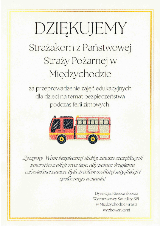 26 i 27 stycznia 2023 roku funkcjonariusze z Komendy Powiatowej Państwowej Straży Pożarnej w Międzychodzie w związku z rozpoczynającymi się feriami zimowymi, spotkali się kolejno z dziećmi w Szkole Podstawowej nr 2 w Międzychodzie i Szkole Podstawowej nr 1 w Międzychodzie.