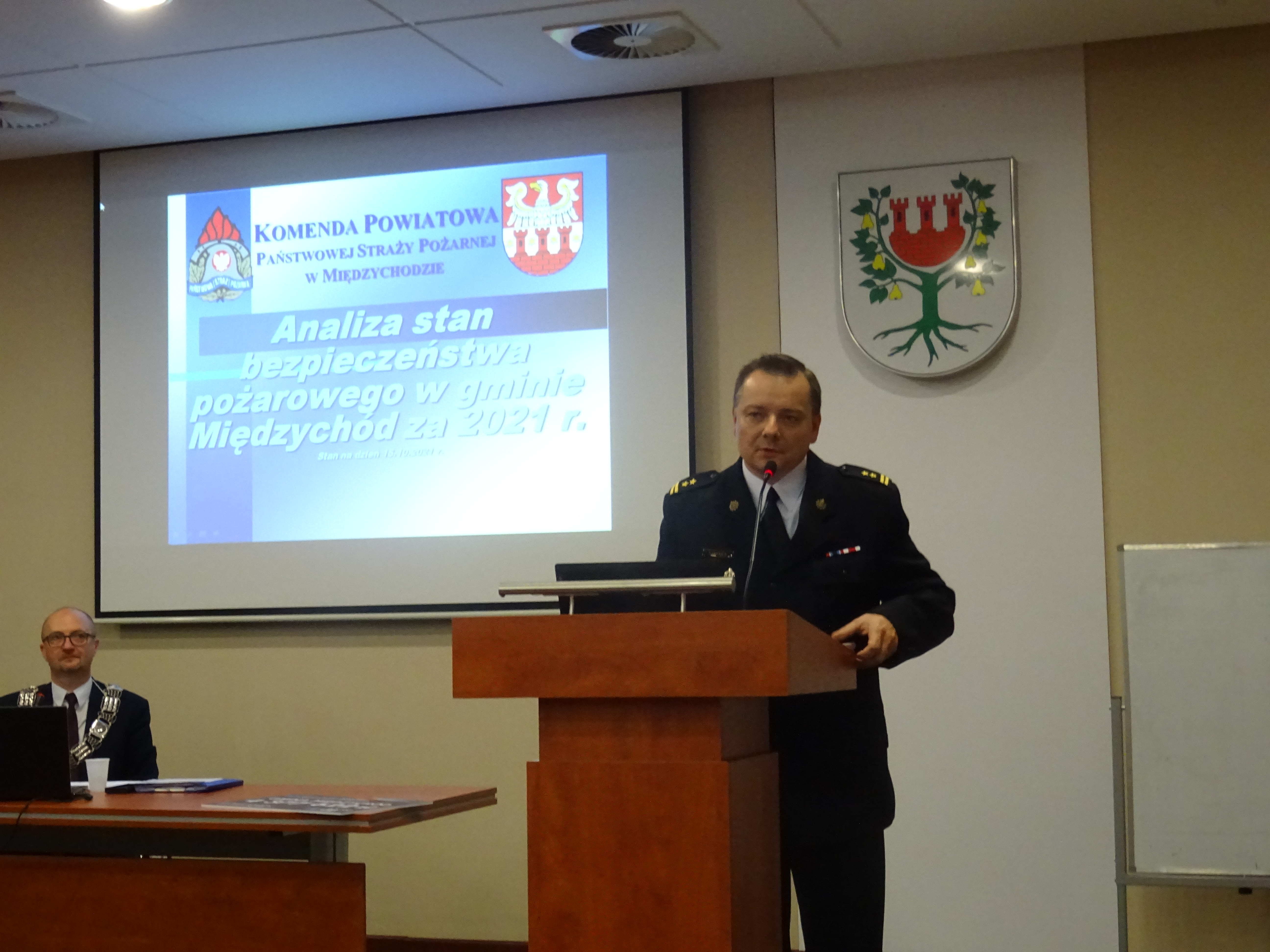 Na XLII Sesji Rady Miejskiej Międzychodu Zastępca Komendanta Powiatowego Państwowej Straży Pożarnej w Międzychodzie bryg. Roman Grzebieta przedstawił analizę stanu bezpieczeństwa pożarowego na terenie gminy Międzychód.