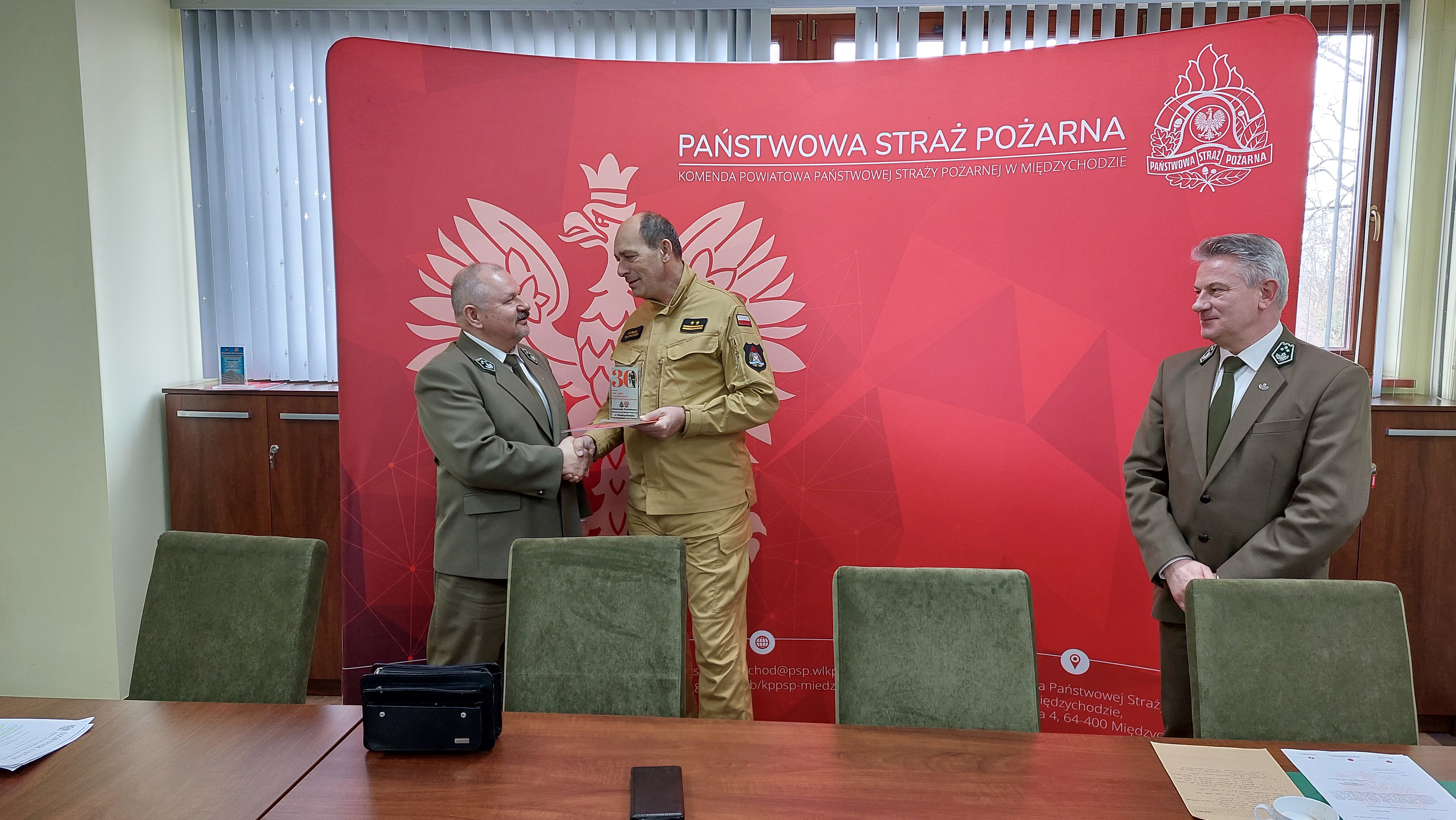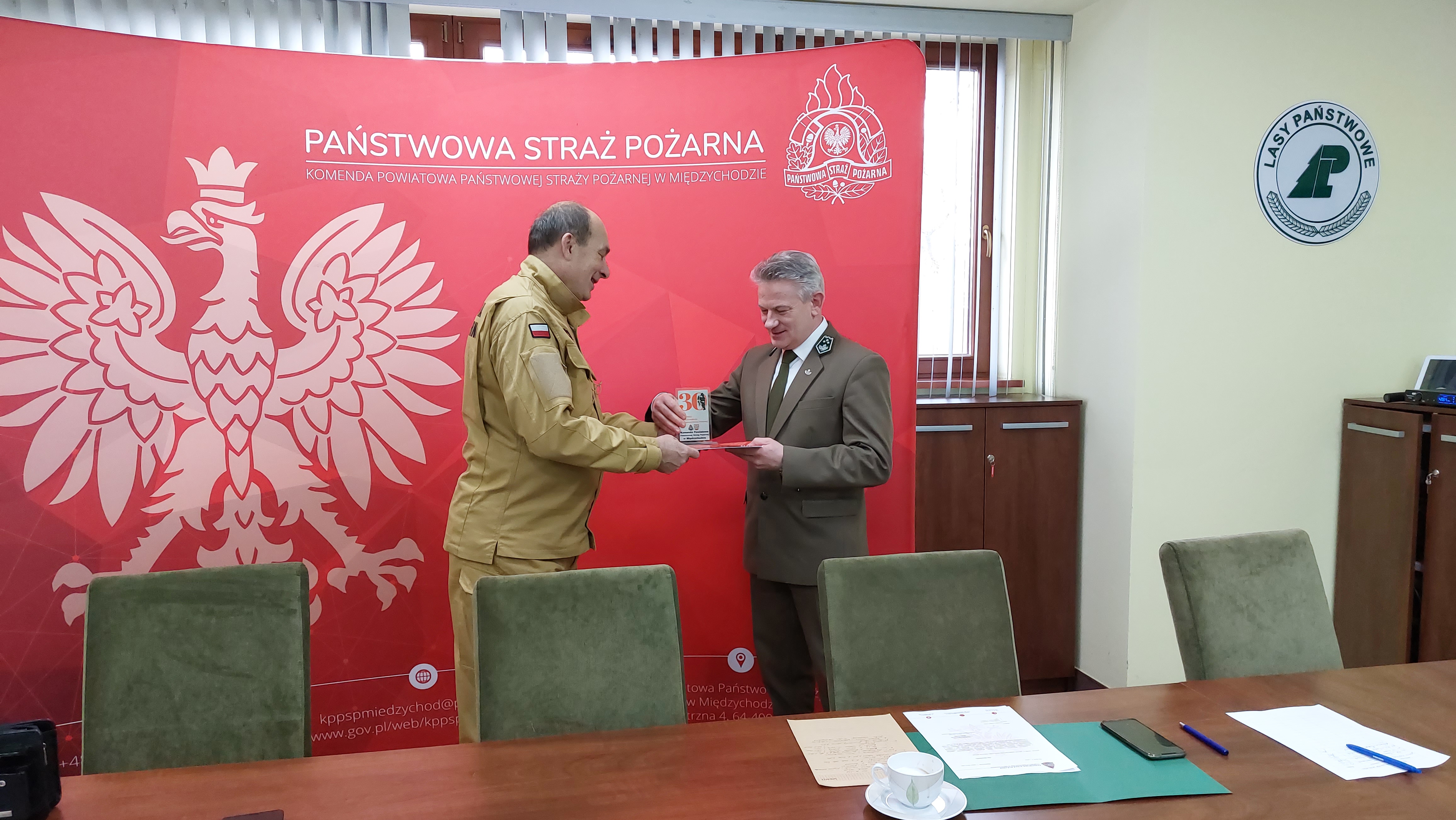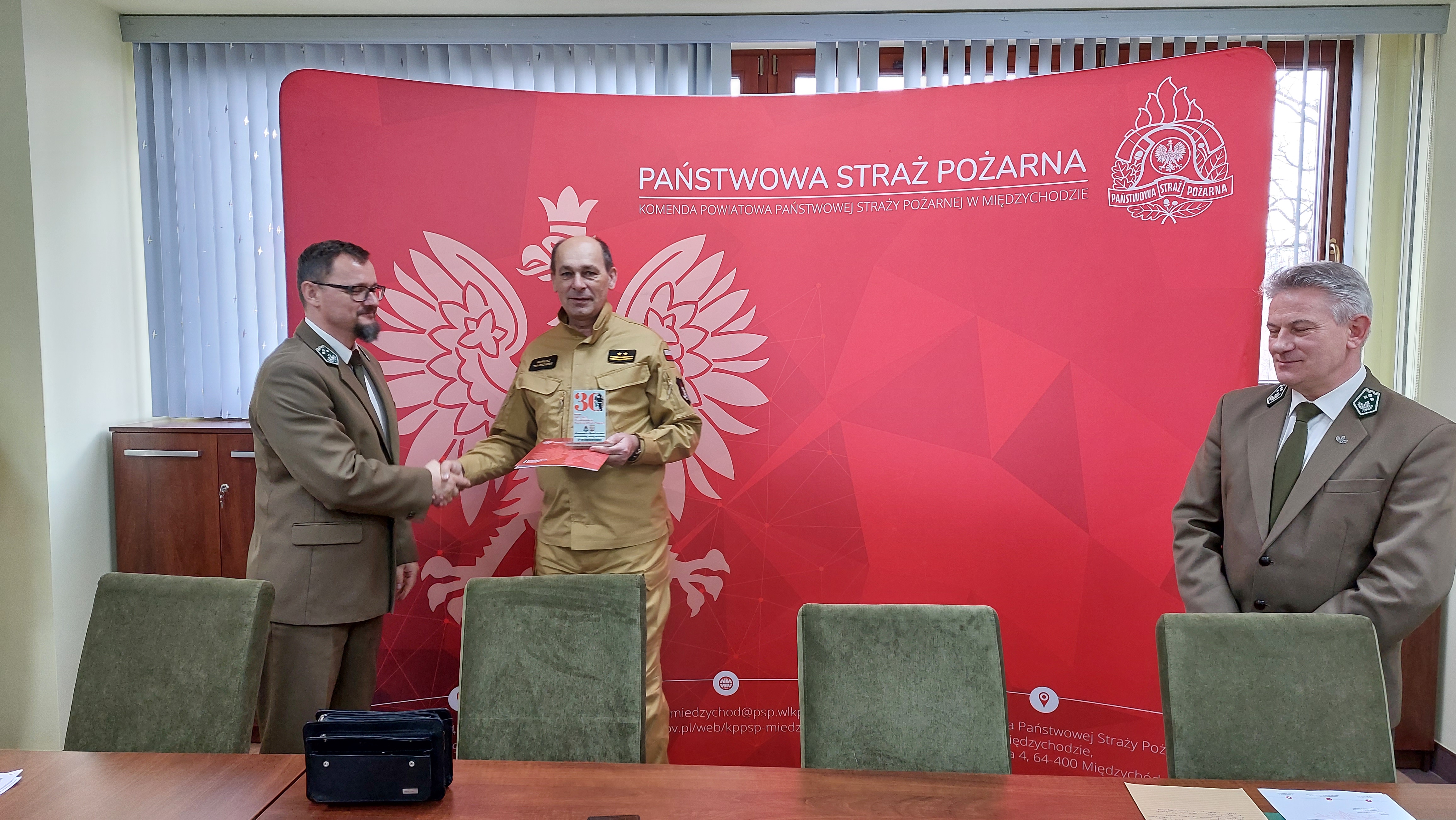 Komendant Państwowej Straży Pożarnej w Międzychodzie bryg. Mariusz Trajnowski wręczył podziękowania dla nadleśnictw znajdujących się na terenie powiatu międzychodzkiego za wsparcie realizacji zadań w 2022 r. Tematem narady było bezpieczeństwo pożarowe obszarów leśnych, na którym poruszono zagadnienia zabezpieczenia przeciwpożarowego obszarów leśnych, podsumowanie i wnioski ćwiczeń na obszarach leśnych, powiatu międzychodzkiego oraz województwa wielkopolskiego, analiza pożarów na obszarach leśnych oraz uzgadnianie projektów planu urządzania lasu przez organy PSP.