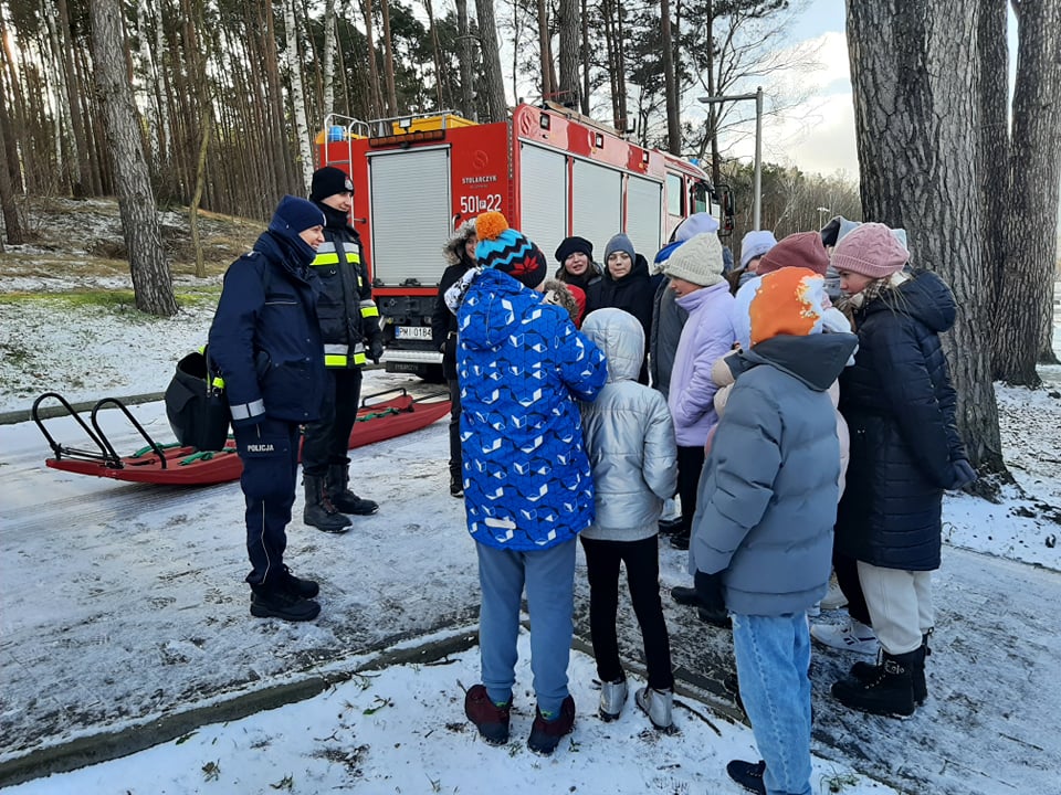 Spotkanie w ramach akcji prowadzonych przez służby mundurowe podczas ferii zimowych "Kręci mnie bezpieczeństwo" było okazją do przypomnienia podstawowych zasad bezpieczeństwa, o których należy pamiętać w czasie zimowych wypoczynków, obozów, zimowisk itp.