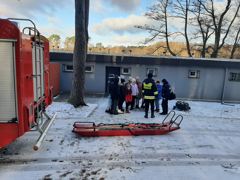 W czwartek 20 stycznia 2022 roku strażacy Komendy Powiatowej Państwowej Straży Pożarnej w Międzychodzie wraz policjantami Komendy Powiatowej Policji w Międzychodzie oraz strażnikami Straży Miejskiej w Międzychodzie spotkali się z dziećmi i młodzieżą przebywającymi na feriach zimowych, na terenie powiatu międzychodzkiego.