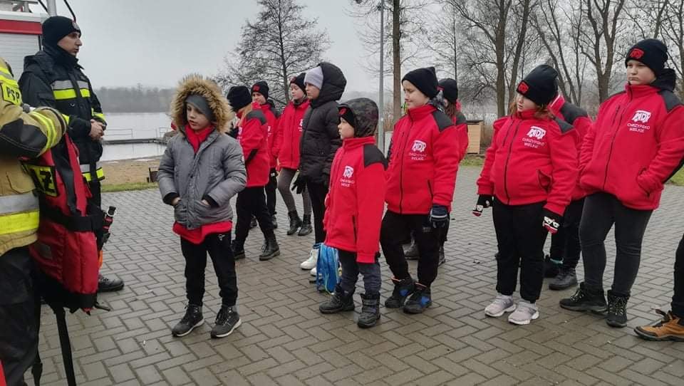 Młodzi adepci pożarnictwa z MDP Chrzypsko Wielkie odbywają cykl zajęć podczas ferii zimowych, dowiadując się m.in. jakie działania podejmują strażacy w sytuacji zagrożenia życia i zdrowia ludzkiego na zamarzniętych zbiornikach wodnych.