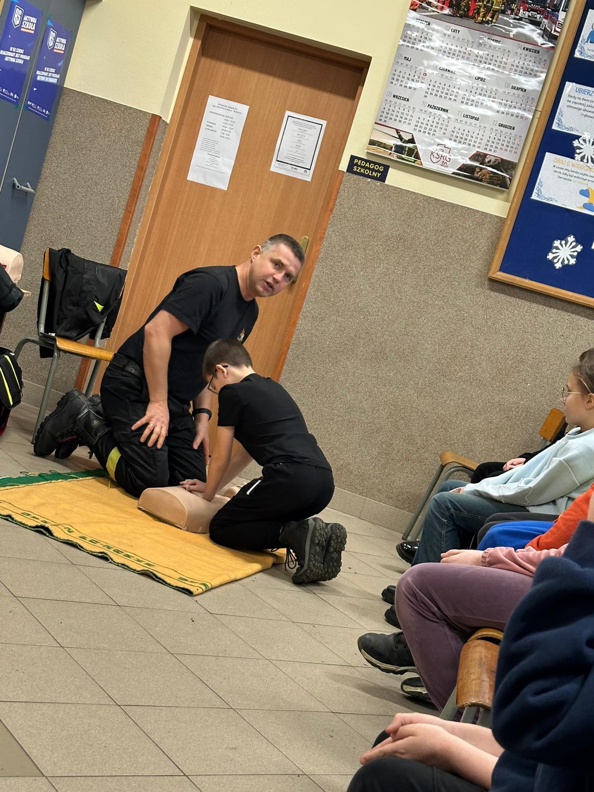 W pogadance uczniowie zapoznali się z zasadami bezpiecznego spędzania czasu w trakcie ferii zimowych. Dodatkowo, dzieci uczestniczyły w szkoleniu z zakresu udzielania pierwszej pomocy, które poprowadzili funkcjonariusze Komendy Powiatowej PSP w Międzychodzie.