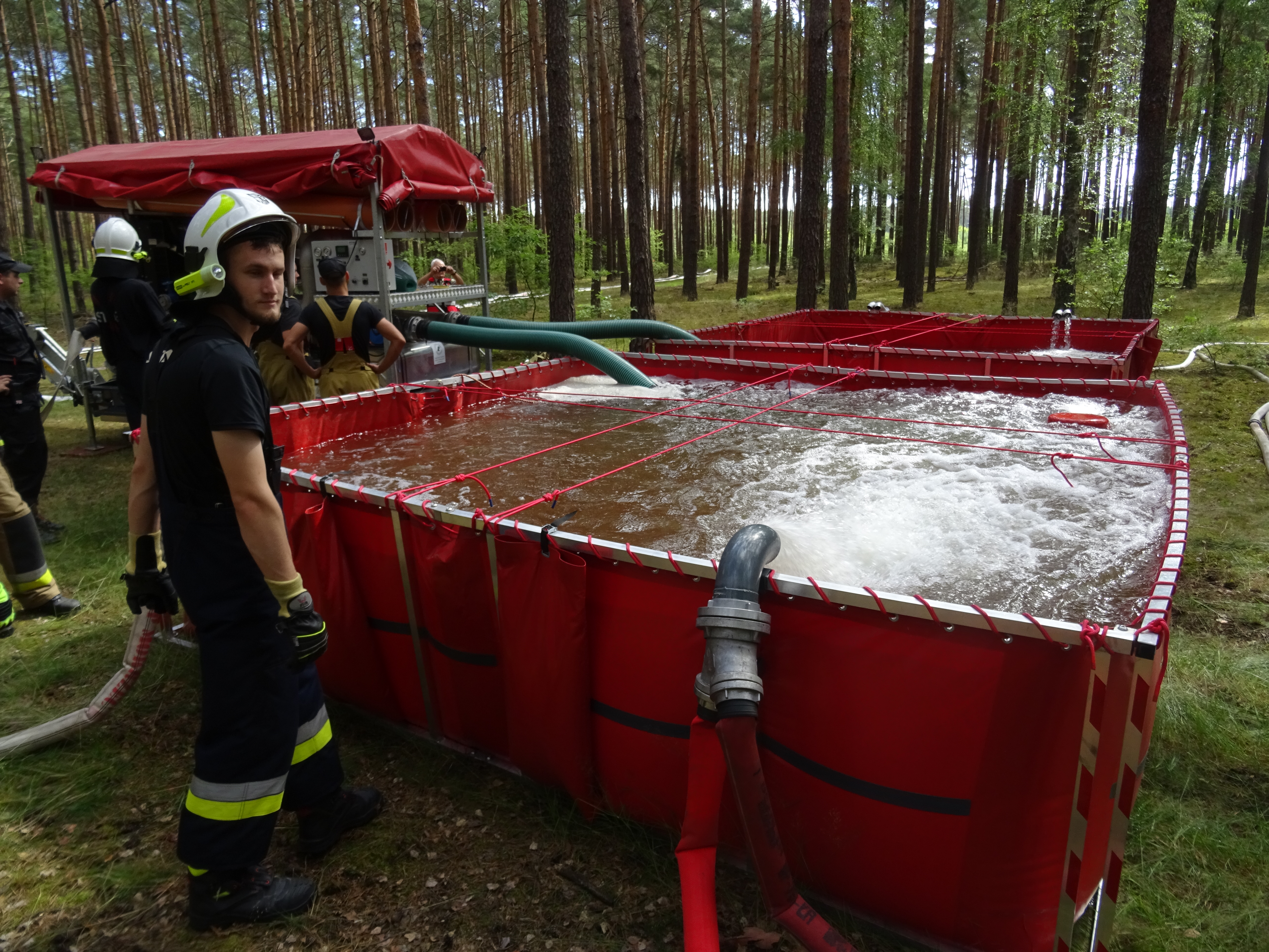 - dostarczanie wody z wykorzystaniem motopomp pożarniczych,