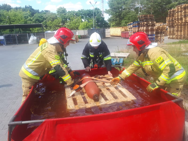 Głównym celem ćwiczeń było doskonalenie postępowania podczas zdarzeń z udziałem butli z acetylenem.
