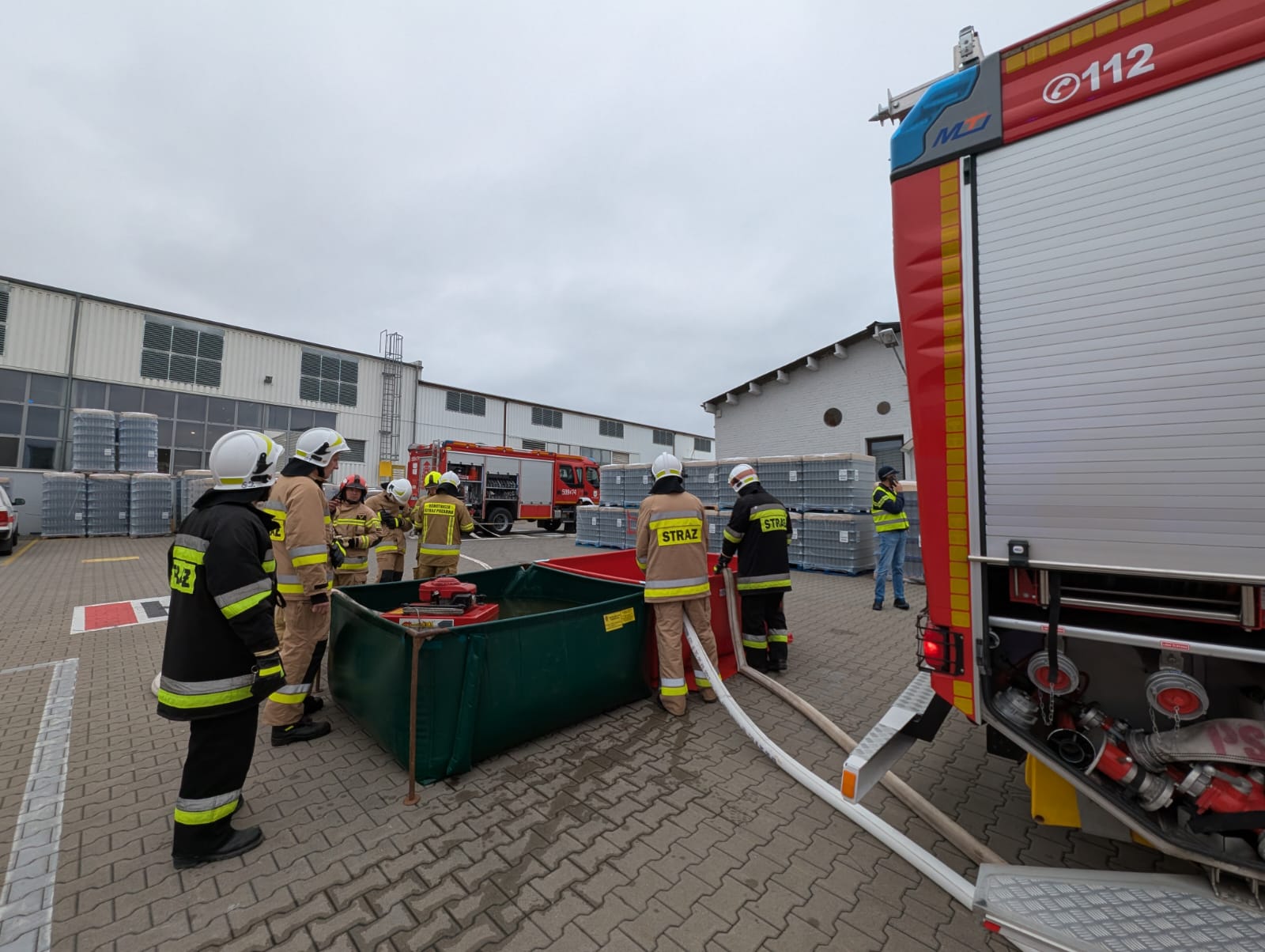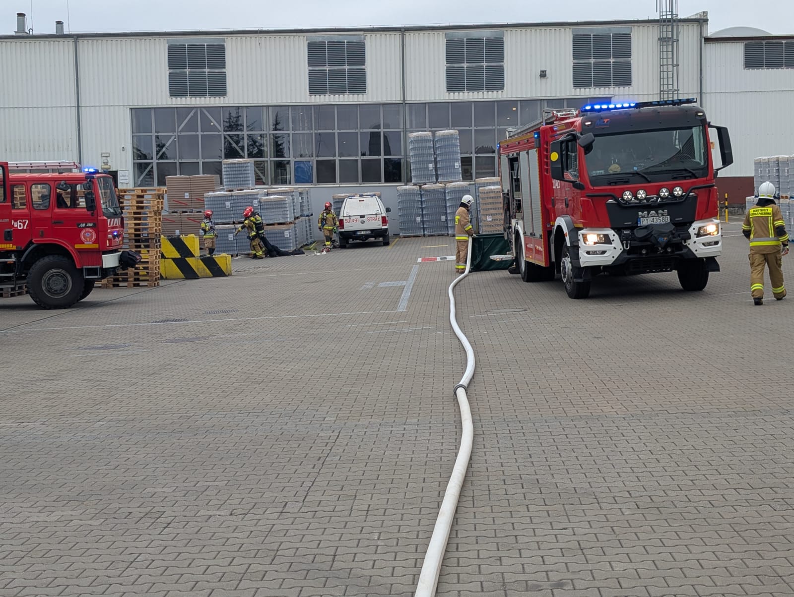 Scenariusz ćwiczeń zakładał wybuch pożaru w jednym z budynków produkcyjno-magazynowych zakładu, w wyniku którego poszkodowane zostały dwie osoby.