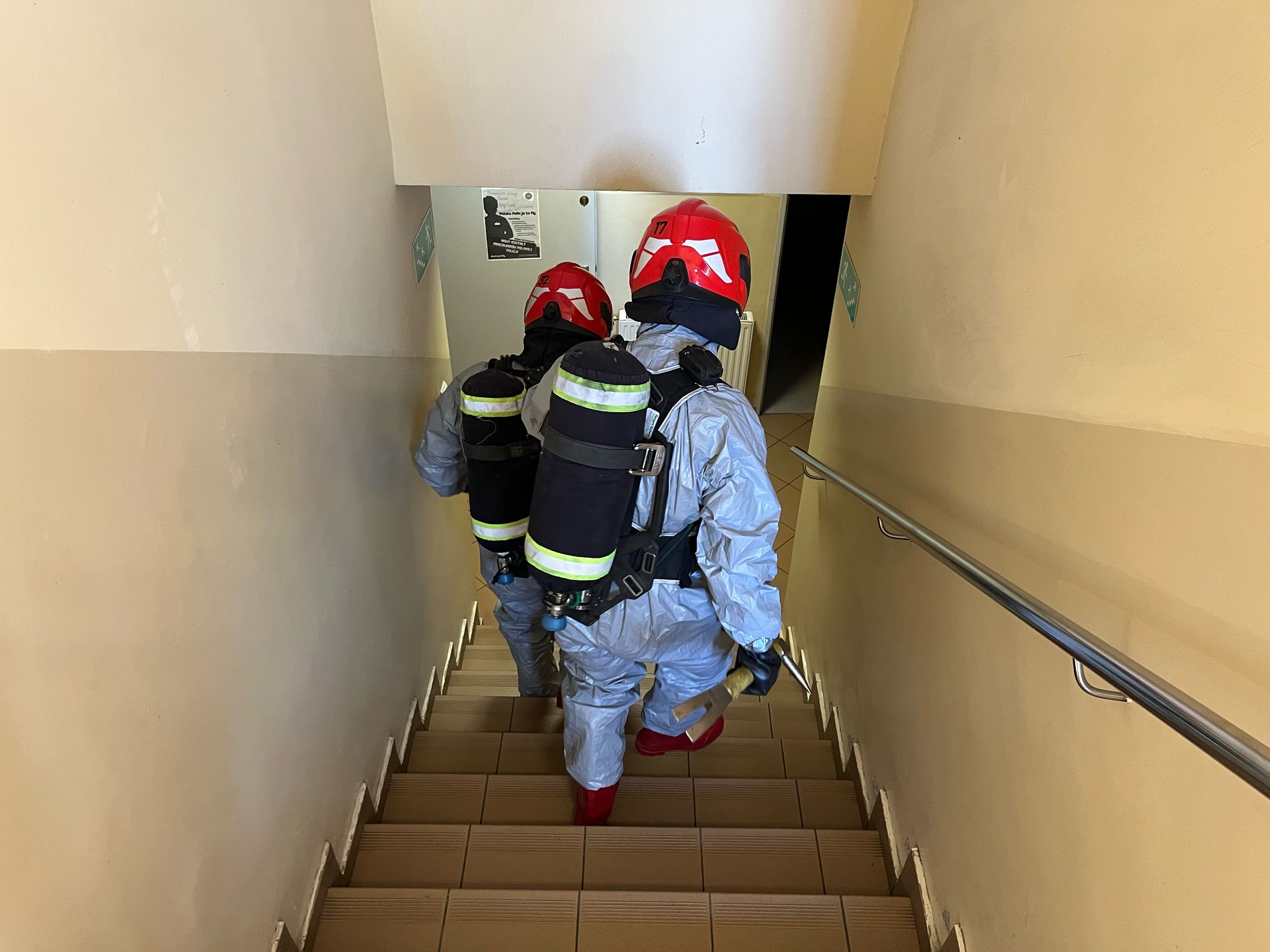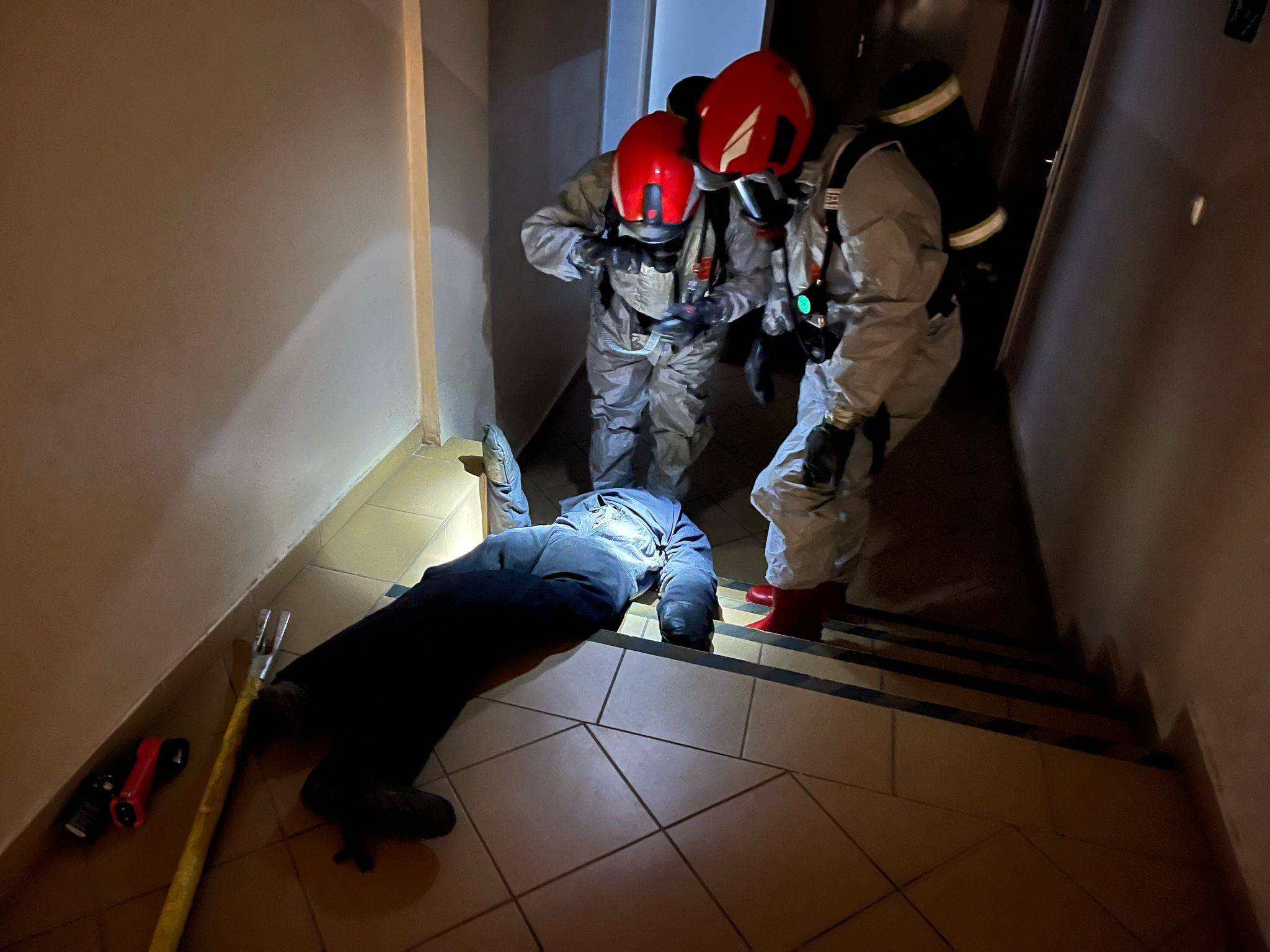 Zostały zadysponowane dwa zastępy z JRG Międzychód. Po przybyciu na miejsce zdarzenia, osoba odpowiedzialna za ewakuację budynku przekazała kierującemu działaniem ratowniczym, że ewakuowano budynek Komendy Powiatowej Policji i jedna osoba znajduje się w budynku, jest nieprzytomna, prawdopodobnie zatruła się środkiem chemicznym. Następnie zabezpieczono miejsce zdarzenia, przystąpiono do działań mających na celu dotarcie do osoby poszkodowanej, ewakuacji w bezpieczne miejsce i udzielenia kwalifikowanej pierwszej pomocy.
