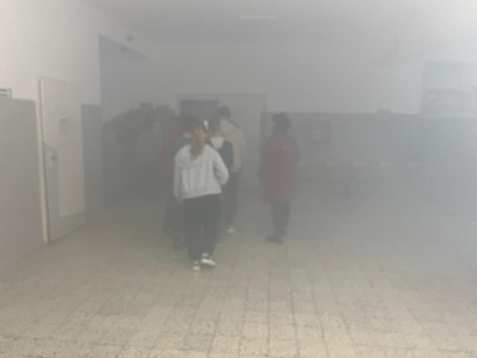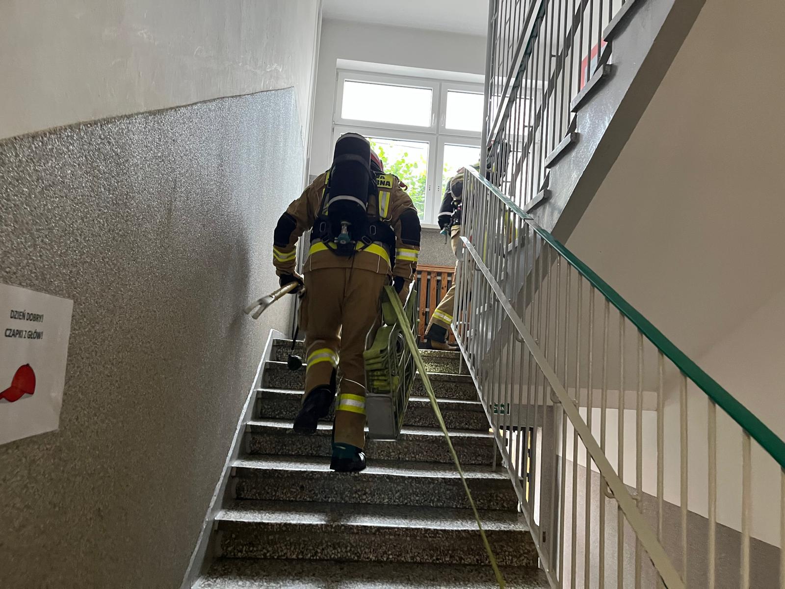 Zgodnie z założeniem na drugim piętrze budynku szkoły doszło do pozorowanego pożaru, w wyniku którego dwie osoby zostały poszkodowane i wymagały ewakuacji oraz udzielenia kwalifikowanej pierwszej pomocy. Działania ratownicze prowadzone przez strażaków polegały na: