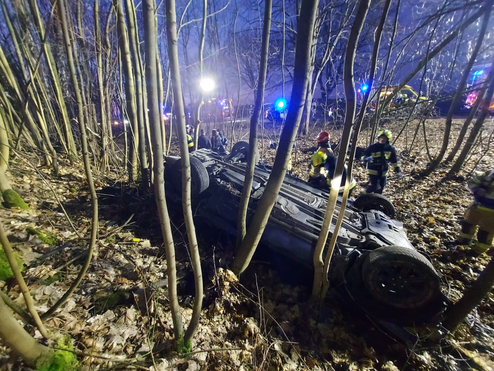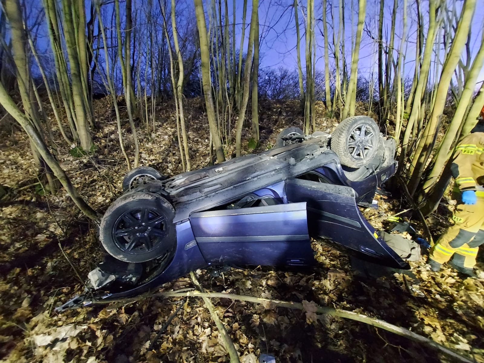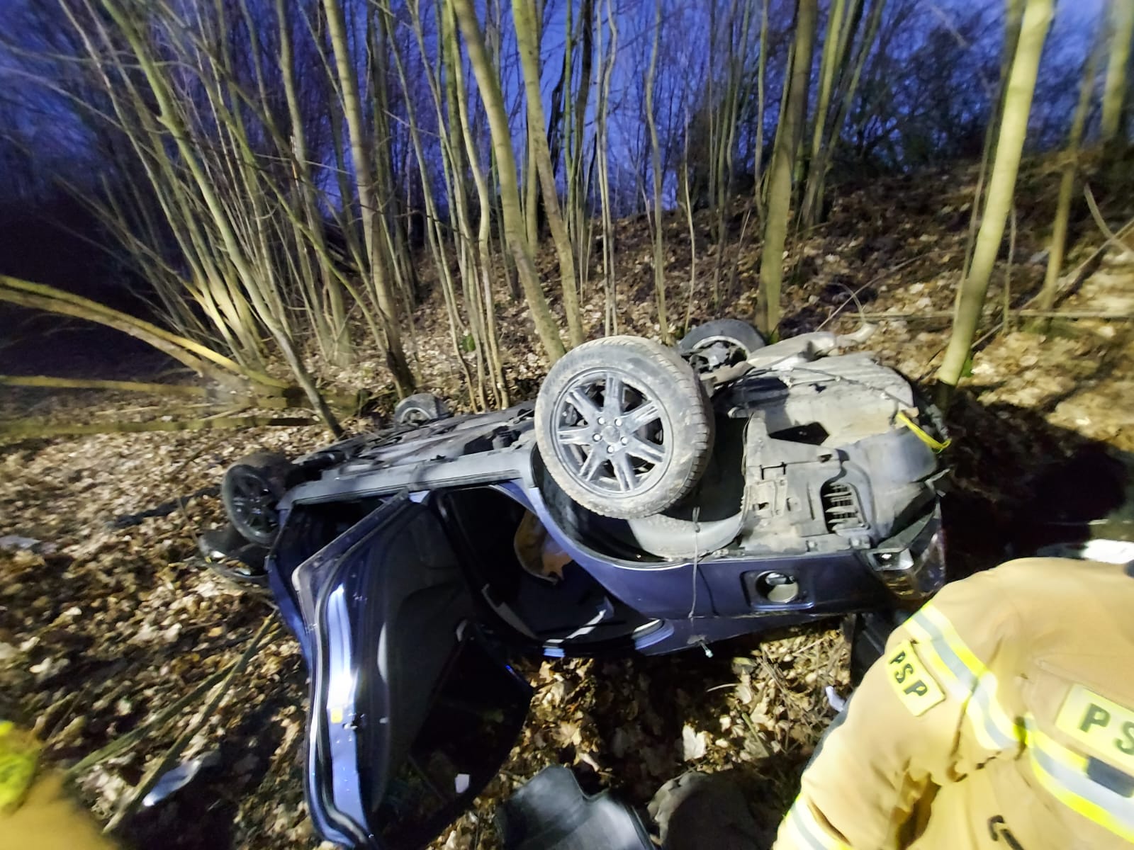 Służby zostały powiadomione o zdarzeniu, do którego doszło na drodze krajowej nr 24 w Prusimiu. Samochód wypadł tam z drogi i dachował. Strażacy po przybyciu na miejsce zdarzenia udzielili kwalifikowanej pierwszej pomocy poszkodowanemu, a po przybyciu zespołu ratownictwa medycznego przekazali poszkodowanego. W działaniach udział brały zastępy JRG Międzychód oraz OSP Kwilcz, a także Policja i ZRM.