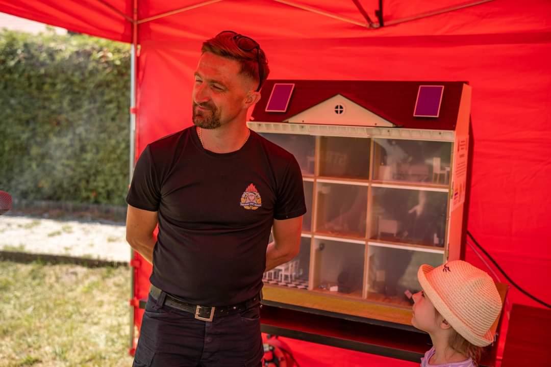 Komenda Powiatowa Państwowej Straży Pożarnej w Międzychodzie 29 czerwca 2024r. prezentowała na swoim stoisku mobilny symulator zagrożeń pożarowych lasu i domu jednorodzinnego, przy którym można było dowiedzieć się o zagrożeniach w lasach oraz mieszkaniu i w domu.