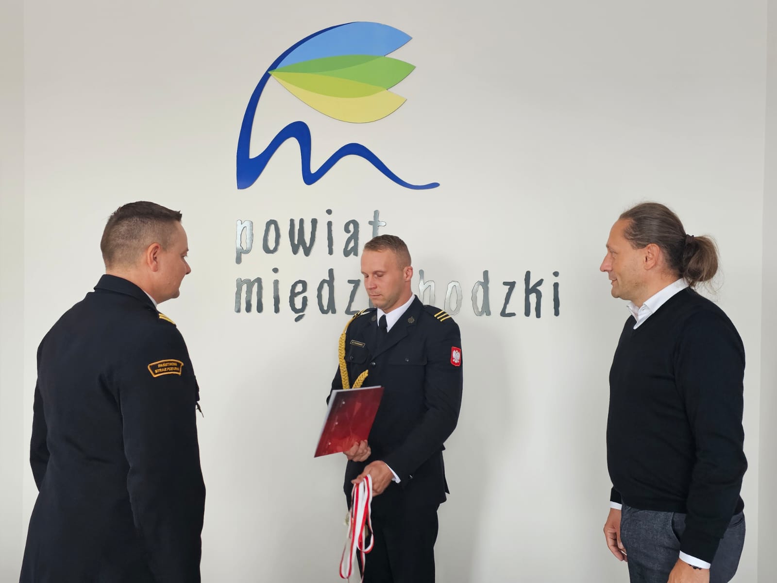 Gratulacje Starosty Międzychodzkiego i Komendanta Powiatowego dla st. sekc. Konrada Furmanka