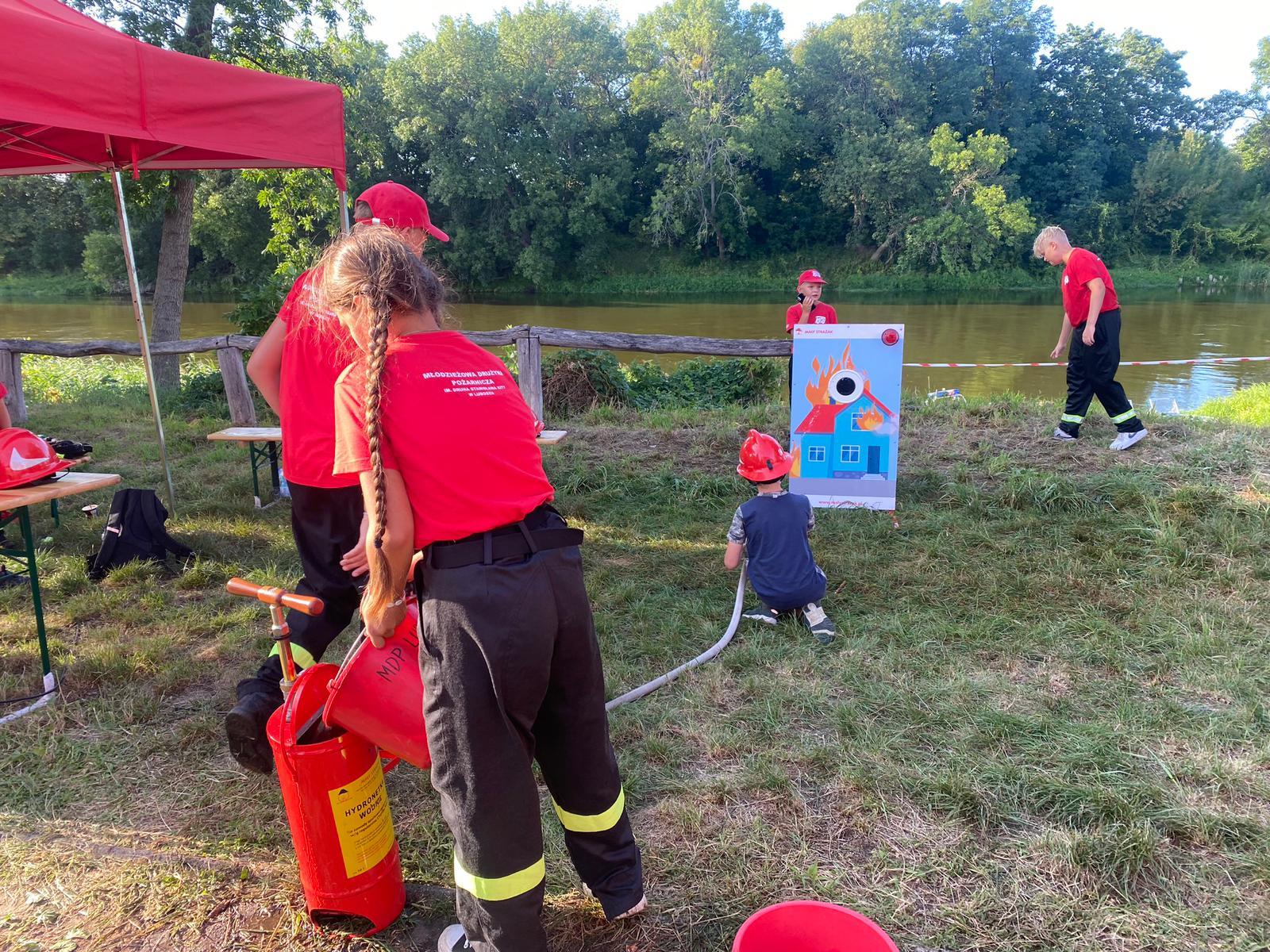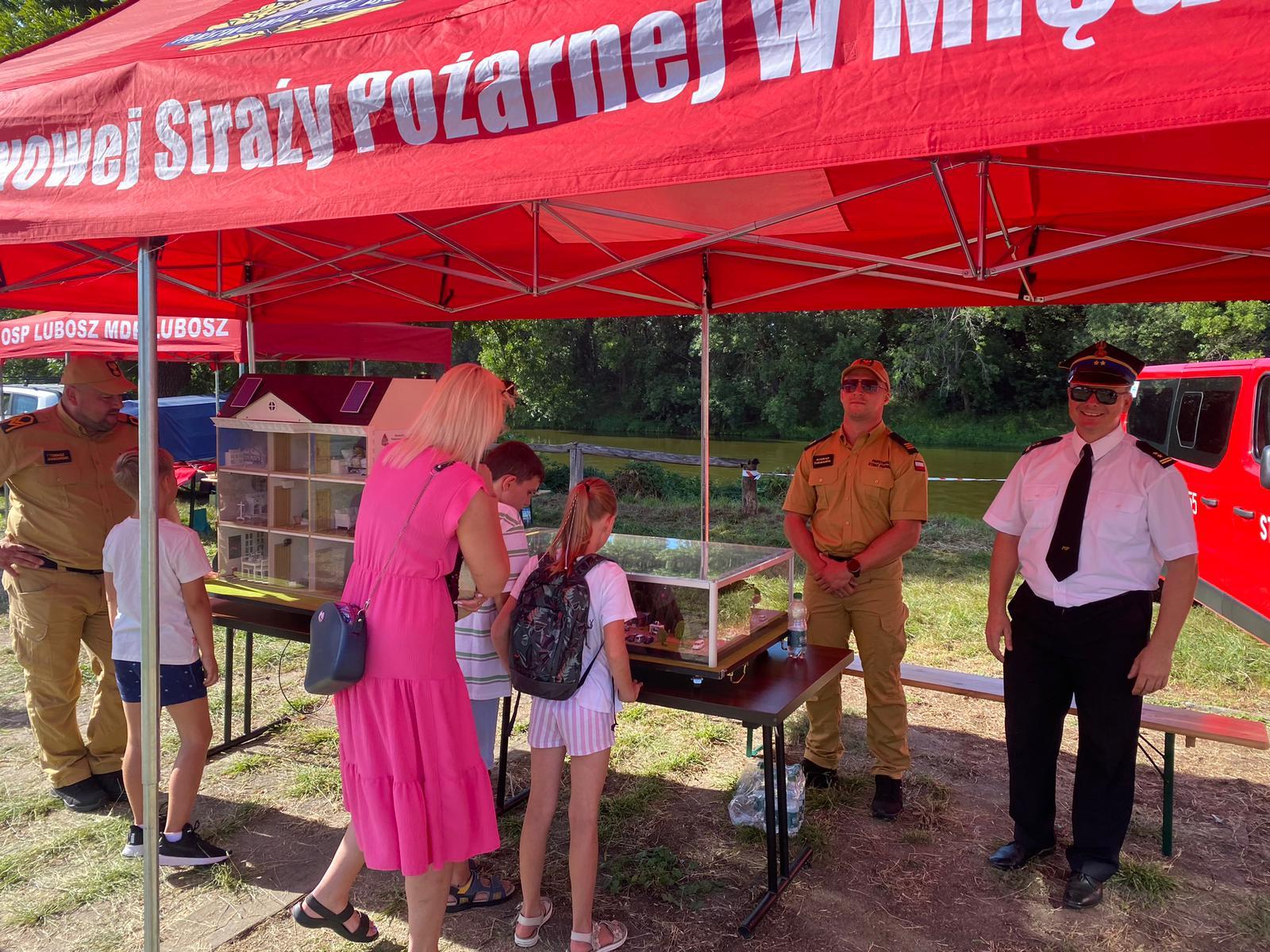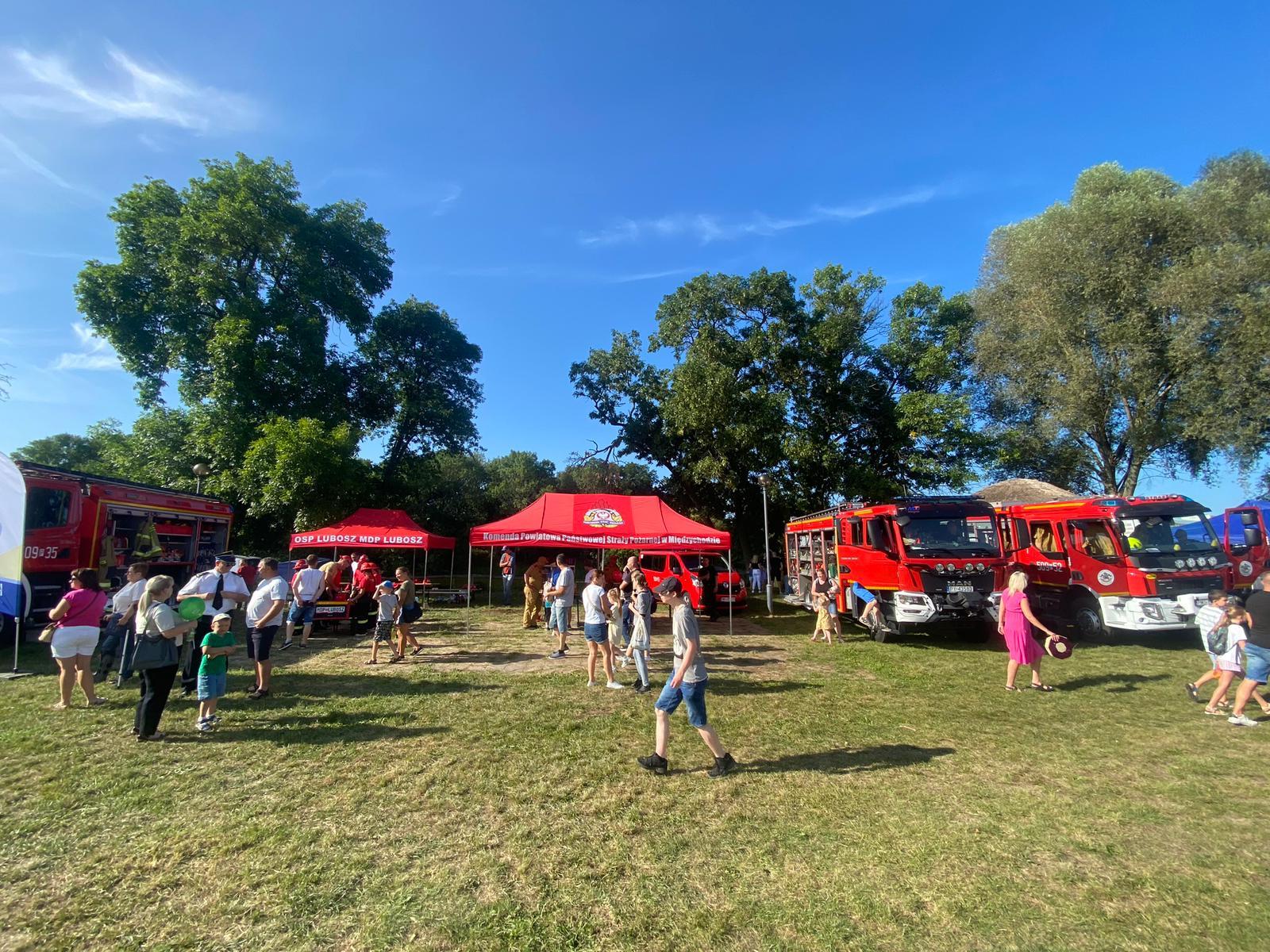 Na pikniku nie zabrakło również strażaków, zarówno zawodowych, jak i ochotników. W tym roku oprócz Komendy Powiatowej Państwowej Straży Pożarnej Międzychodzie zaprezentowała się Ochotnicza Straż Pożarna w Międzychodzie oraz młodzieżowa drużyna pożarnicza z Lubosza. Na przygotowanym stoisku uczestnicy pikniku mogli zapoznać się ze sprzętem pożarniczym oraz dowiedzieć się jakie zagrożenia czyhają na nich w życiu codziennym. Nie zabrakło także atrakcji dla najmłodszych. Dorośli strażacy przygotowali pokaz ratownictwa na rzece natomiast ci młodsi pokaz gaszenia. W pikniku udział wziął także Komendant Powiatowy Państwowej Straży Pożarnej w Międzychodzie bryg. Roman Grzebieta.