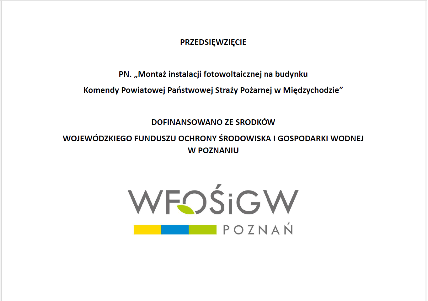 INSTALACJA FOTOWOLTAICZNA W KOMENDZIE POWIATOWEJ PAŃSTWOWEJ STRAŻY POŻARNEJ W MIĘDZYCHODZIE