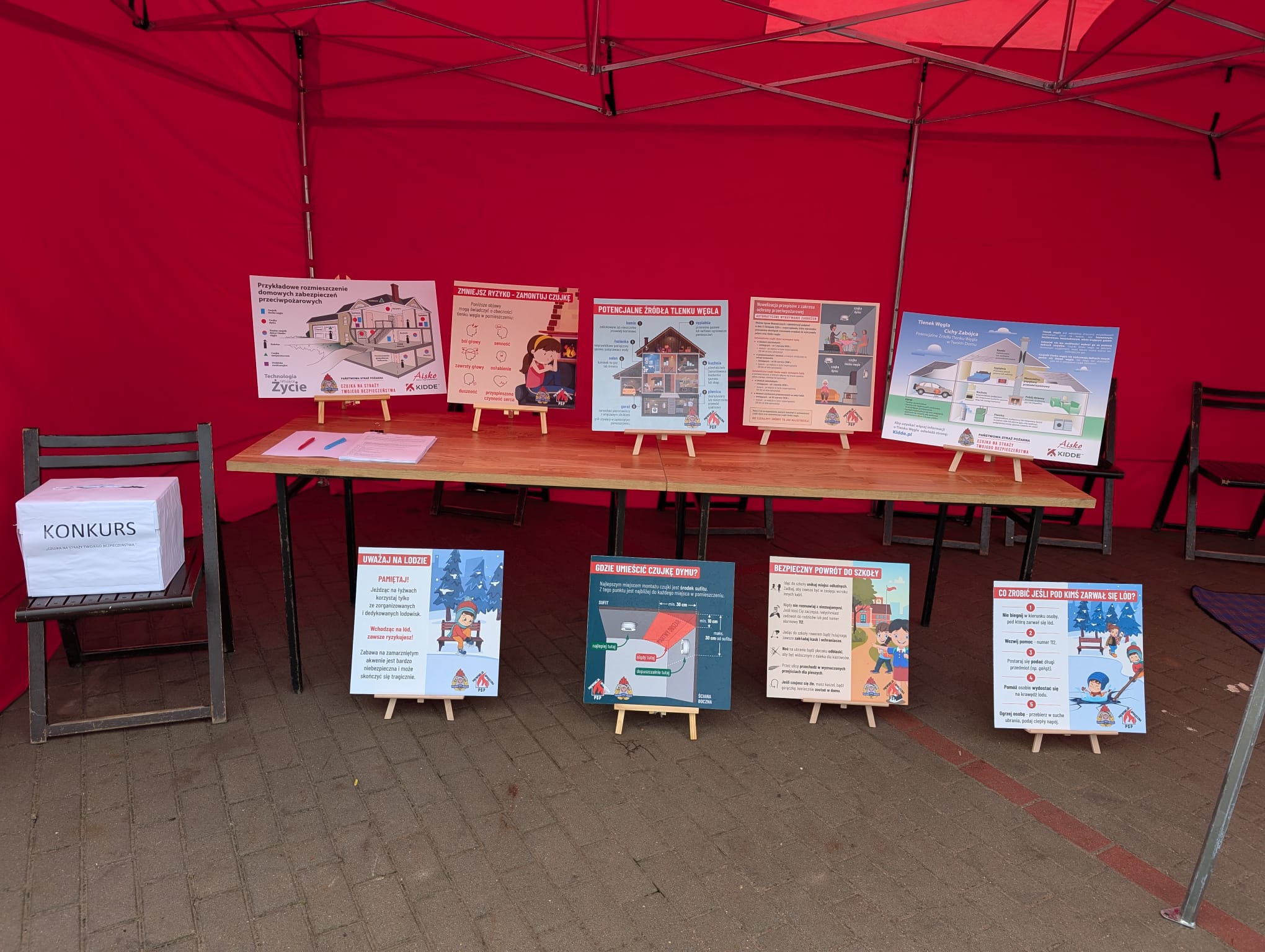 Na stoisku strażaków można było zauważyć infografiki zwracające uwagę na poprawne zasady bezpieczeństwa w okresie jesienno–zimowym.
