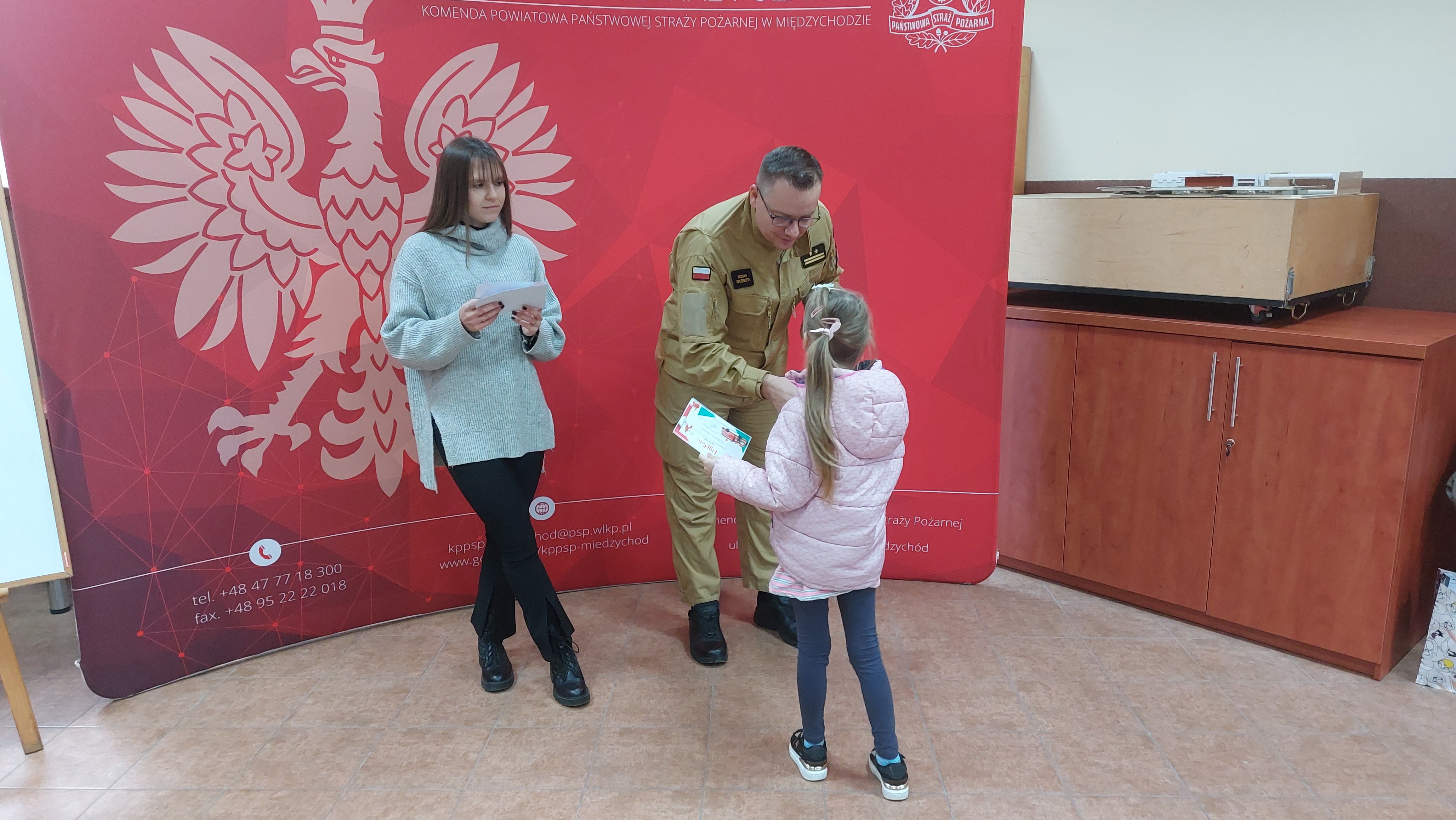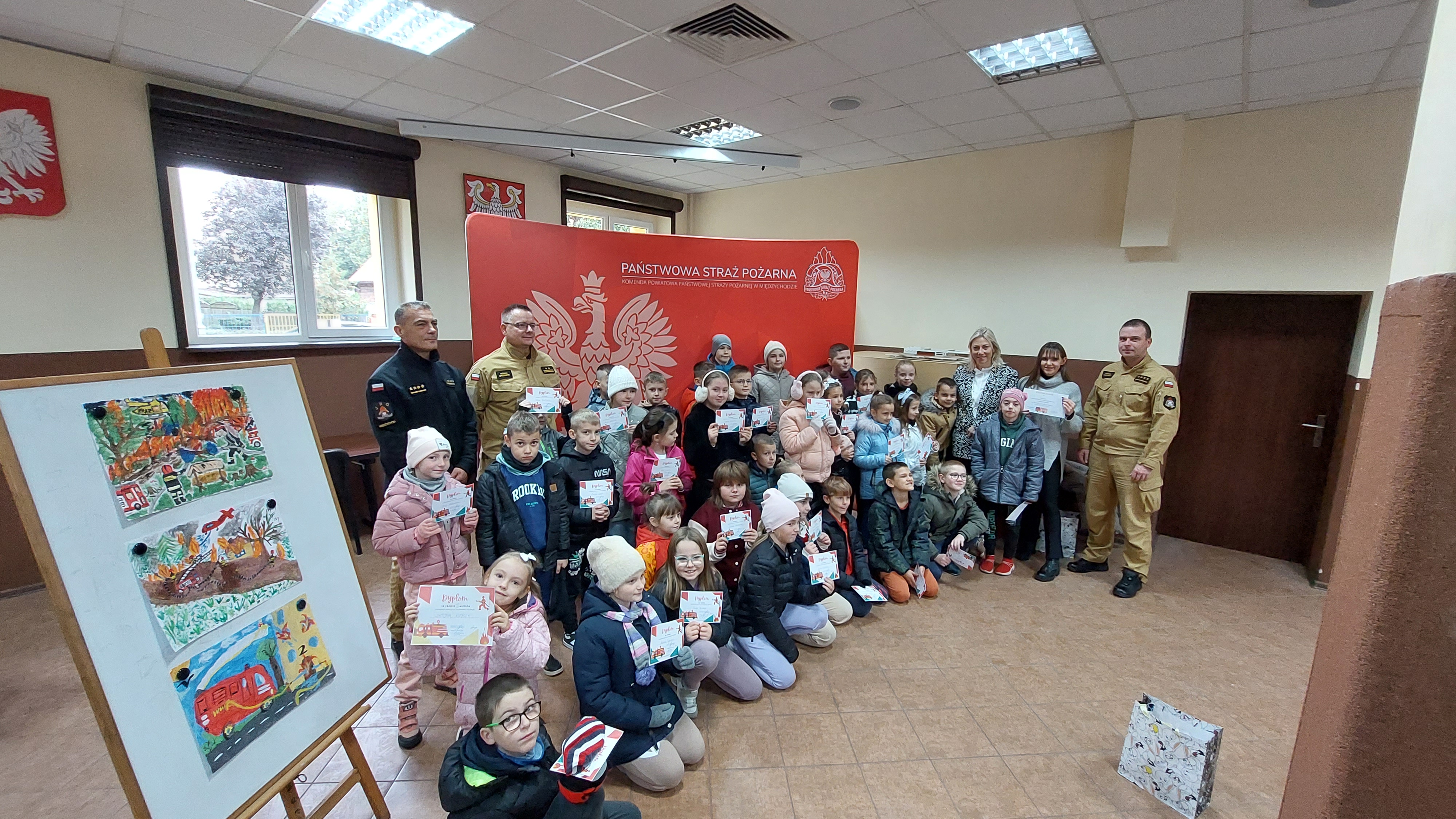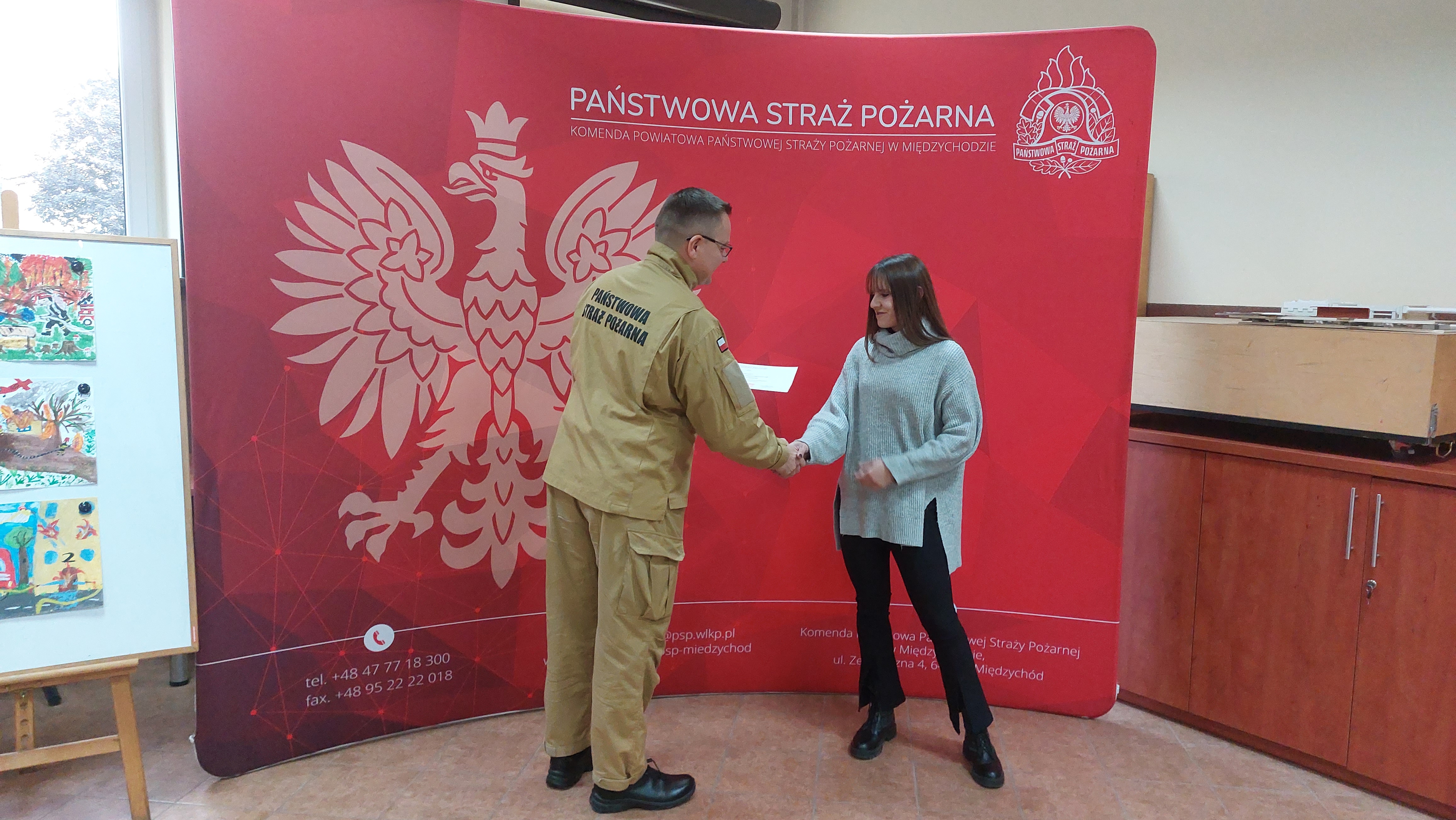 Dnia 19 października 2023 roku w Komendzie Powiatowej Państwowej Straży Pożarnej w Międzychodzie odbyło się wręczenie nagród w konkursie "MOGĘ LICZYĆ NA STRAŻAKA".