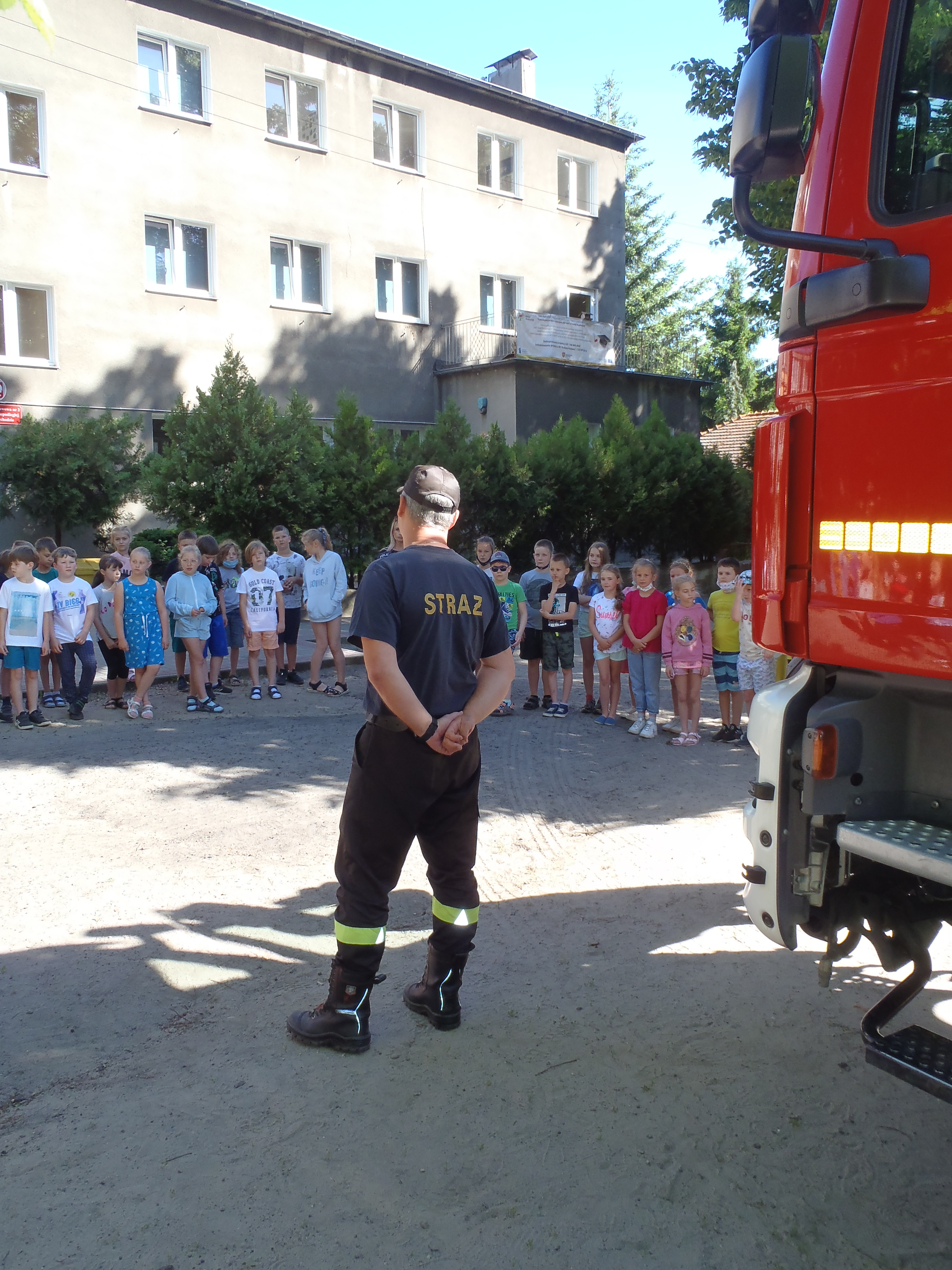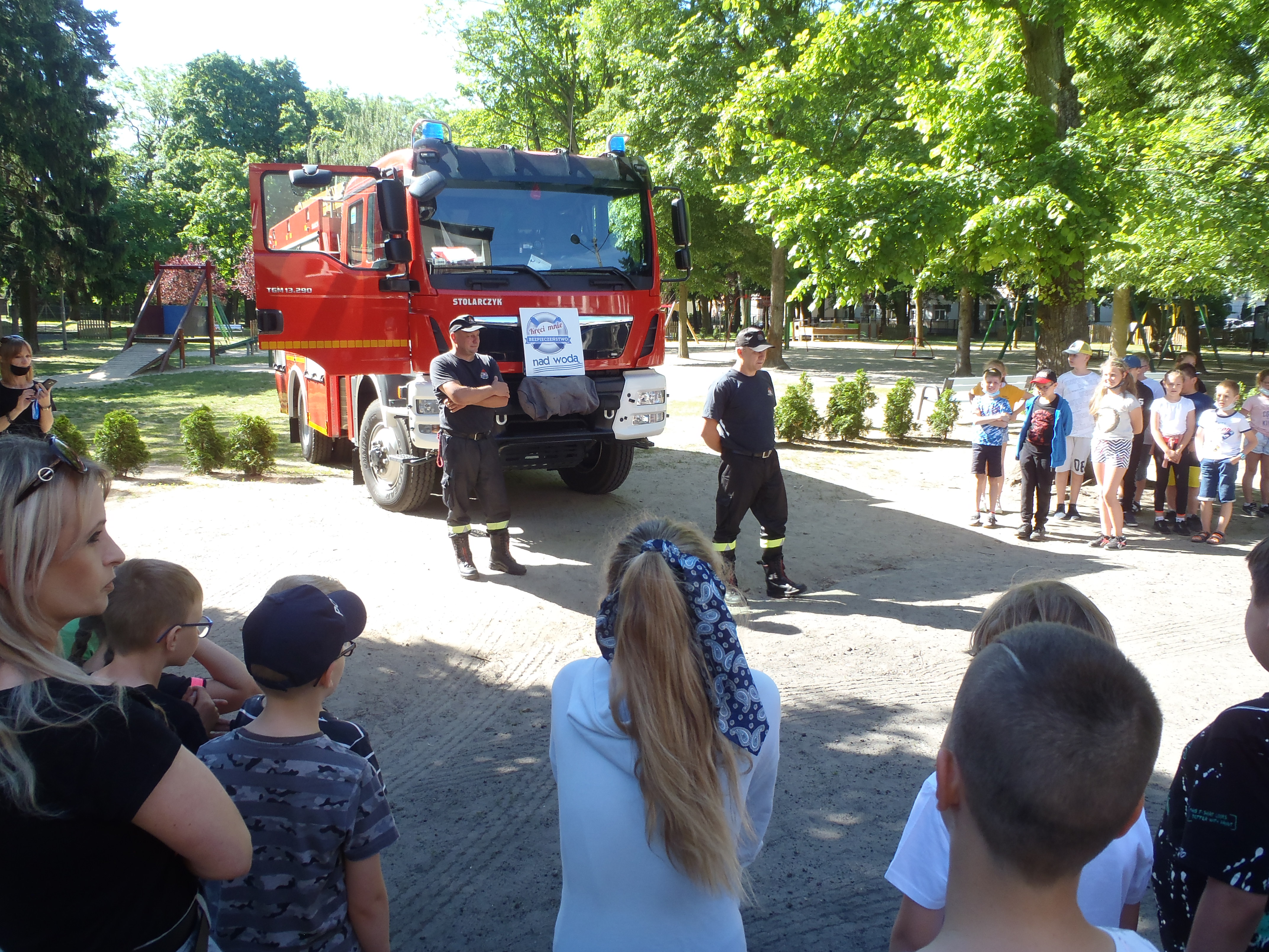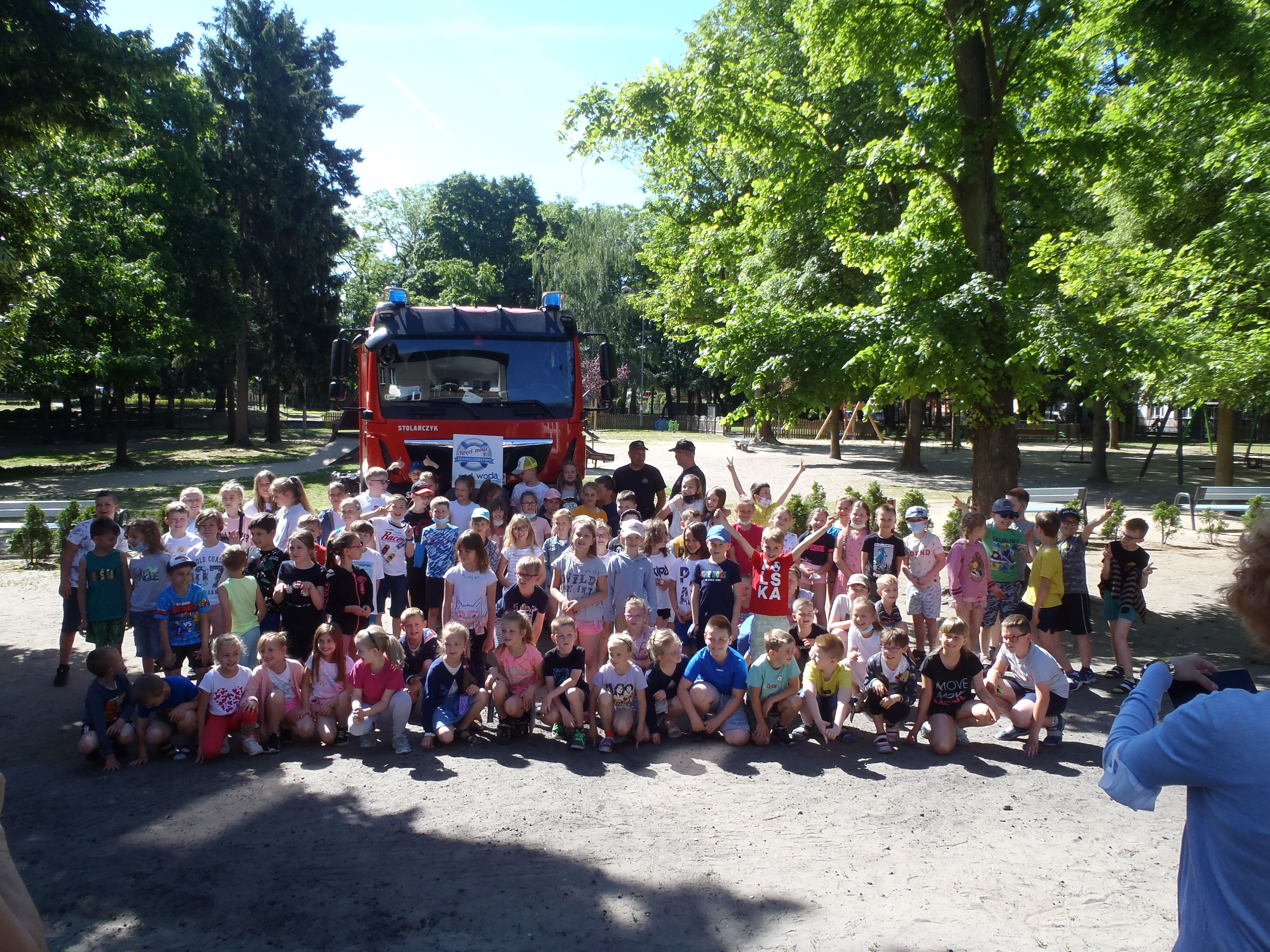 Celem spotkania z uczniami Szkoły Podstawowej nr 2 w Międzychodzie była pogadanka dla klas drugich, w której zwrócono uwagę na bezpieczeństwo w okresie wakacyjnym, w szczególności odpoczywając na plażach, kąpieliskach i przy innych zbiornikach wodnych. Uczniowie szkoły zadawali strażakom pytania, dzieci miały także okazję zobaczyć sprzęt strażacki znajdujący się na wyposażeniu jednego z samochodów pożarniczych.