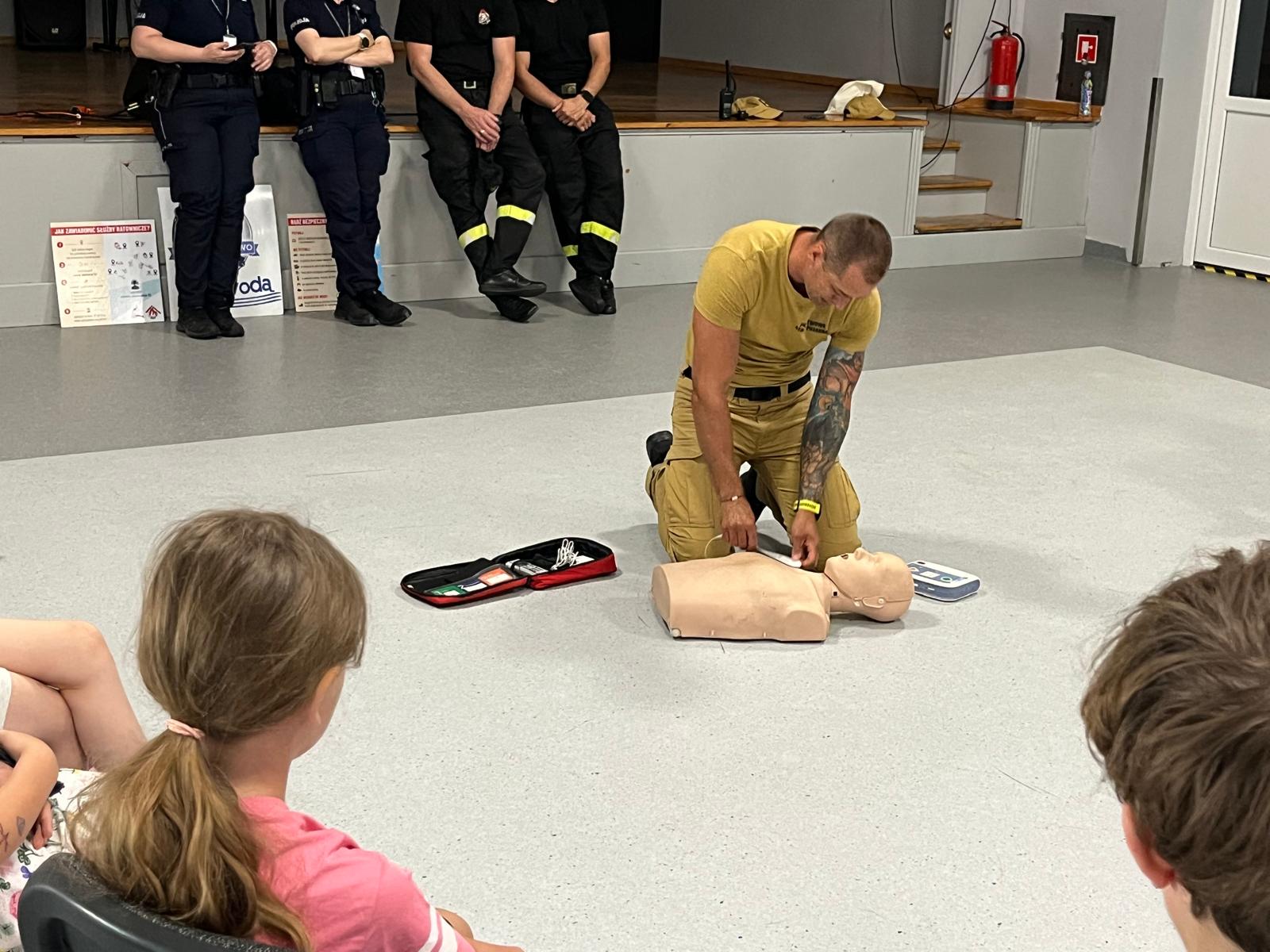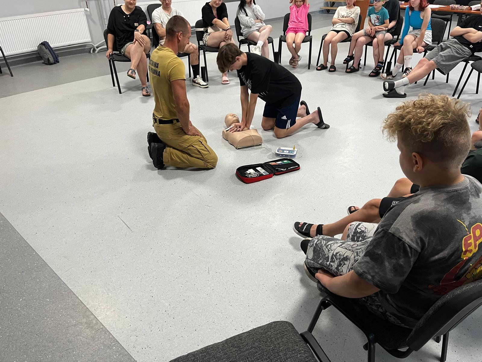 Podczas zajęć uczestnicy dowiedzieli się również, w jaki sposób skutecznie wezwać pomoc oraz na co zwrócić uwagę, gdy zauważą sytuację zagrożenia życia lub zdrowia. Ważnym elementem spotkania były także praktyczne warsztaty z zakresu pierwszej pomocy. Uczestnicy mieli okazję przećwiczyć resuscytację krążeniowo-oddechową na fantomie oraz zapoznać się z obsługą automatycznego defibrylatora AED.