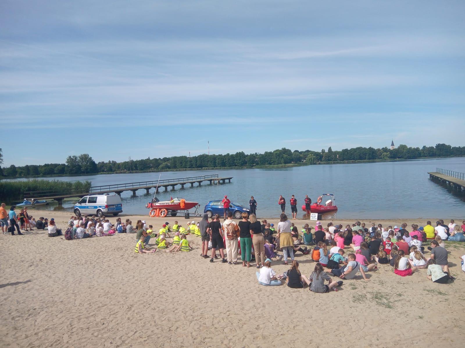 Podczas zorganizowanych wykładów uczniowie szkół oraz grupy przedszkolne miały możliwość przypomnienia sobie zasad bezpiecznego zachowania nad wodą oraz poznania sprzętu służącego do ratowania osób zagrożonych na wodzie. Ostatnim elementem wykładów był pokaz ratownictwa wodnego zorganizowany przez naszych funkcjonariuszy, którzy zademonstrowali podjęcie osoby z wody za pomocą łodzi.
