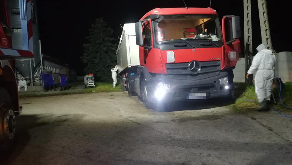 W piątkowy wieczór na prośbę Powiatowego Lekarza Weterynarii, strażacy zadysponowani zostali na teren jednej z ferm trzody chlewnej w Gnuszynie, gdzie trwała likwidacja ogniska ASF.