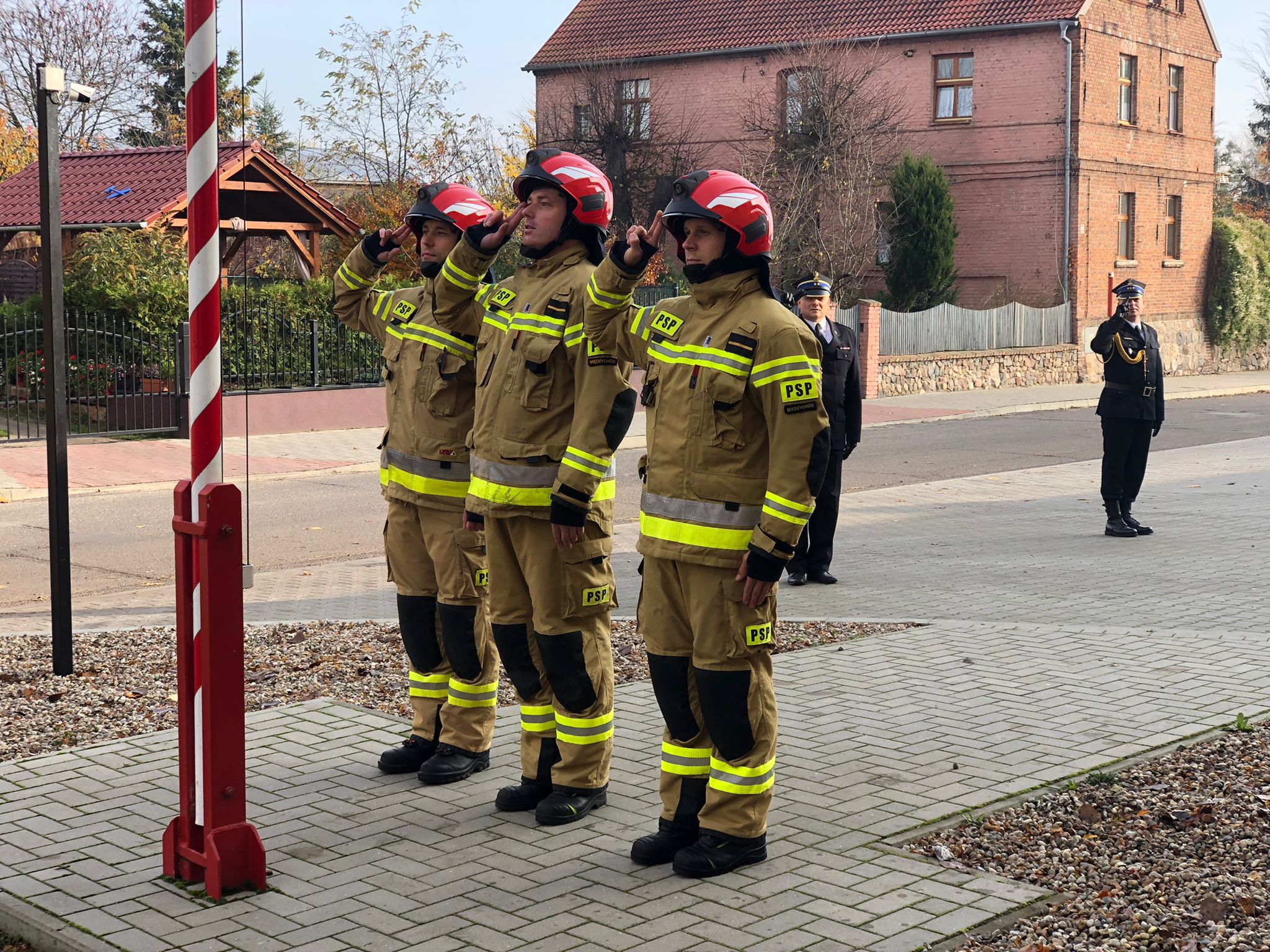 Po złożeniu meldunku Zastępcy Komendanta Powiatowego Państwowej Straży Pożarnej w Międzychodzie odbyło się uroczyste podniesienie flagi oraz odśpiewanie hymnu. Następnie Zastępca Komendanta Powiatowego Państwowej Straży Pożarnej w Międzychodzie bryg. Roman Grzebieta odczytał okolicznościowe życzenia Komendanta Głównego Państwowej Straży Pożarnej oraz Wielkopolskiego Komenda Wojewódzkiego Państwowej Straży Pożarnej.