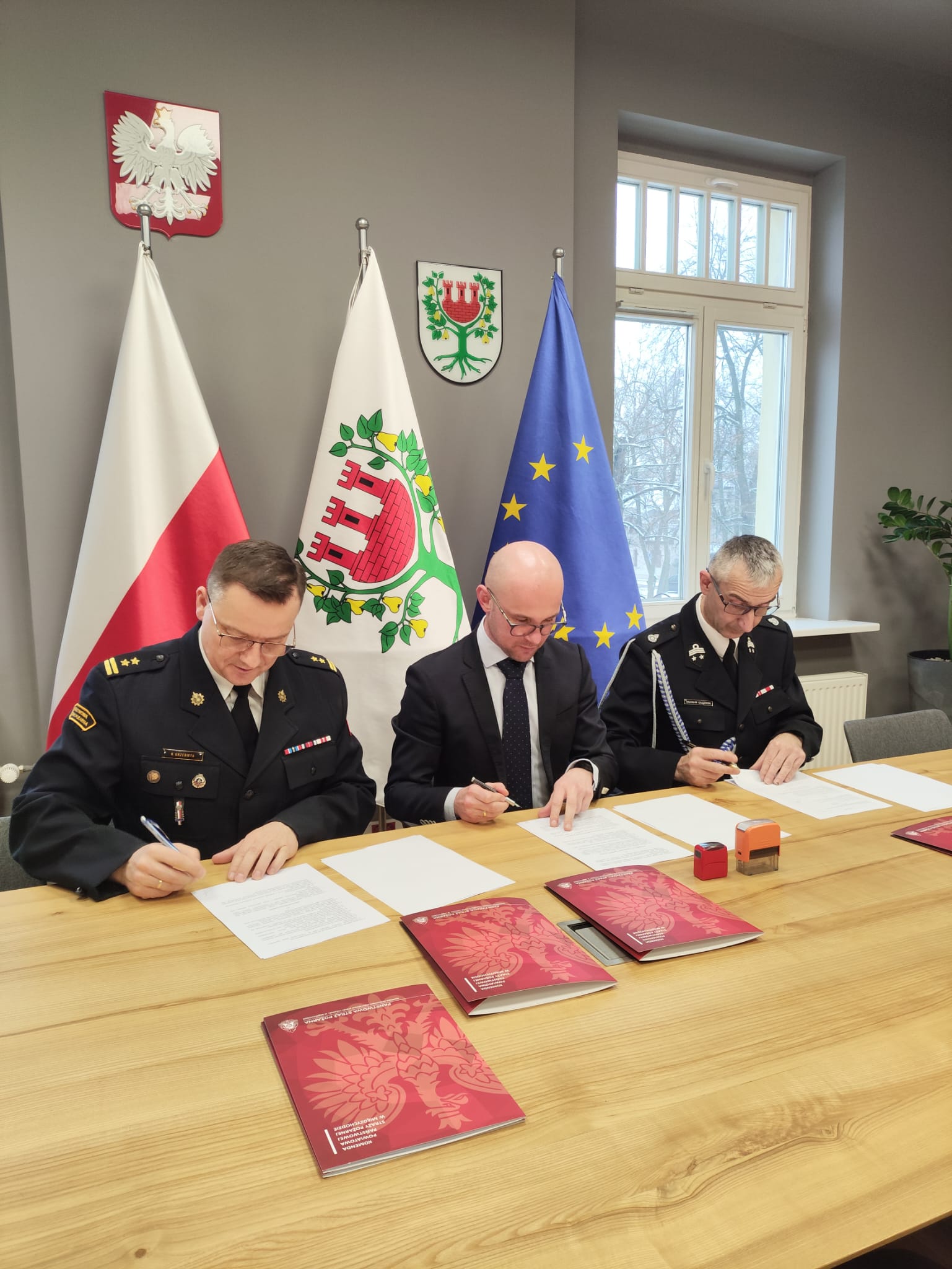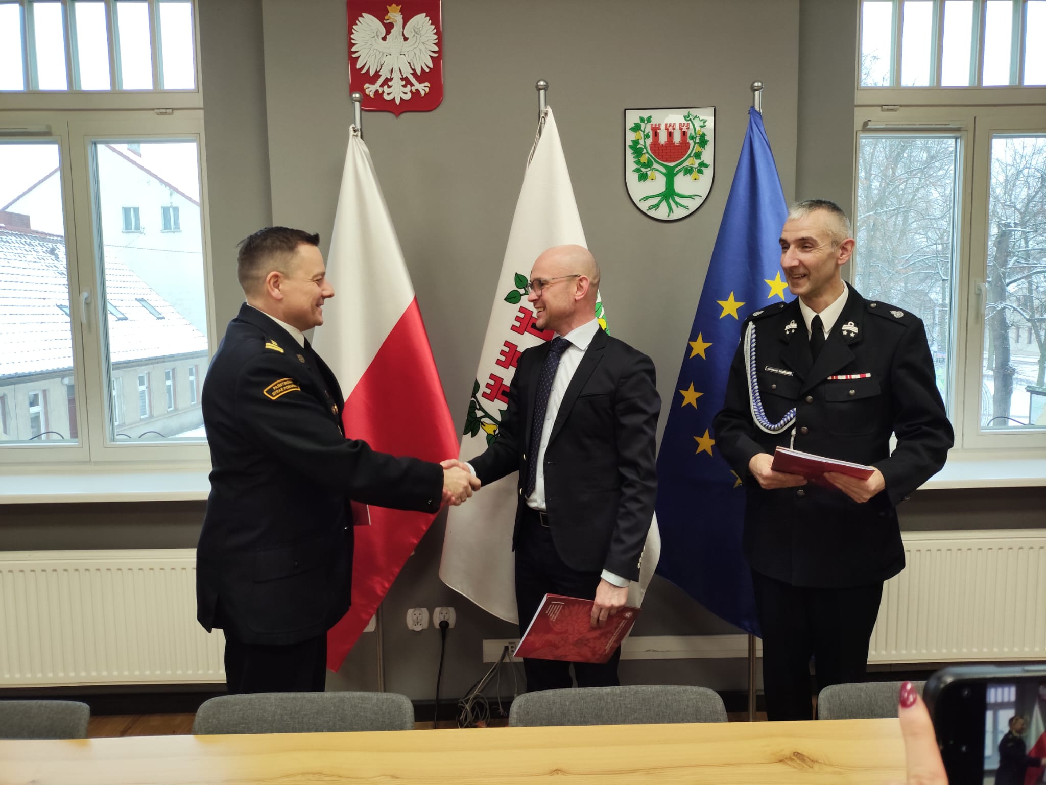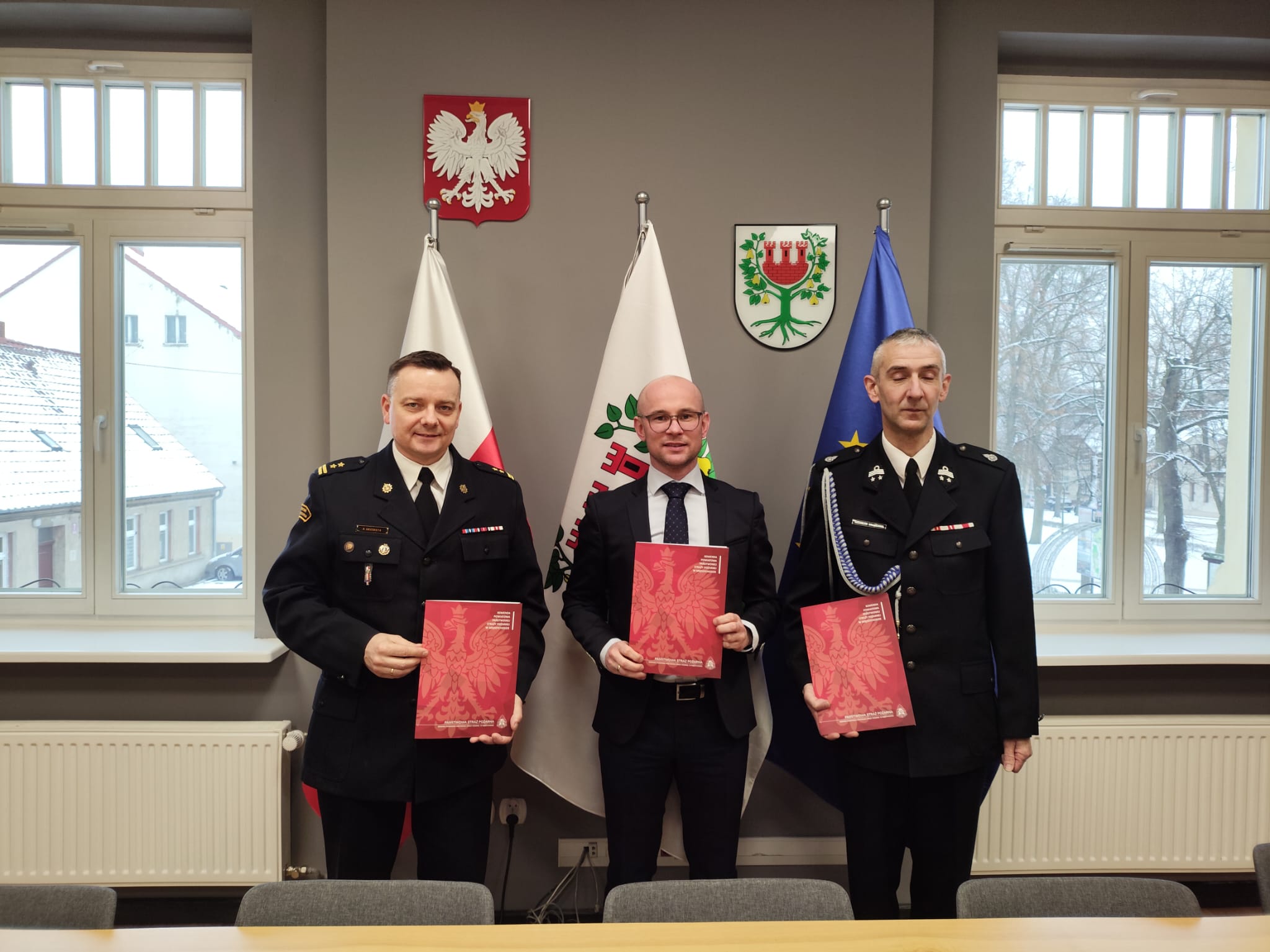 13 stycznia 2026 r. w siedzibie Komendy Powiatowej Państwowej Straży Pożarnej w Międzychodzie oraz w Urzędzie Miasta i Gminy Międzychód zostały podpisanie trójstronne porozumienia w sprawie ponownego włączenia jednostek Ochotniczej Straży Pożarnej w Kaczlinie i Międzychodzie do krajowego systemu ratowniczo-gaśniczego.
