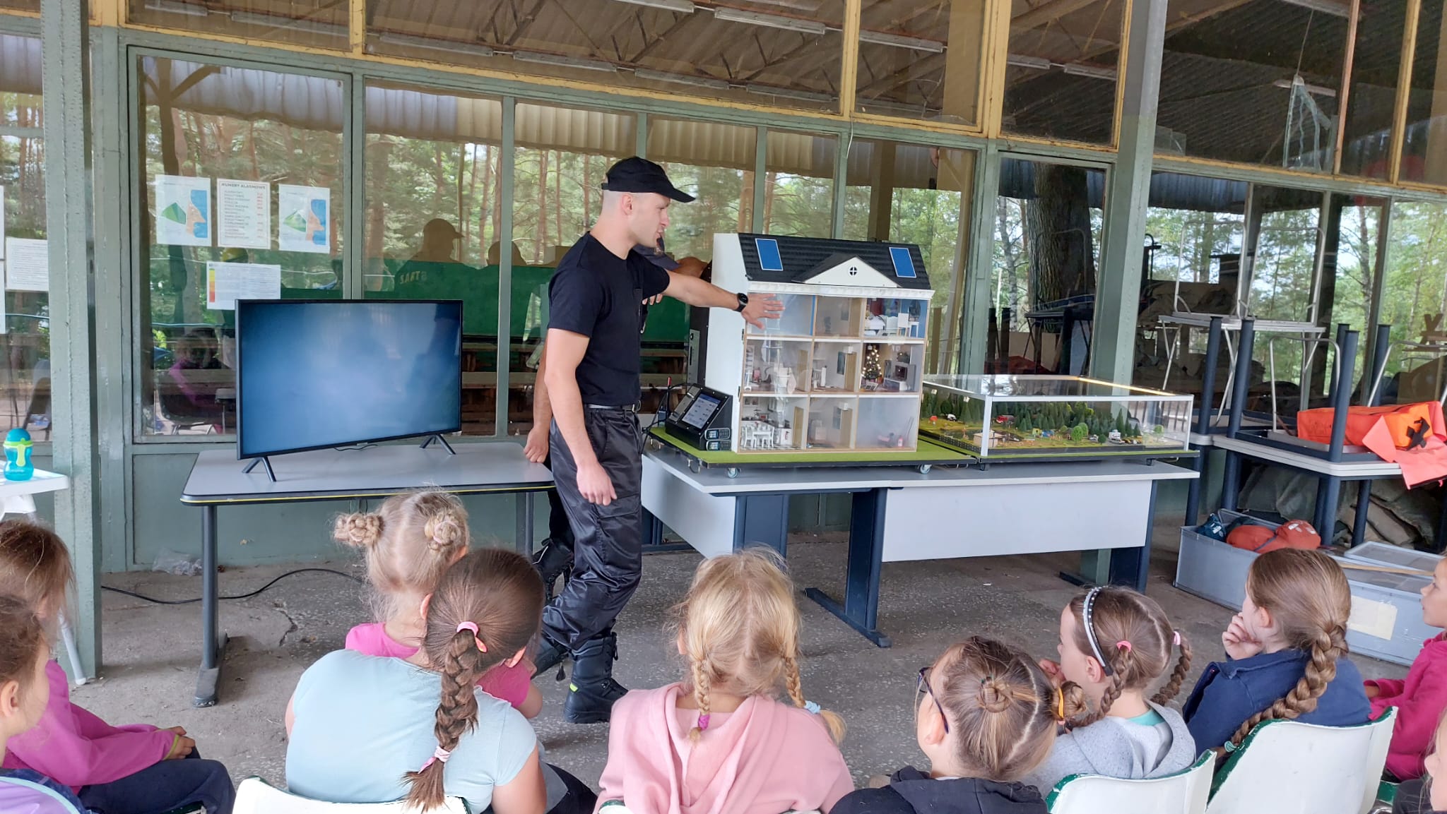 Strażacy podczas spotkania omówili zagrożenia i zasady bezpiecznego postępowania nad wodą oraz podczas letniego wypoczynku. Ponadto za pomocą specjalnego symulatora zagrożeń pożarowych w domu jednorodzinnym, funkcjonariusze w ciekawy sposób zaprezentowali dzieciom jakie potencjalne niebezpieczeństwa mogą wystąpić w gospodarstwie domowym i omówili jak należy się zachowywać, aby ich unikać.