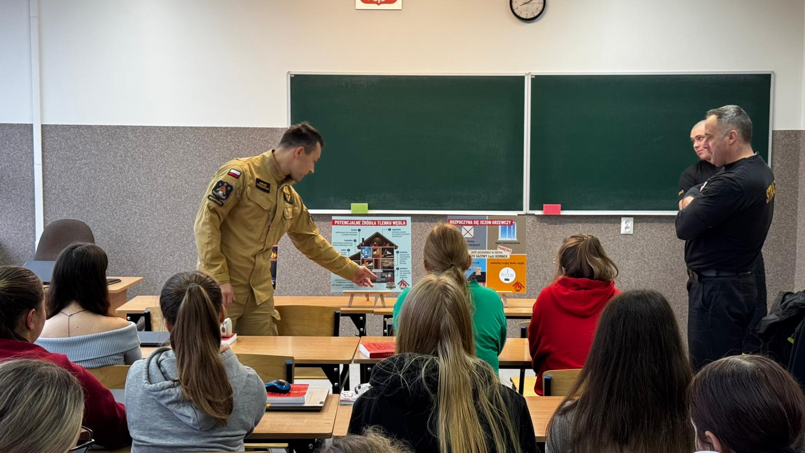 W trakcie spotkania strażacy szczególną uwagę poświęcili zagrożeniom związanym z okresem grzewczym, kiedy to w domach i mieszkaniach wzrasta ryzyko pożarów oraz zatrucia tlenkiem węgla (czadem). Uczniowie zostali zapoznani z zasadami stosowania czujek dymu i czujek tlenku węgla, które powinny być obowiązkowym wyposażeniem każdego domu. Dzięki takim prostym środkom bezpieczeństwa, można znacznie zmniejszyć ryzyko tragedii spowodowanej pożarem lub zaczadzeniem.