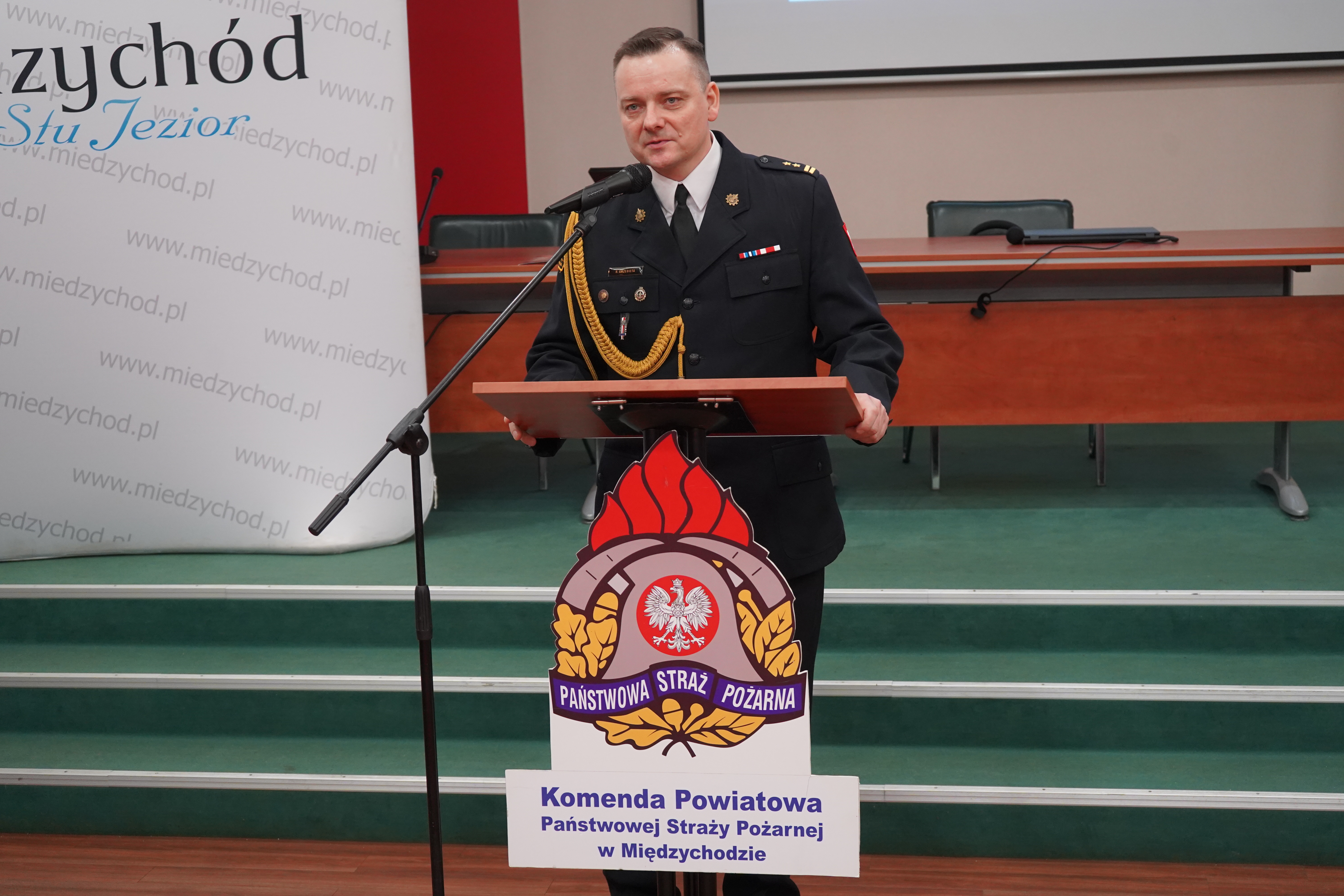 2 lutego 2024 r. w sali sesyjnej Urzędu Miasta i Gminy w Międzychodzie odbyła się uroczysta zbiórka, podczas której nastąpiło przekazanie obowiązków Komendanta Powiatowego Państwowej Straży Pożarnej w Międzychodzie.