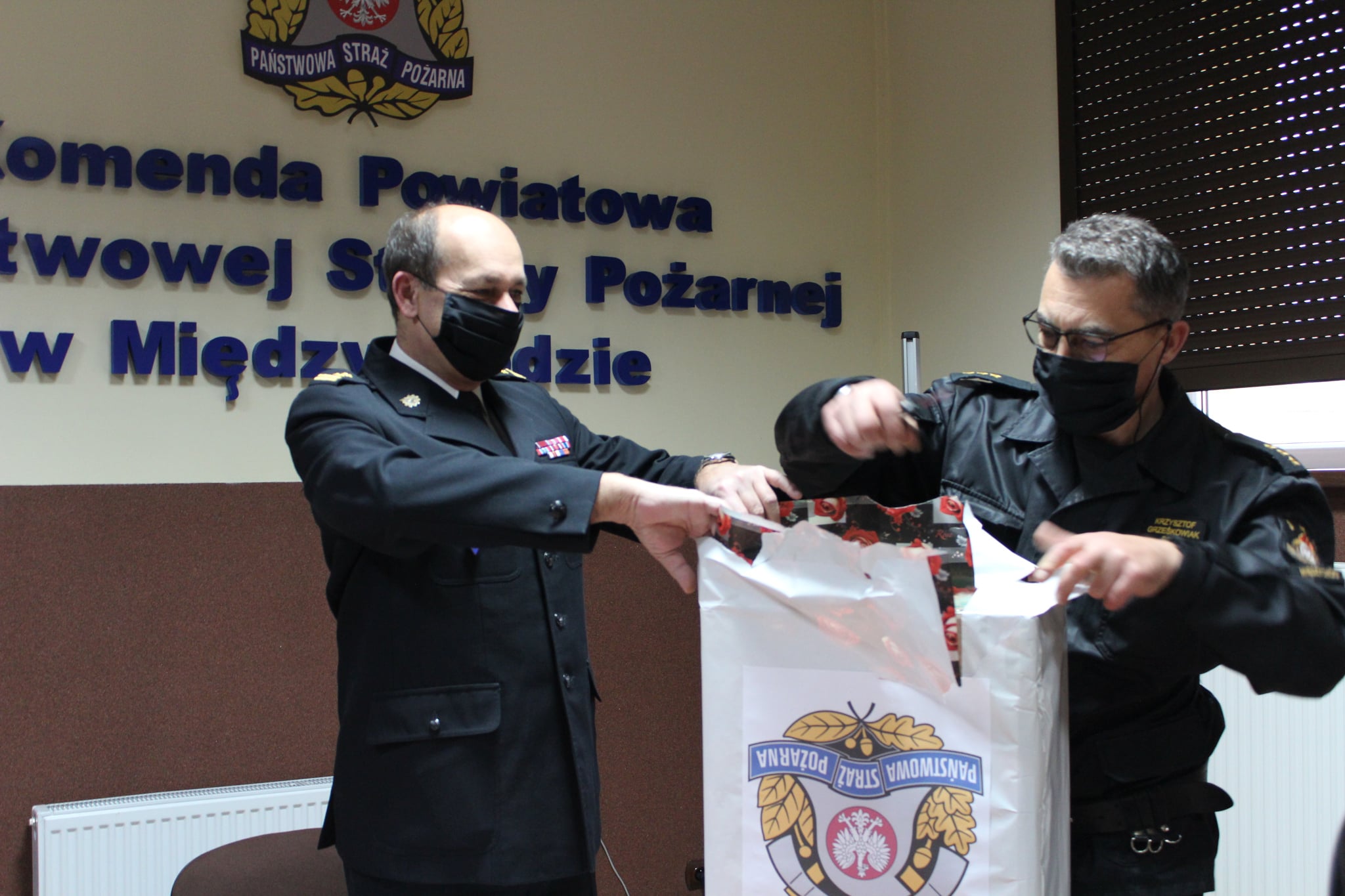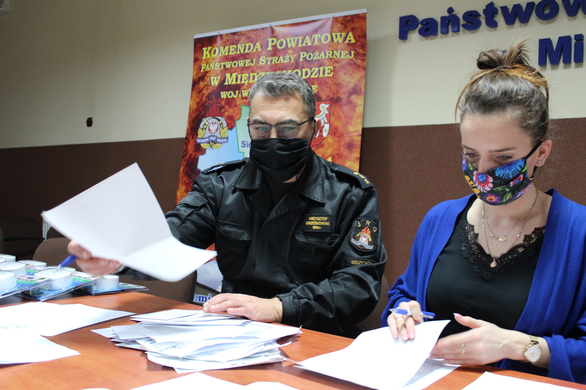 W poniedziałek 7 grudnia 2020 roku w Komendzie Powiatowej Państwowej Straży Pożarnej w Międzychodzie nastąpiło rozstrzygnięcie konkursu skierowanego do mieszkańców powiatu międzychodzkiego pt. „Czujka na straży Twojego bezpieczeństwa”. W obecności Komendanta Powiatowego PSP w Międzychodzie bryg. Mariusza Trajnowskiego oraz Starosty Powiatu Międzychodzkiego Rafała Litke z wszystkich nadesłanych ankiet wylosowano trzydzieści formularzy, na których udzielono poprawnej odpowiedzi na pięć pytań. Zgodnie z zapisami regulaminu właściciel zgłoszonej ankiety zostanie nagrodzony czujką tlenku węgla (czadu).