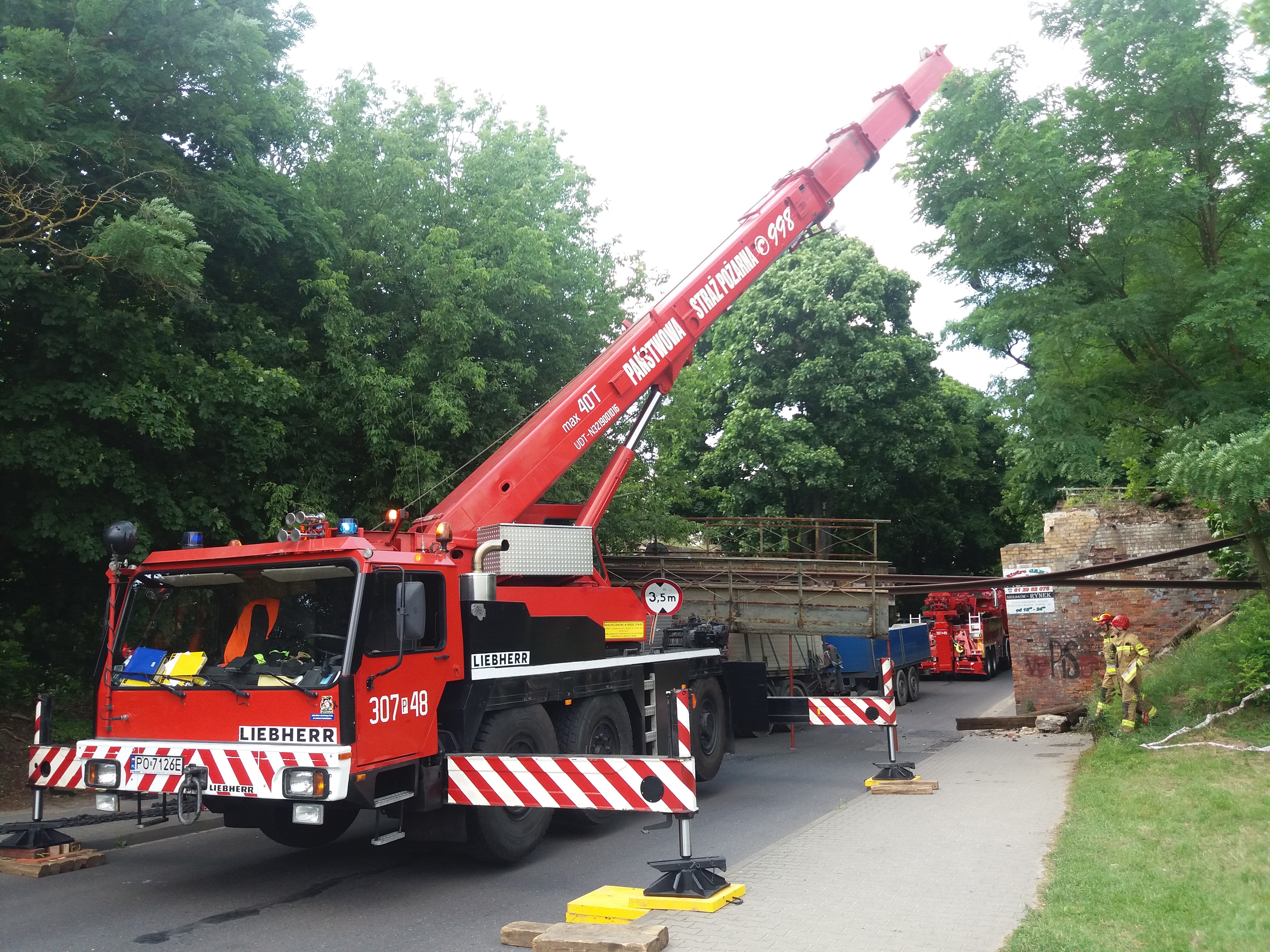 Do zdarzenia zadysponowano specjalistyczną grupę ratownictwa technicznego z KM PSP w Poznaniu. Przy użyciu dźwigu oraz samochodu MEGA-CITY podniesiono przęsło wiaduktu i przemieszczono je w bezpieczne miejsce. W działaniach udział brały zastępy z KP PSP w Międzychodzie, KM PSP w Poznaniu, a także OSP Sieraków.