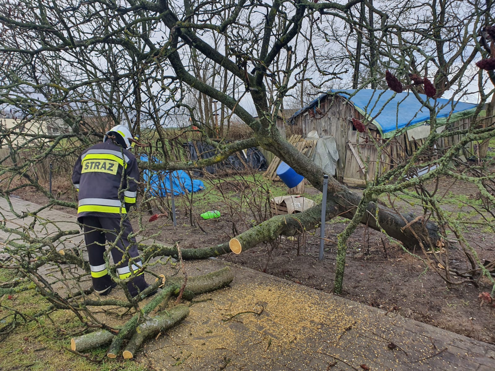 Skutki silnych wiatrów usuwali strażacy Komendy Powiatowej Państwowej Straży Pożarnej w Międzychodzie oraz liczne siły i środki ochotniczych straży pożarnych z powiatu międzychodzkiego.